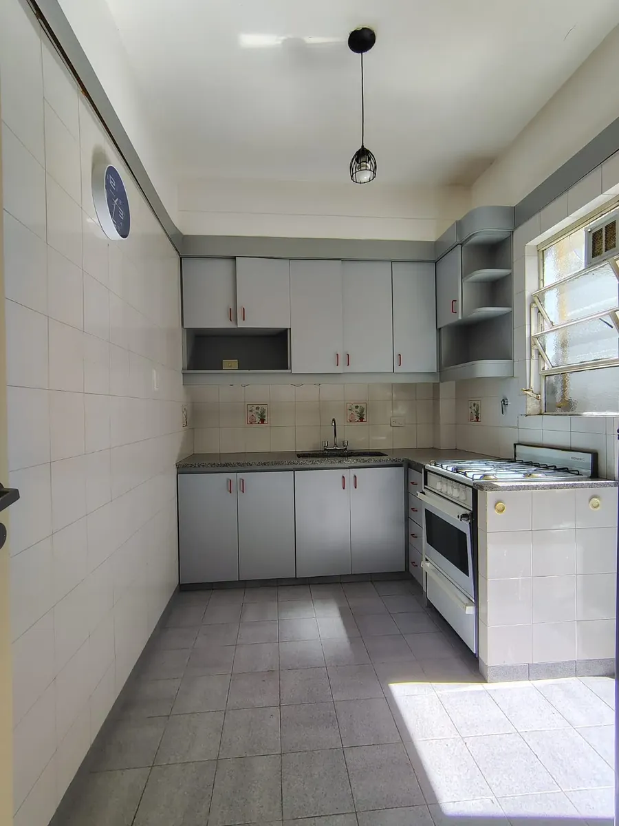 Departamento de 2 ambientes de 38 m² en planta baja, con 2 patios. Cocina, living y dormitorio con aire acondicionado frío y gran placard; baño con bañadera y placard en pasillo. Tiene pisos de parquet, lavadero y calefón eléctrico. Bajas expensas. Requiere garantía caución bancaria, mes de depósito, mes de alquiler e ingresos demostrables.