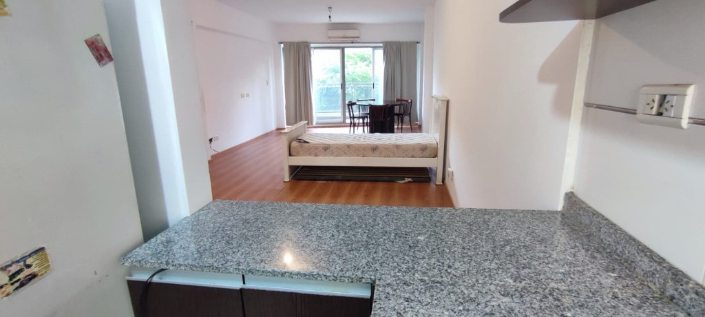 Departamento de 1 ambiente al frente con balcón, 43 m² de superficie total de uso propio. Cocina y baño completos. Cuenta con horno y anafe eléctricos, y split frío-calor; ascensor y pavimento en el edificio. Contrato de 2 años con aumentos cada 4 meses por IPC. Requisitos: garantía de CABA, demostración de ingresos, máximo 2 personas y no se aceptan mascotas; se acepta seguro Premium o respaldo. Superficie de balcones: 3 m².
