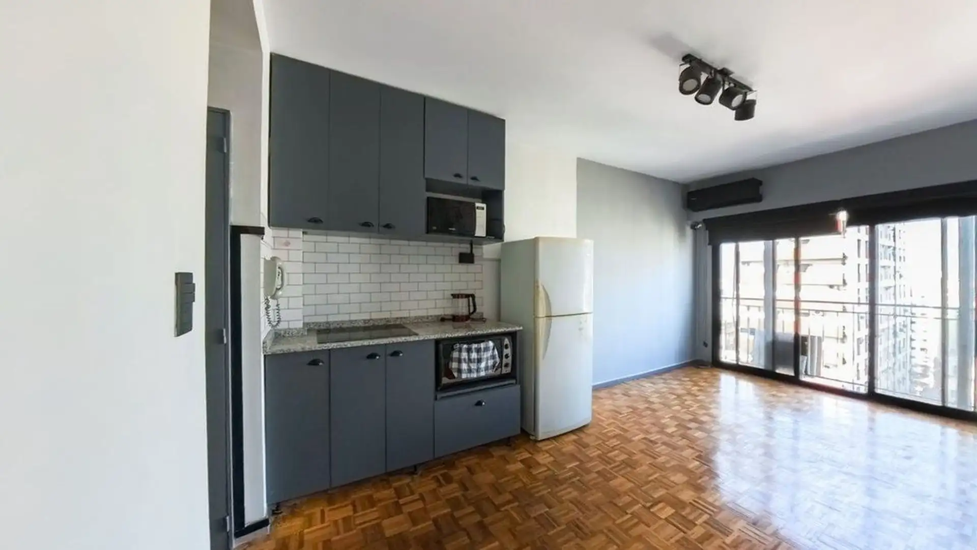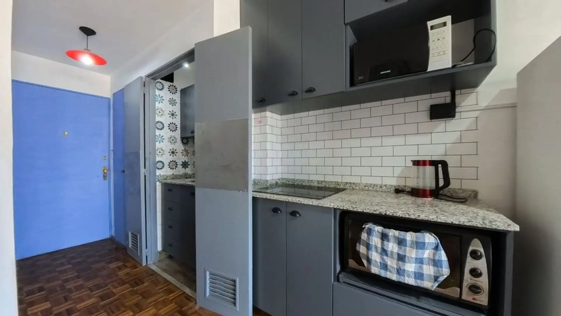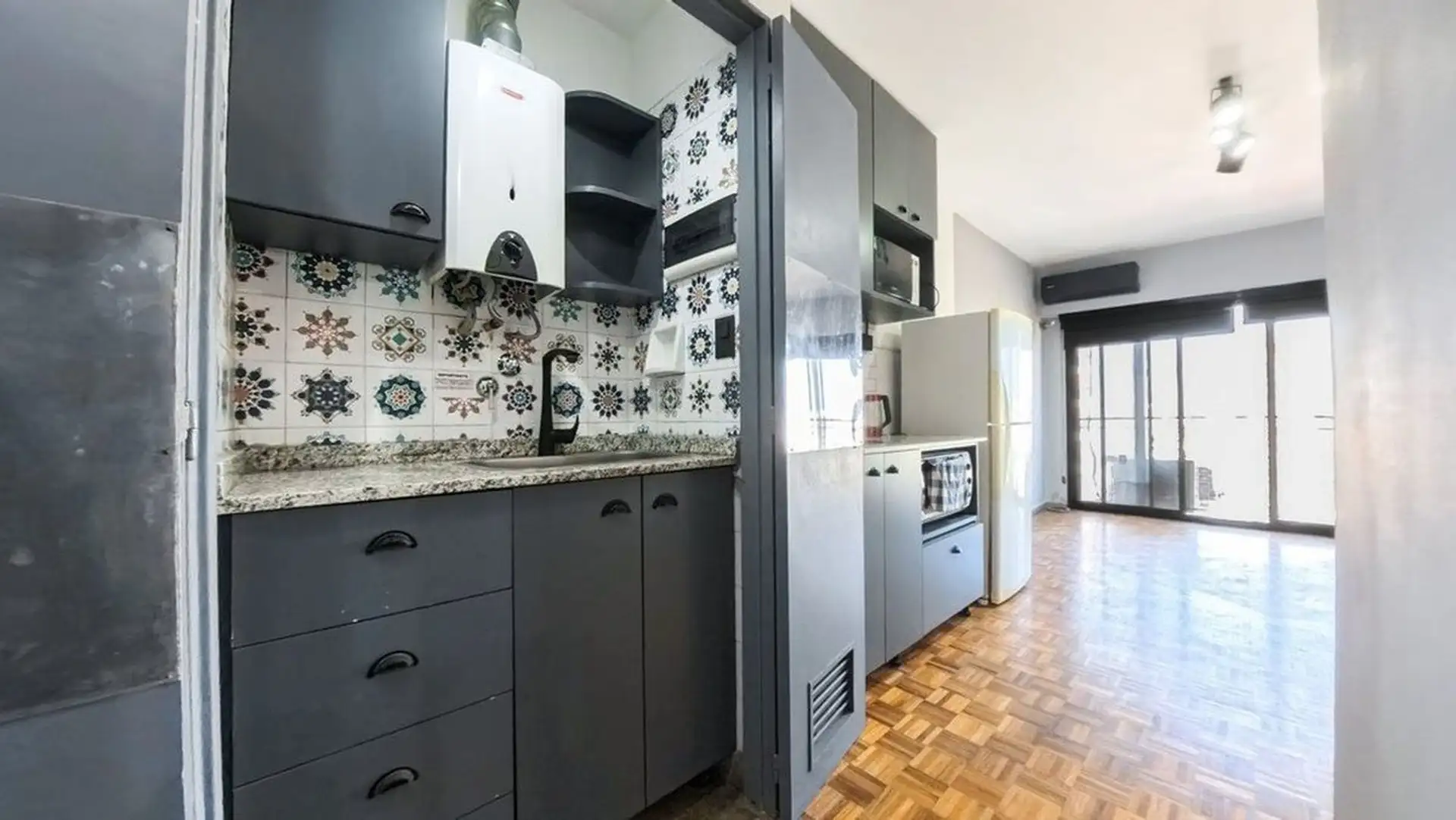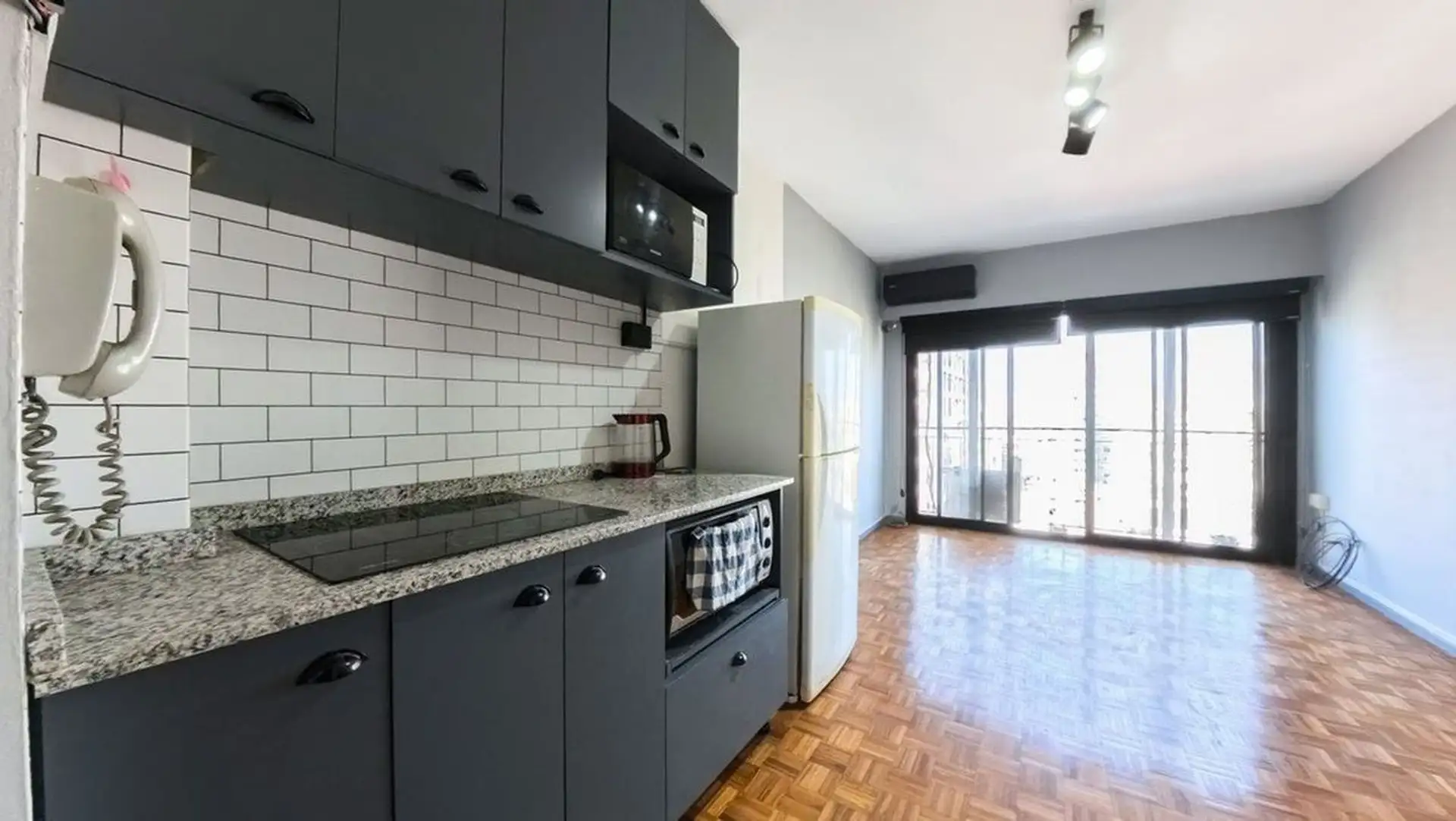 Departamento monoambiente de 36 m², piso 14 de un edificio de 19 plantas, orientación Este. Cocina integrada, baño completo y placard empotrado. Cuenta con aire acondicionado frío/calor y balcón contrafrente. El edificio fue construido en 1980 e incorpora encargado y grupo electrógeno; se ubica cerca de la estación Primera Junta de la Línea A.