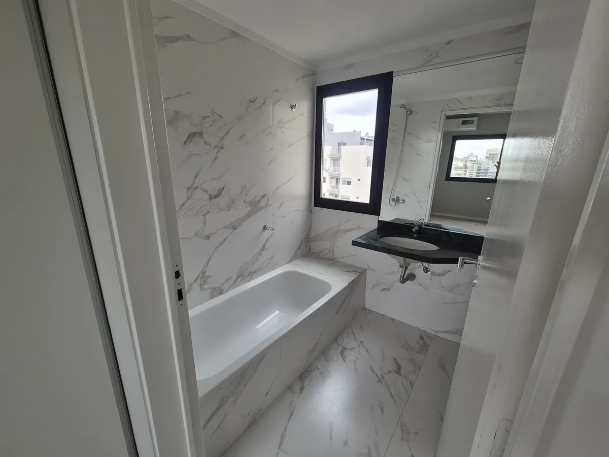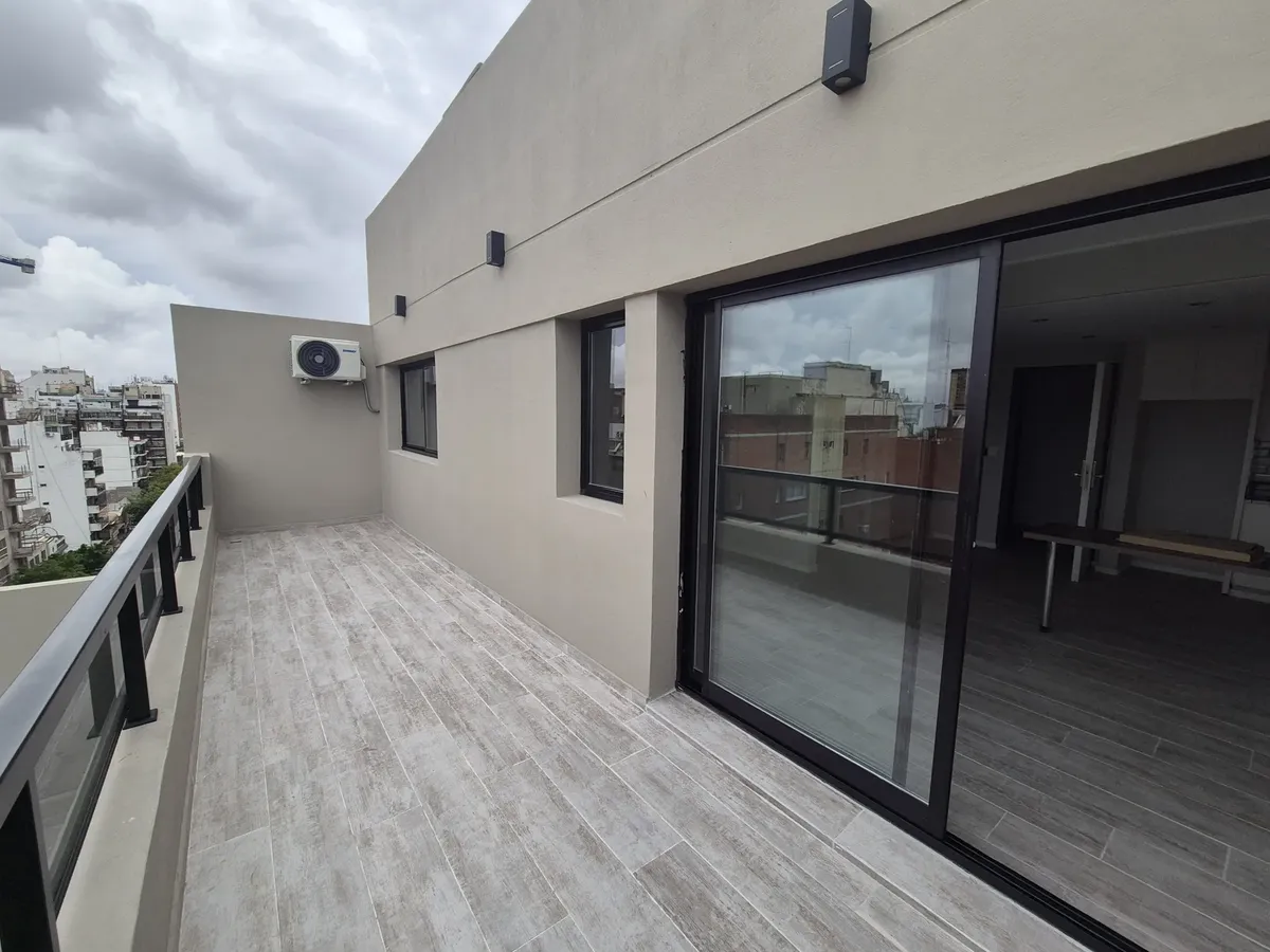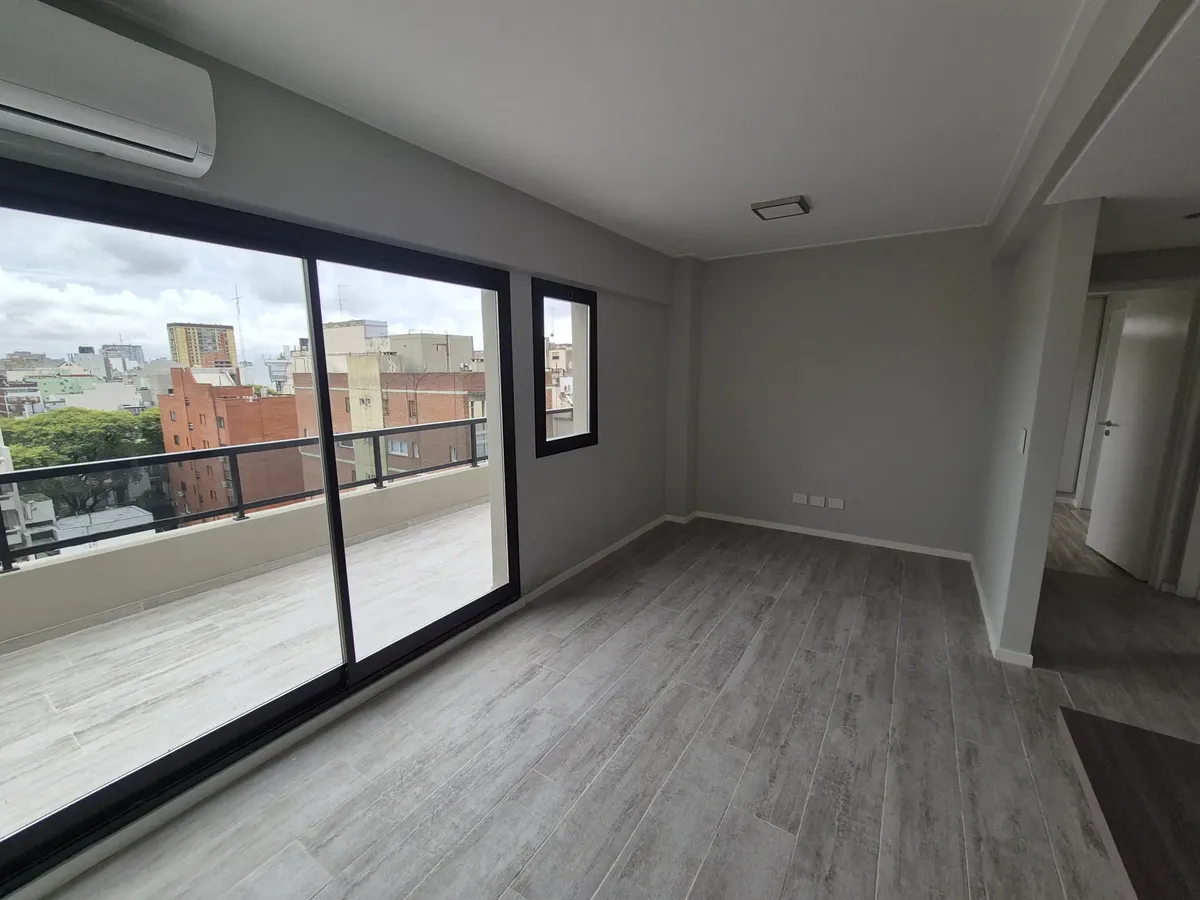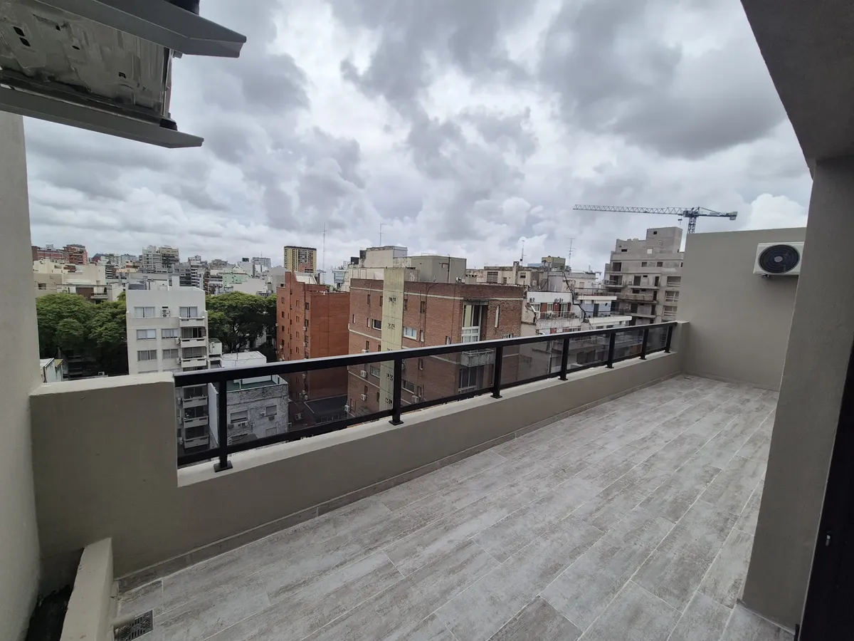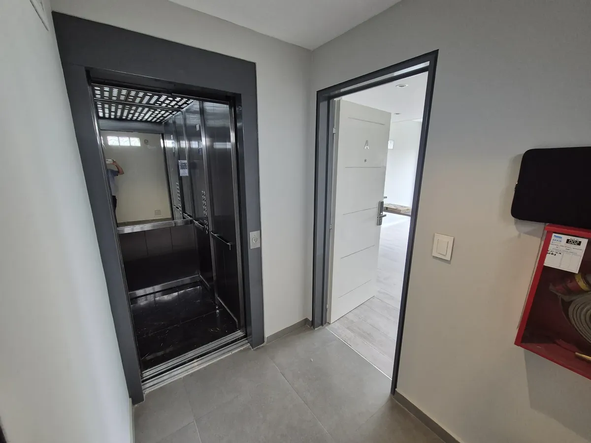 Semipiso de 2 ambientes a estrenar de 96 m² al frente con balcón y terraza. Tiene 1 dormitorio con baño en suite y 2 baños (toilette). Cuenta con 2 equipos de aire acondicionado frío/calor, calefacción por piso radiante eléctrica individual, espacio para lavarropas y doble vidriado hermético con aberturas de aluminio línea Módena. El salón de usos múltiples tiene aire, TV, kichinet y salida a terraza con pileta y parrilla; además, hay espacio para guarda bicicletas. El edificio cuenta con 2 asce