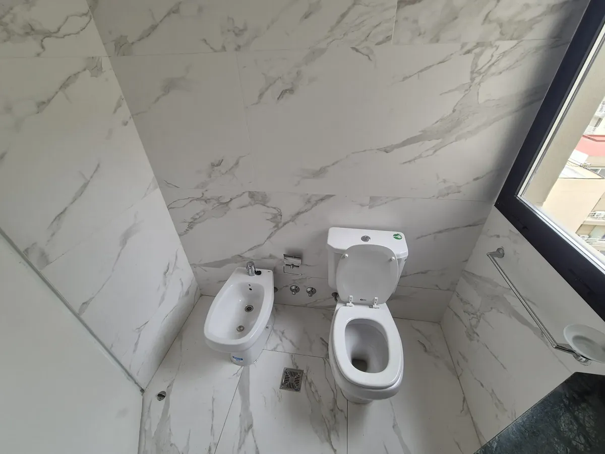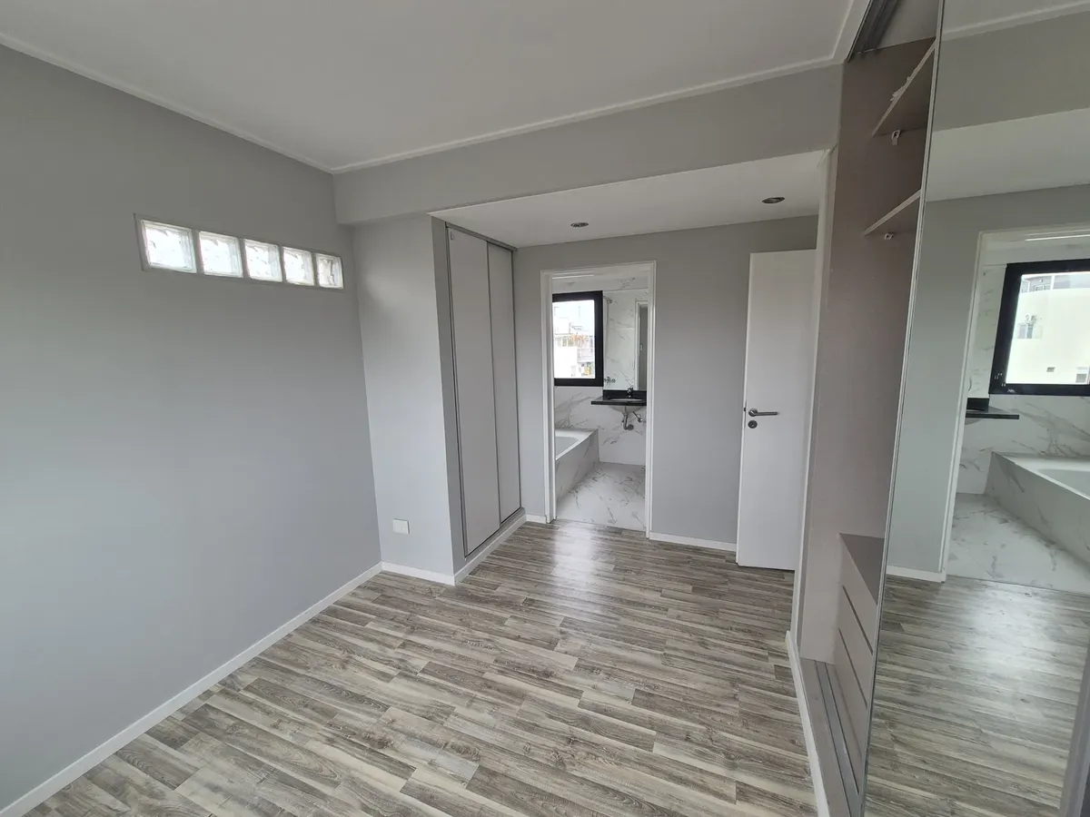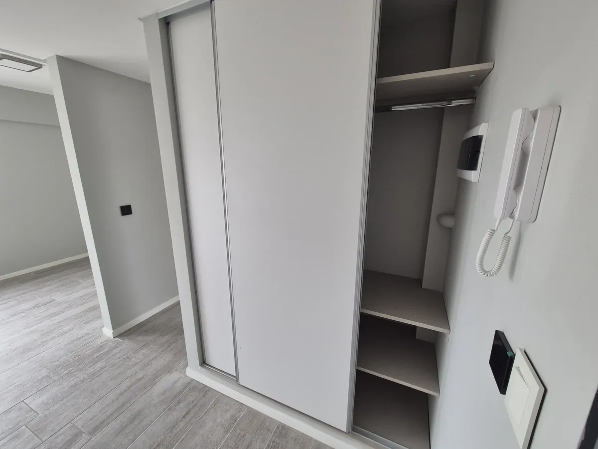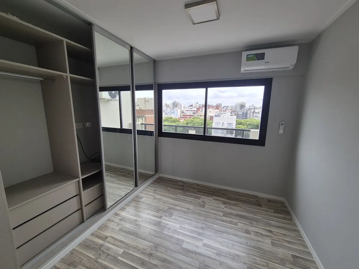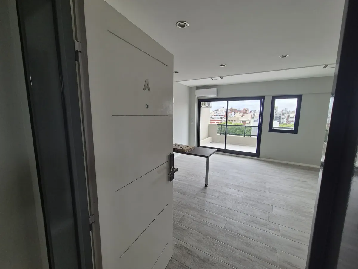 Semipiso de 2 ambientes a estrenar de 96 m² al frente con balcón y terraza. Tiene 1 dormitorio con baño en suite y 2 baños (toilette). Cuenta con 2 equipos de aire acondicionado frío/calor, calefacción por piso radiante eléctrica individual, espacio para lavarropas y doble vidriado hermético con aberturas de aluminio línea Módena. El salón de usos múltiples tiene aire, TV, kichinet y salida a terraza con pileta y parrilla; además, hay espacio para guarda bicicletas. El edificio cuenta con 2 asce