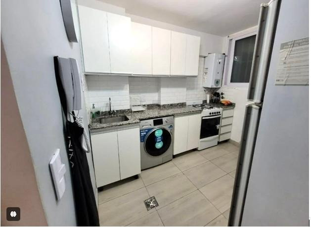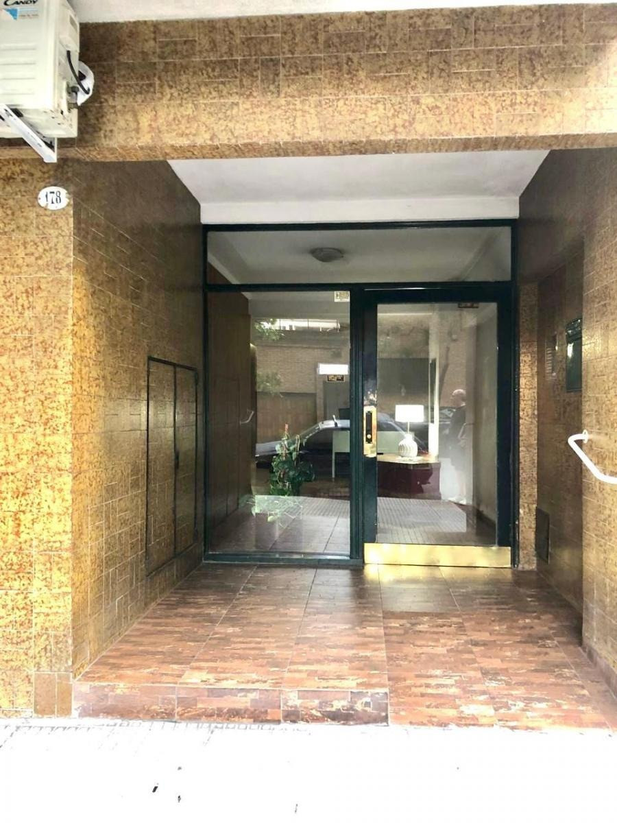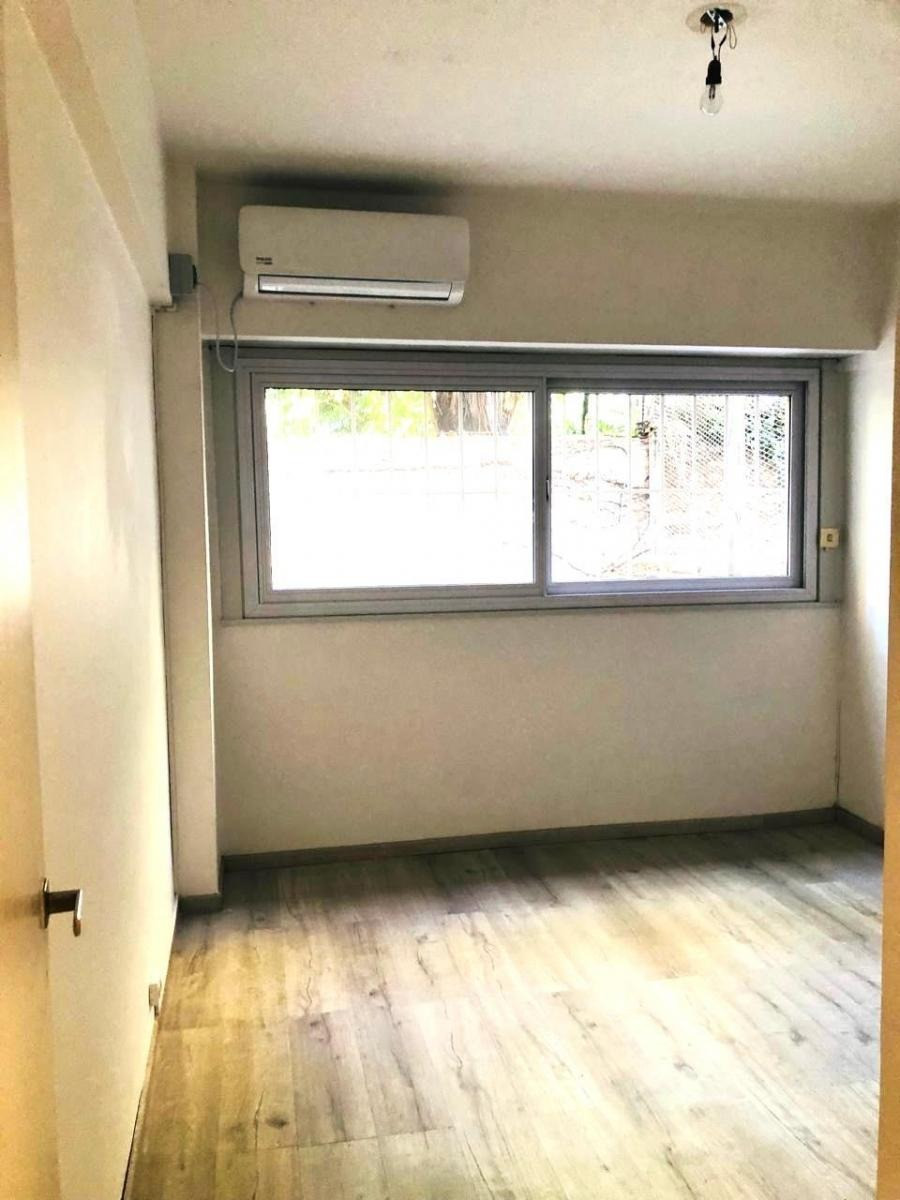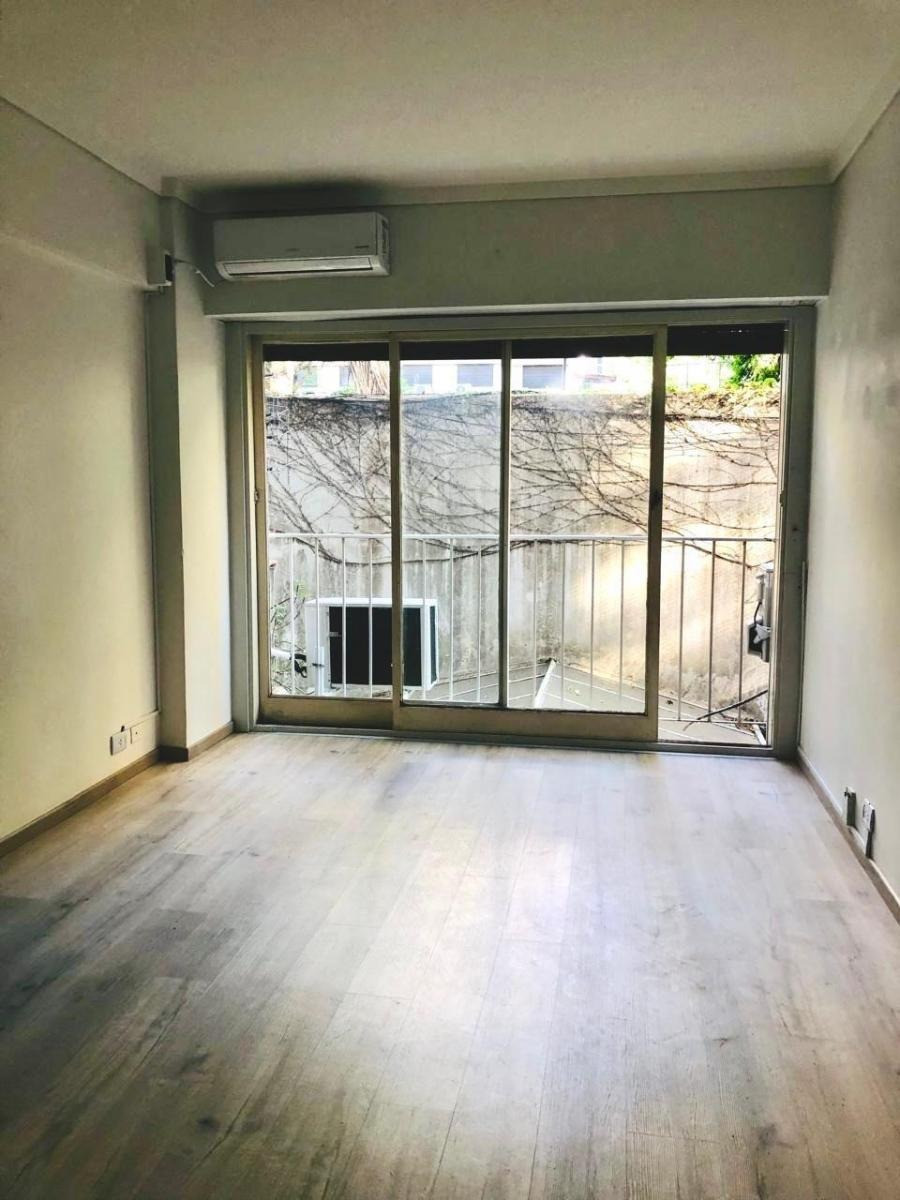 Departamento de 2 ambientes reciclado a nuevo, contrafrente, con 1 dormitorio y balcón francés. Living comedor con aire acondicionado, hall íntimo y baño completo. Dormitorio con gran placard y aire acondicionado; cocina separada con lavadero, cocina a gas y agua caliente por calefón a gas. Puerta blindada.