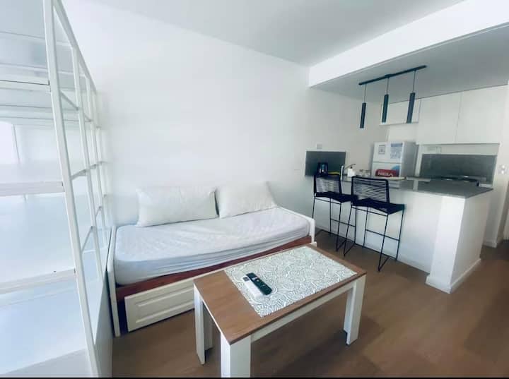 Monoambiente en Chacarita, en edificio de obra nueva. El espacio se entrega totalmente equipado y se ubica con orientación al contrafrente, con balcón al pulmón de manzana. Se encuentra a 200 metros de Av. Corrientes, con varias líneas de colectivos, y a 900 metros de la estación Dorrrego de Subte.