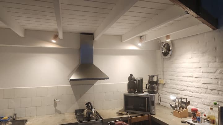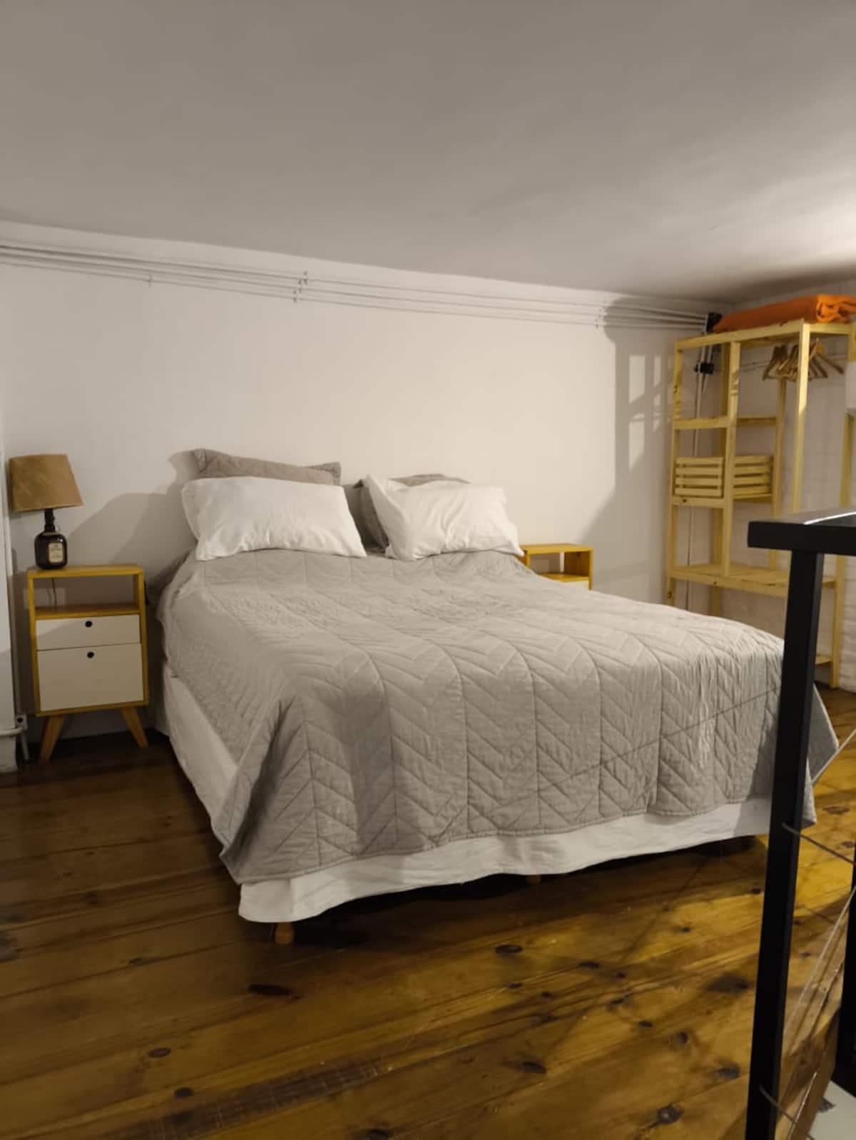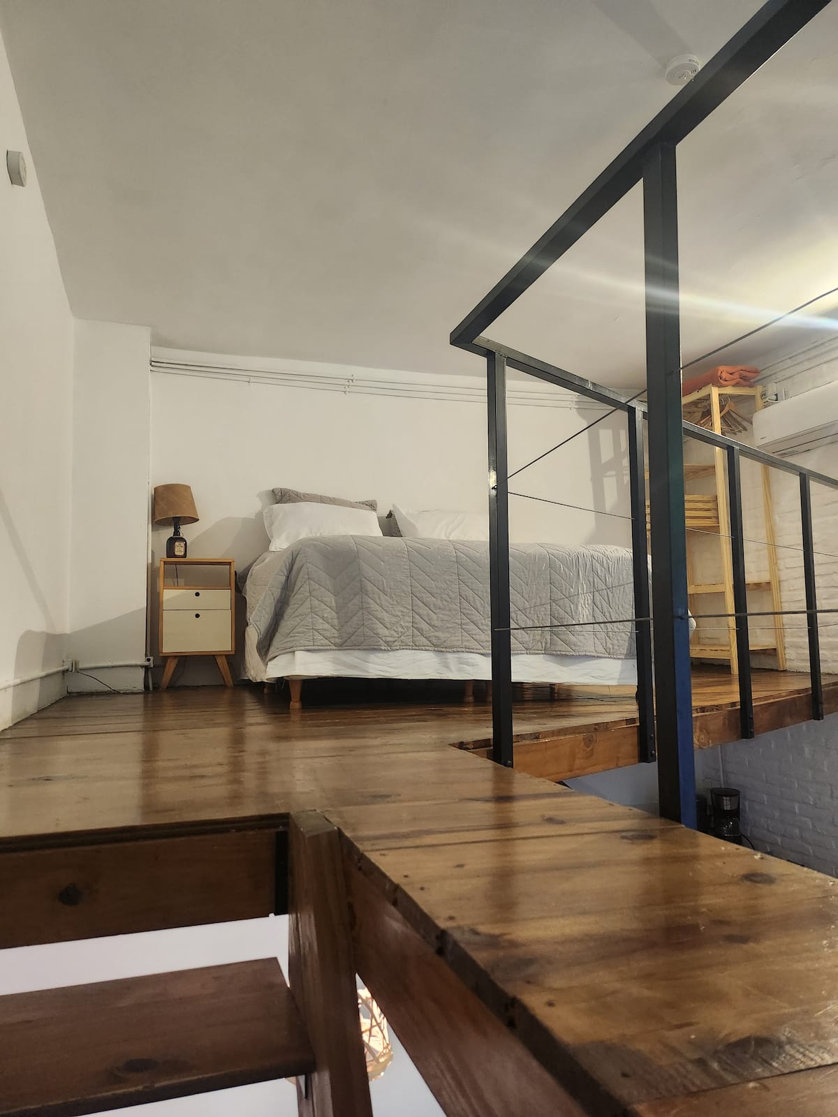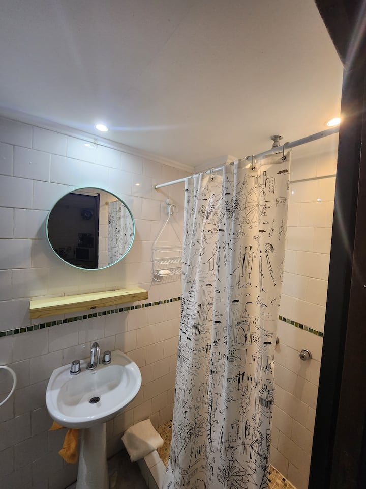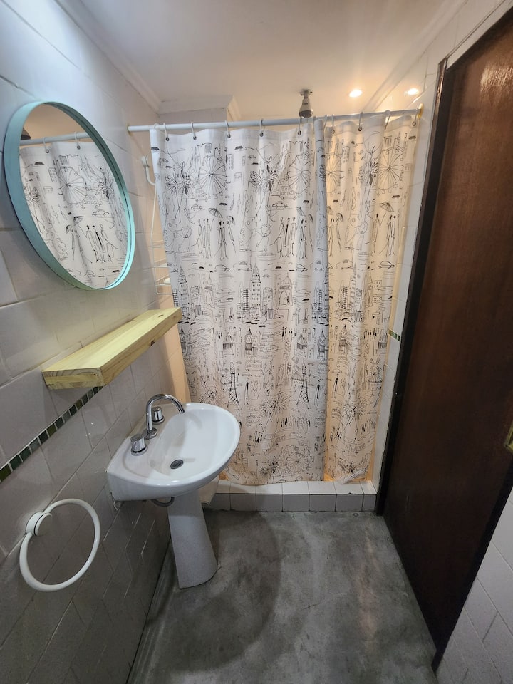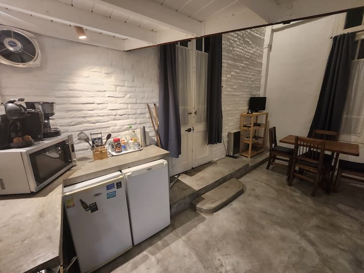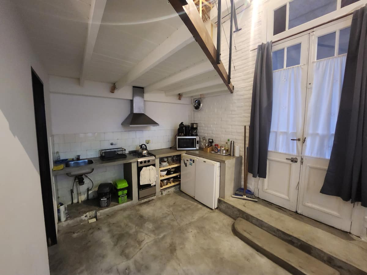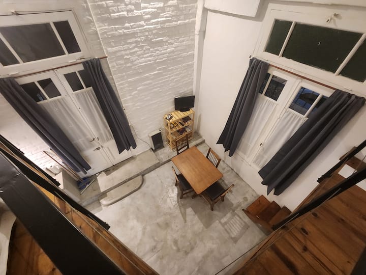 Departamento tipo loft en Chacarita, con dormitorio para 1 cama queen o 2 camas individuales. El área de estar incluye sofá y el sector de comedor cuenta con mesa para 4 personas. El acceso es mediante un portón compartido con los propietarios y, luego, una puerta interior hacia el loft. A pocos minutos de Palermo Hollywood, con oferta de restaurantes, cafés, bares y locales de diseño.