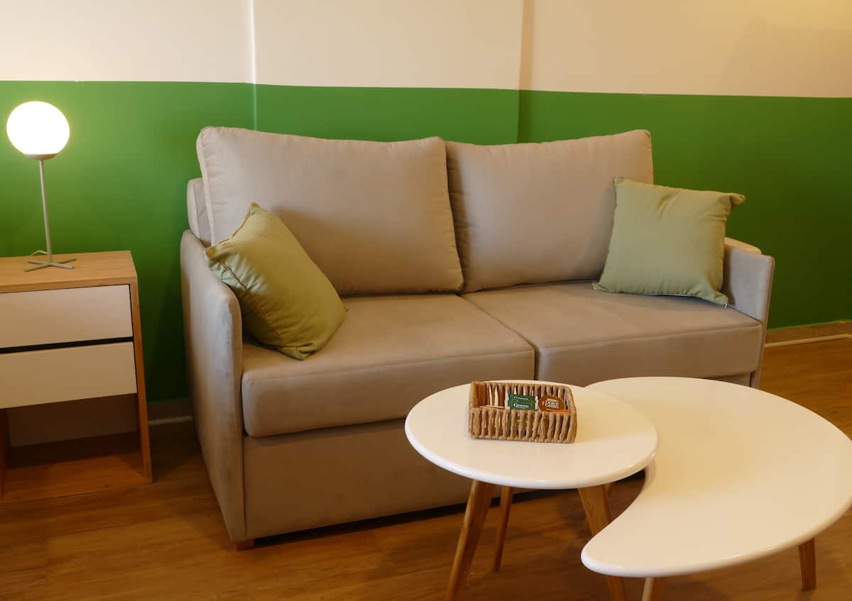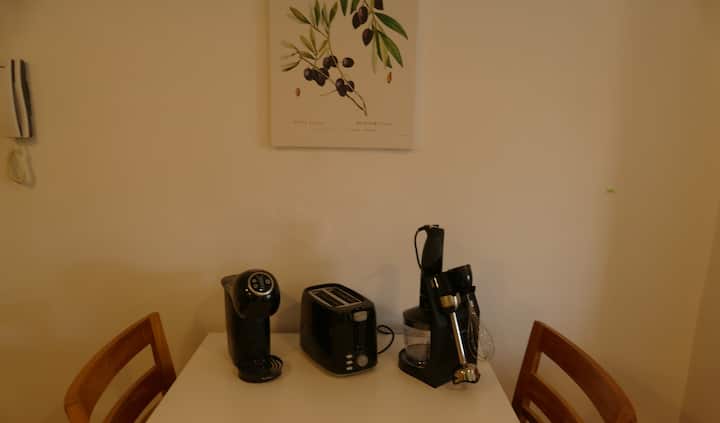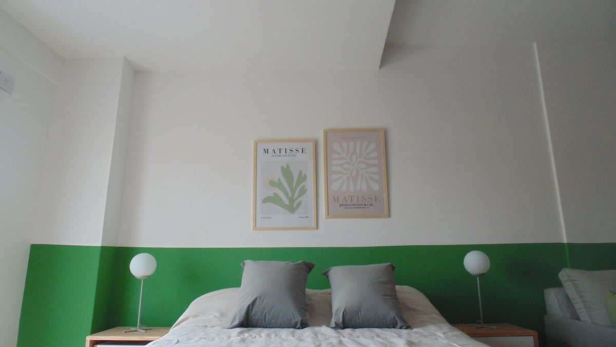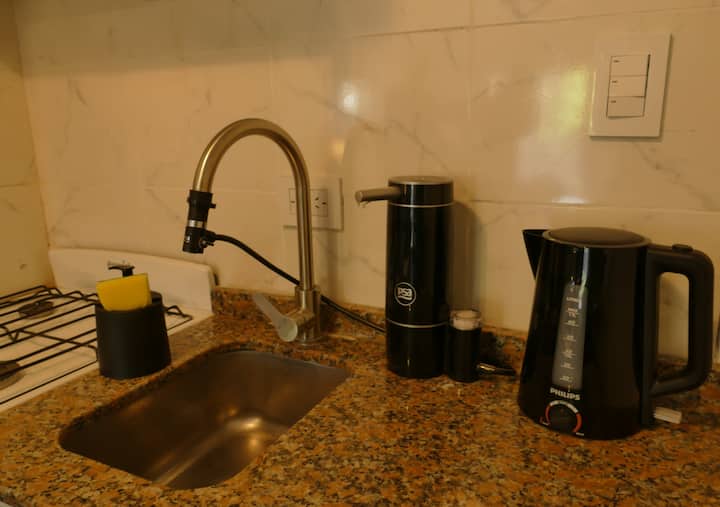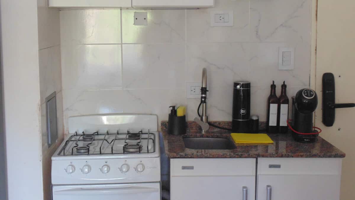 Monoambiente en Palermo Hollywood, a estrenar, con equipamiento y mobiliario. Acomoda hasta 4 personas: cama doble y sofá cama doble. Incluye electrodomésticos Samsung, TV de 55', aire acondicionado frío/calor y heladera con freezer. Cocina equipada con filtro PSA, pava eléctrica, tostadora, cafetera Dolce Gusto y minipimer, además de vajilla completa y utensilios. Suma mesa de trabajo con silla y conexiones con tira de energía (USB-C, USB y toma universal).