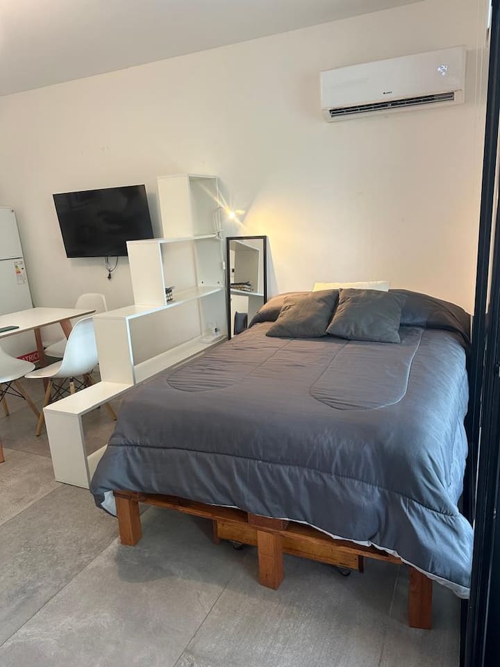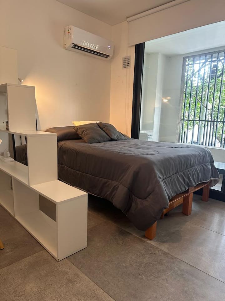 Monoambiente en Chacarita. Cuenta con cama doble y grandes ventanales. Se encuentra cerca de la estación de Subte B, líneas de colectivos y de la zona de Parque Los Andes, Movistar Arena y el Cementerio de Chacarita.
