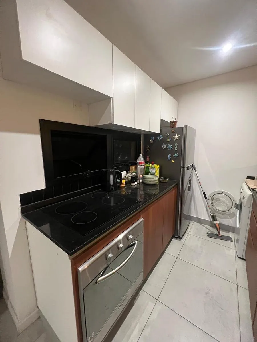 Departamento de 2 ambientes con 1 dormitorio en suite, de contrafrente, con balcón y vista abierta. Se ofrece totalmente amoblado y equipado. Cuenta con aire acondicionado frío/calor en living comedor y en la suite, parrilla en el balcón, cocina integrada con heladera y lavarropas, y toilette. El edificio dispone de SUM, pileta, solarium, gym y laundry, y tiene acceso para personas con movilidad reducida. El agua caliente es central. El alquiler publicado es alquiler temporal con expensas de $38