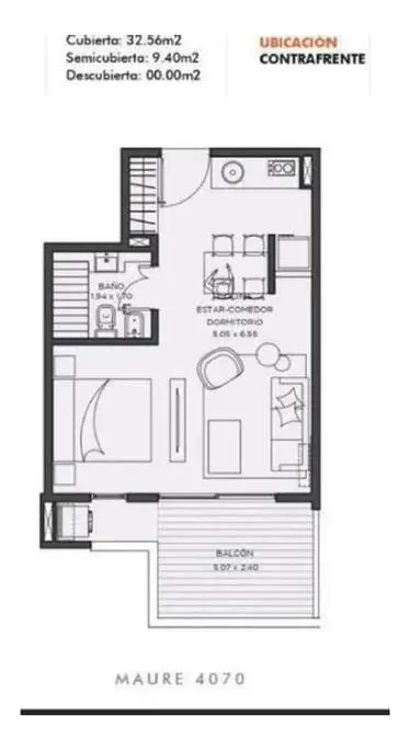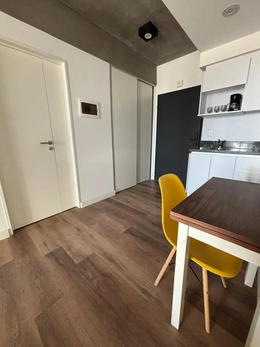 Departamento de alquiler temporario de ambiente y medio, a estrenar, en Chacarita, en Distrito Maure. Se entrega amoblado e incluye vajilla, microondas, TV smart, aire acondicionado frío/calor y ropa de blanco. Living-comedor con salida a balcón corrido, baño completo y cocina con alacena y bajo mesada. El alquiler es USD 750 mensual, en modalidad paquete e incluye expensas, ABL, AYSA y wifi; no incluye el servicio de luz. El edificio cuenta con piscina, solarium con duchas, sector de parrillas,