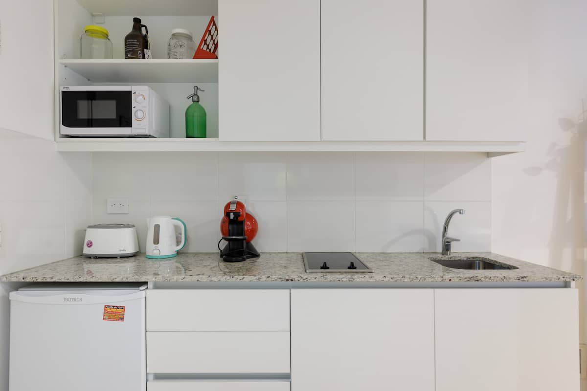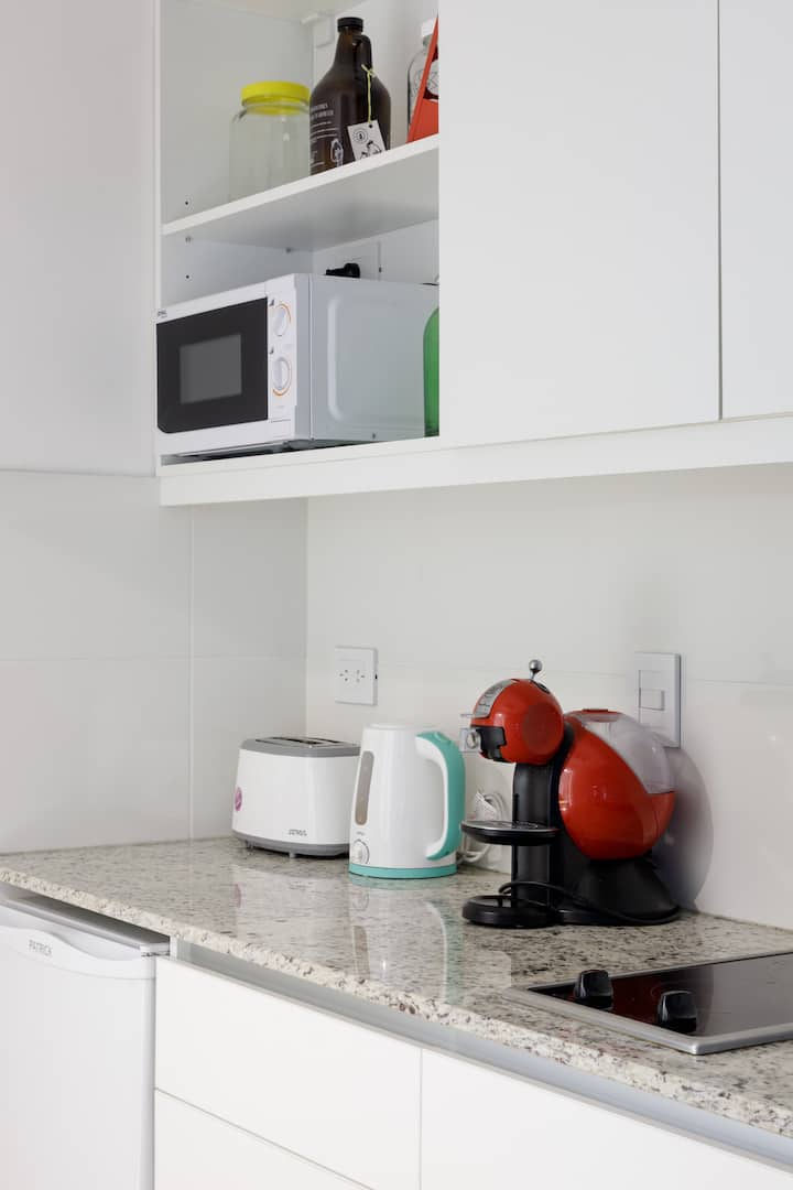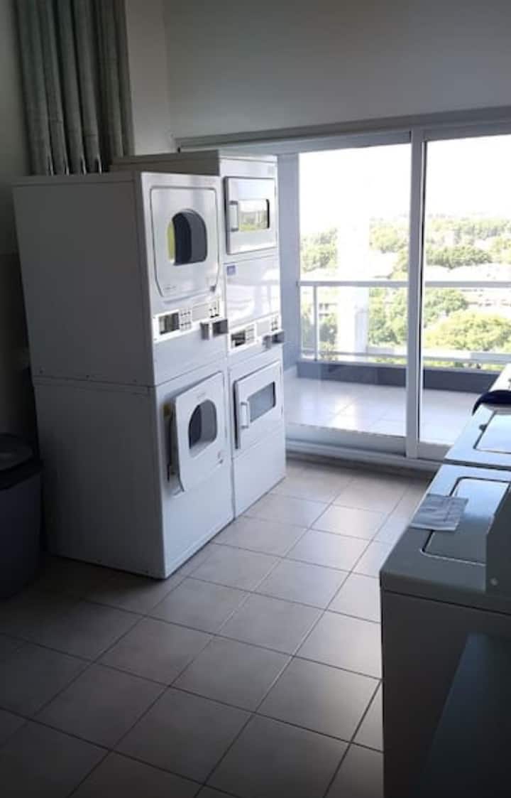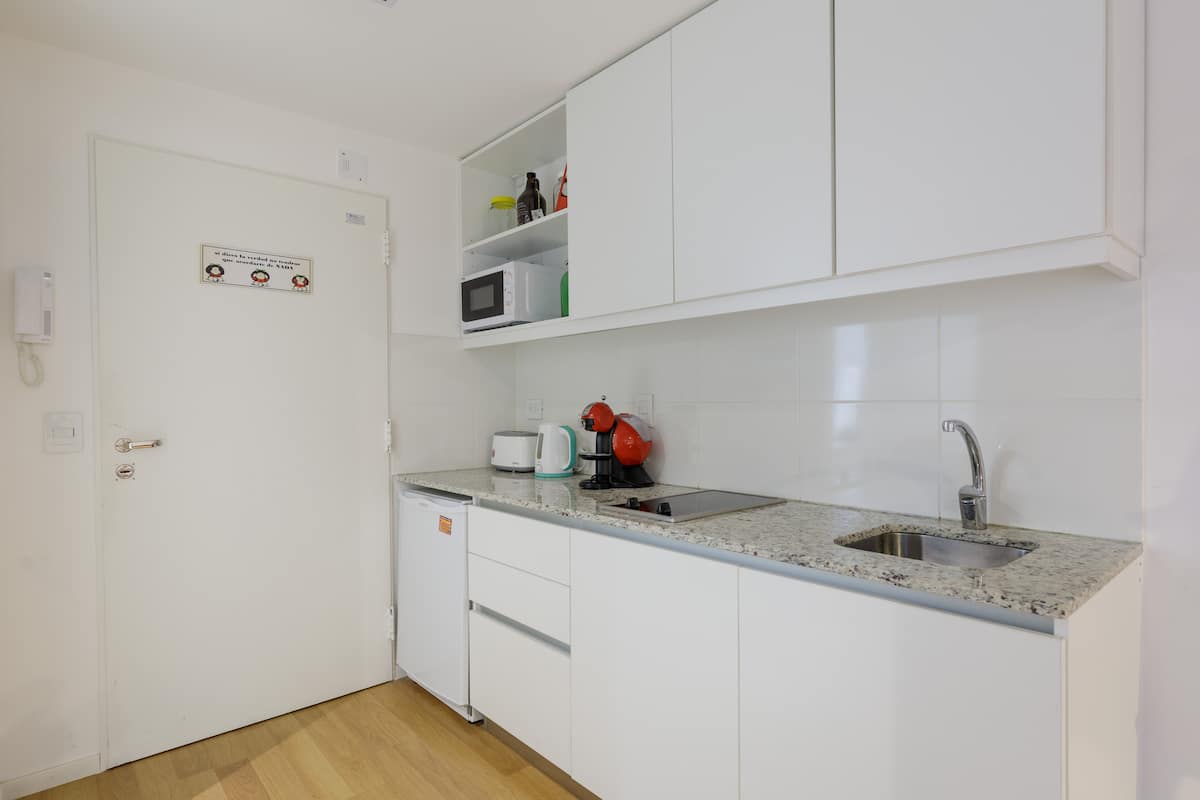 Departamento de 1 dormitorio en Chacarita, en un edificio de 8vo piso sobre Av. Corrientes. El living con cocina está integrado y el departamento se entrega amoblado y equipado, con heladera con freezer, vajilla, TV y Wi-Fi. El edificio cuenta con pileta, solárium, gimnasio, lavandería y un salón para eventos y reuniones, además de seguridad 24 horas. El acceso a la pileta es de 15 de noviembre a 31 de marzo, con condiciones de uso indicadas por el reglamento.