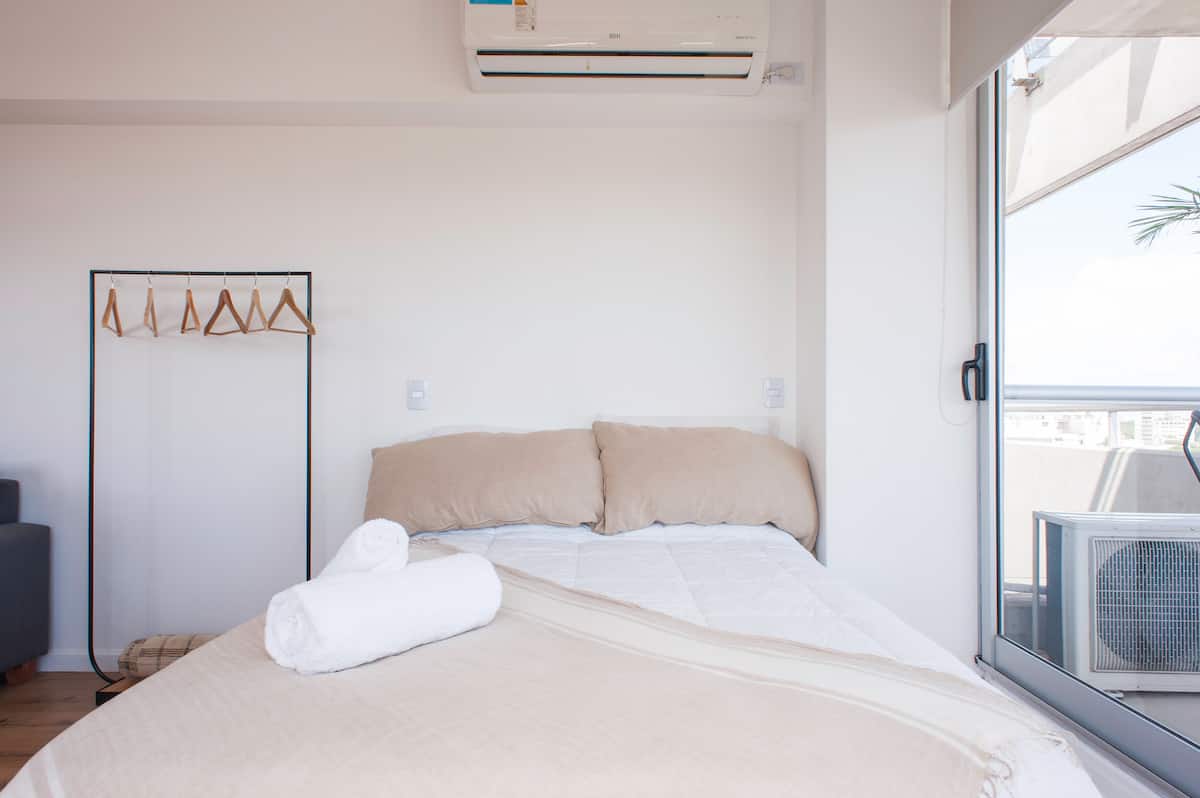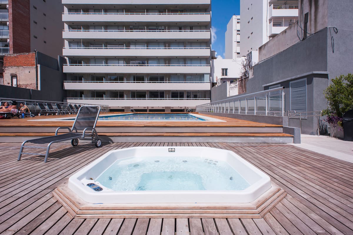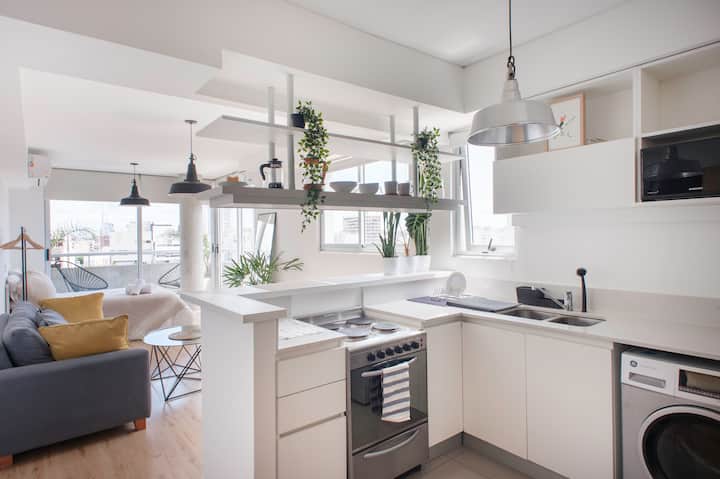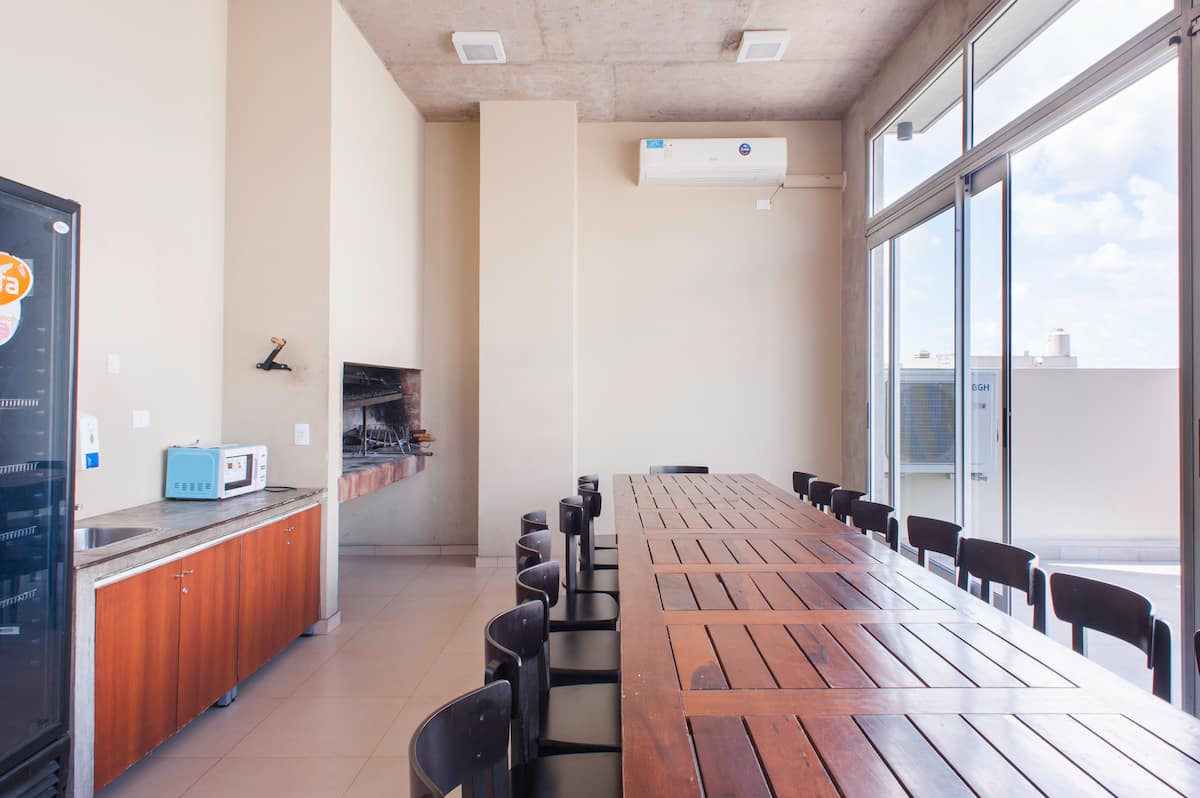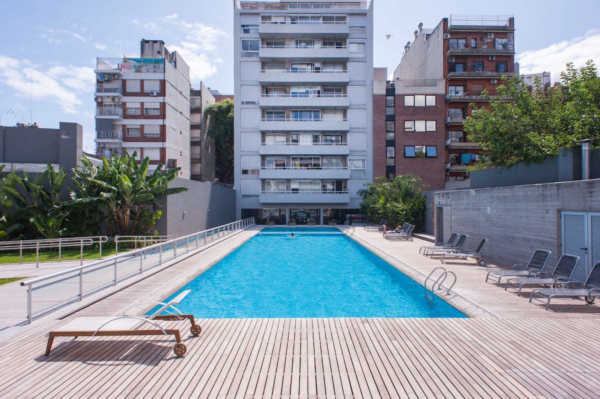 Departamento en el último piso del complejo LA MUSA STARS, con 1 dormitorio. Está amoblado y recientemente pintado. Incluye lavarropas, secarropas, heladera, tostadora, licuadora y calefón, y conexión WiFi de 25 Mbps. El complejo cuenta con gimnasio, jacuzzy y pileta olímpica, además de 2 piletas y área de jardín con zona de relax, parrillas y mesa de ping pong. También hay cocheras disponibles bajo modalidad por hora o por día, y el acceso al uso de laundry.