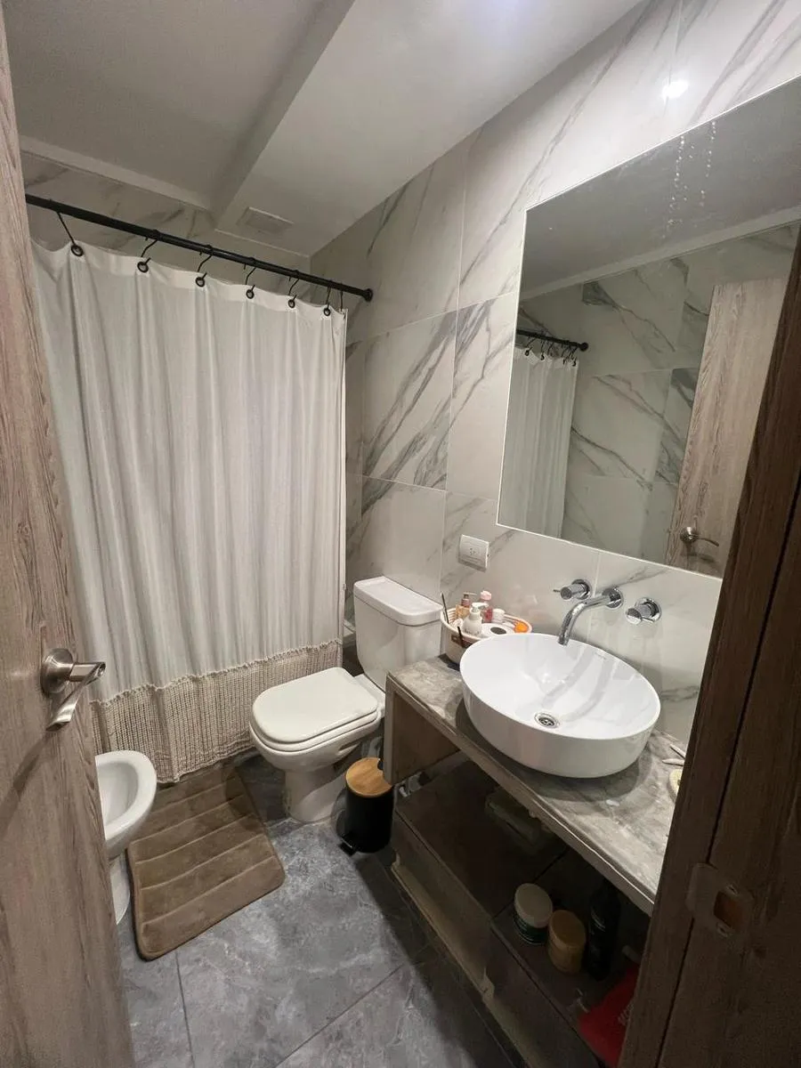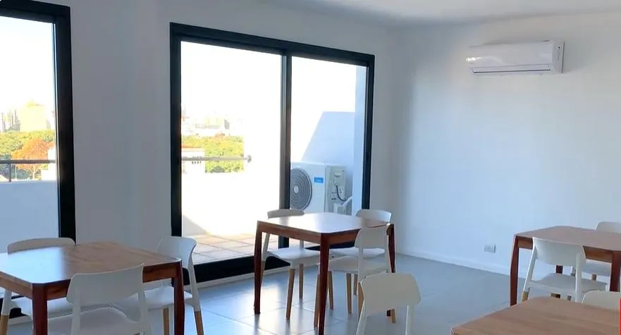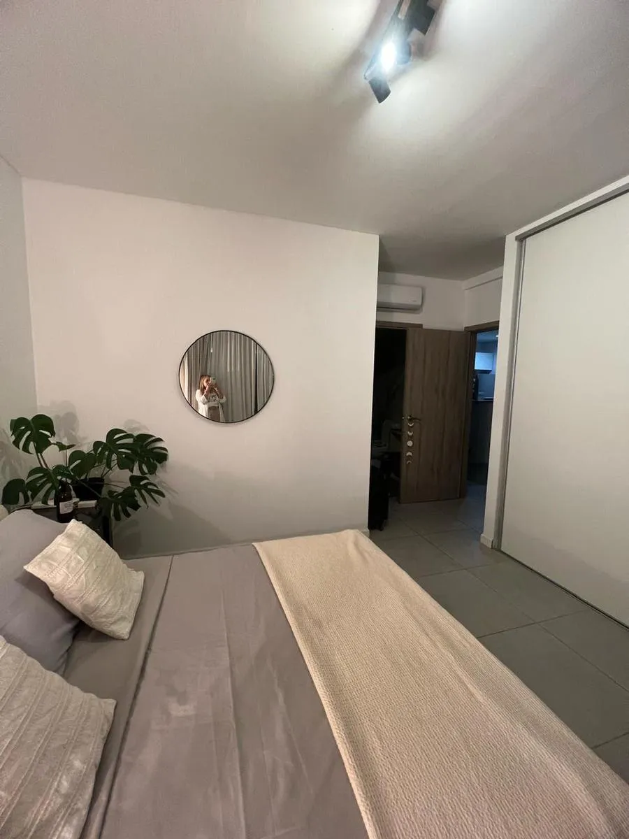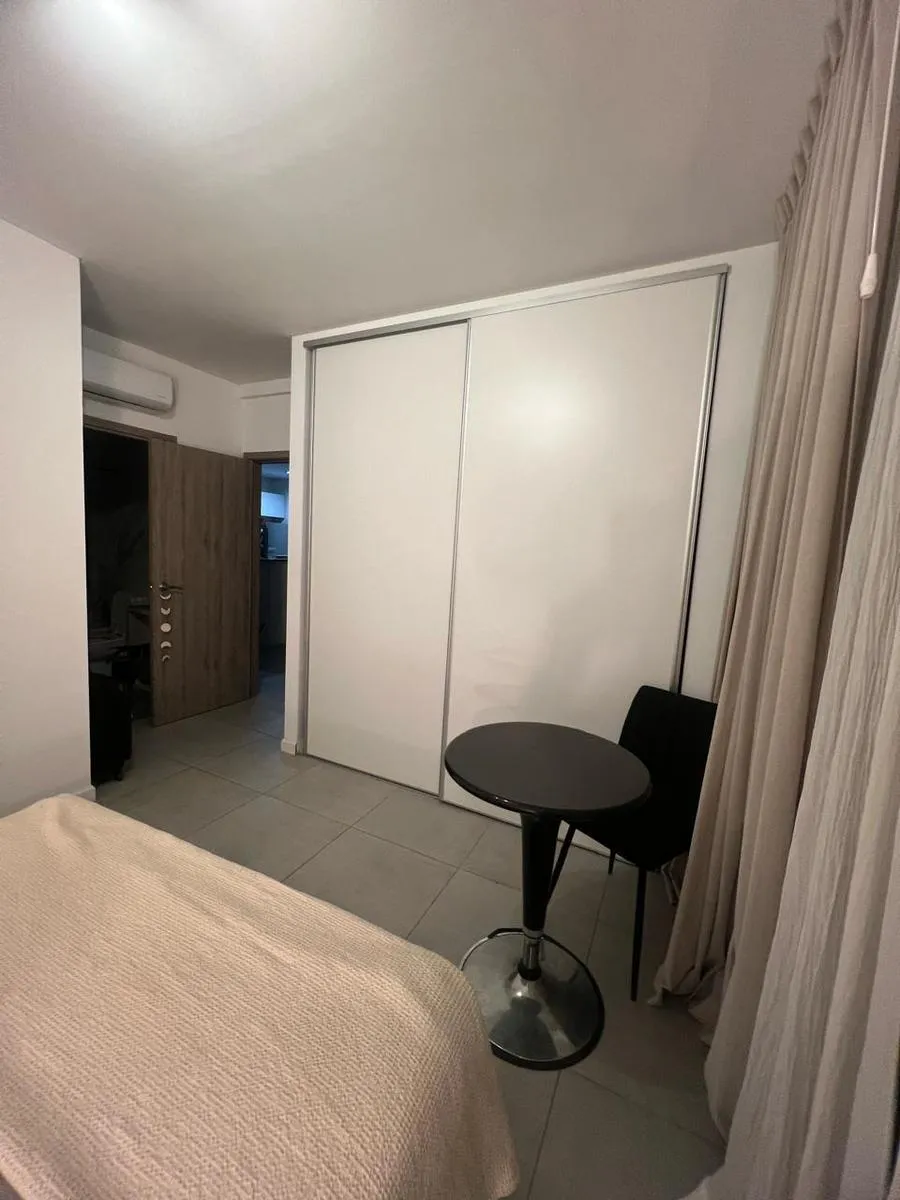 Departamento de 2 ambientes de un dormitorio en suite, con balcón al contrafrente y vista abierta. Totalmente amoblado y equipado; cuenta con dos equipos de aire acondicionado frío/calor (living comedor y suite) y acceso por living comedor con balcón ancho y parrilla. Cocina integrada con heladera y lavarropas, toilette, baño completo en suite. El edificio dispone de SUM, pileta, solarium, gym y laundry, y es apto personas con movilidad reducida; incluye agua caliente central y seguridad. Alquil