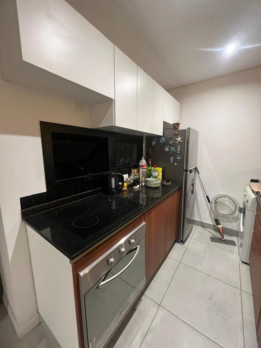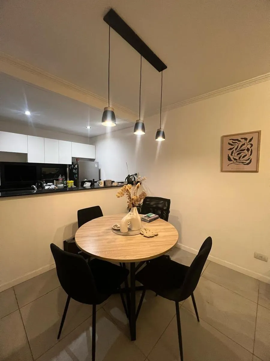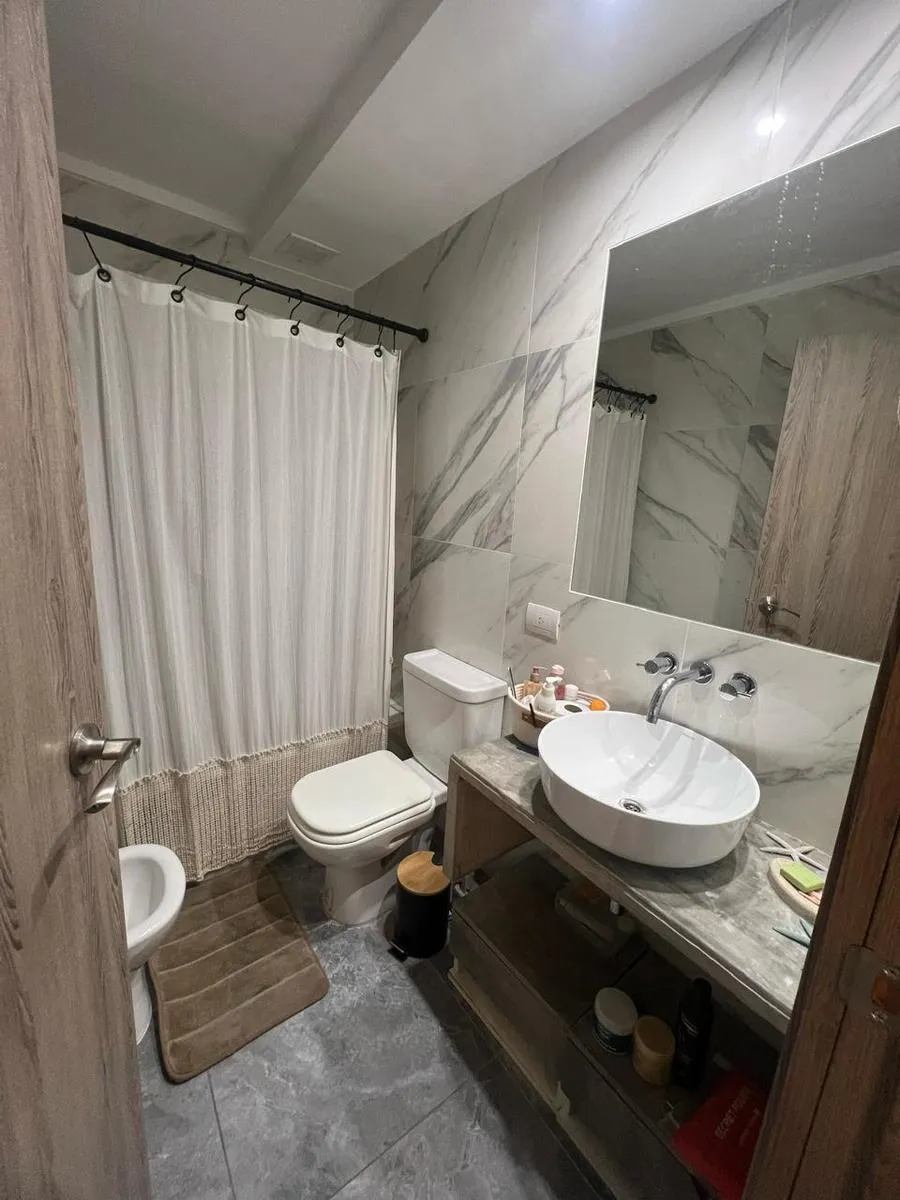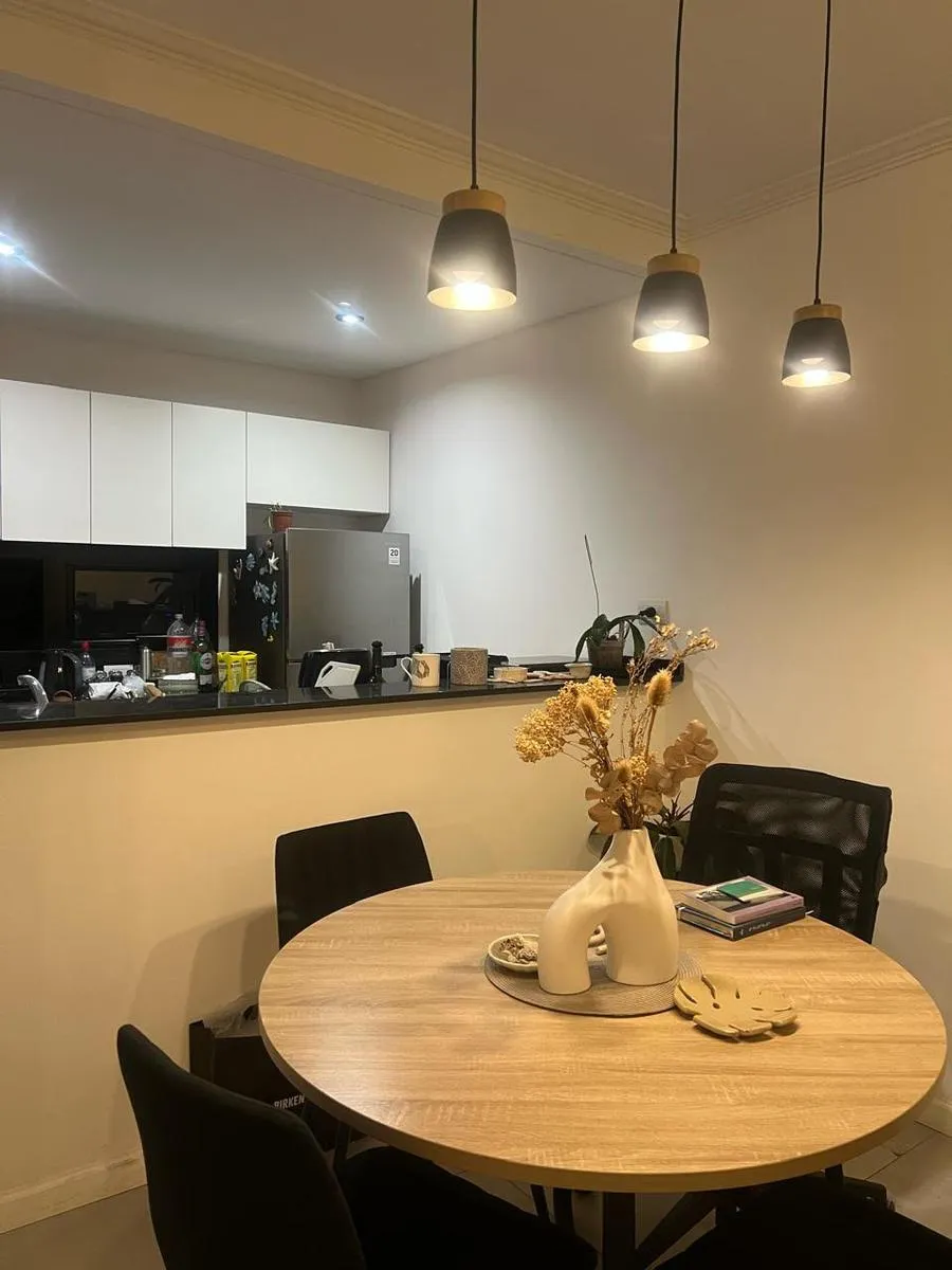 Departamento de 2 ambientes de un dormitorio en suite, con balcón al contrafrente y vista abierta. Totalmente amoblado y equipado; cuenta con dos equipos de aire acondicionado frío/calor (living comedor y suite) y acceso por living comedor con balcón ancho y parrilla. Cocina integrada con heladera y lavarropas, toilette, baño completo en suite. El edificio dispone de SUM, pileta, solarium, gym y laundry, y es apto personas con movilidad reducida; incluye agua caliente central y seguridad. Alquil