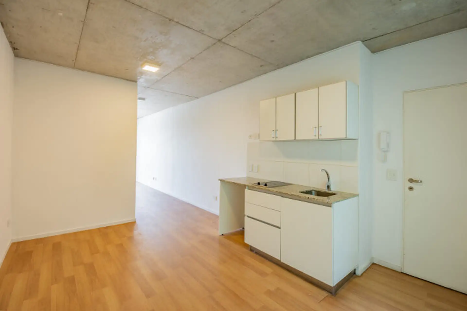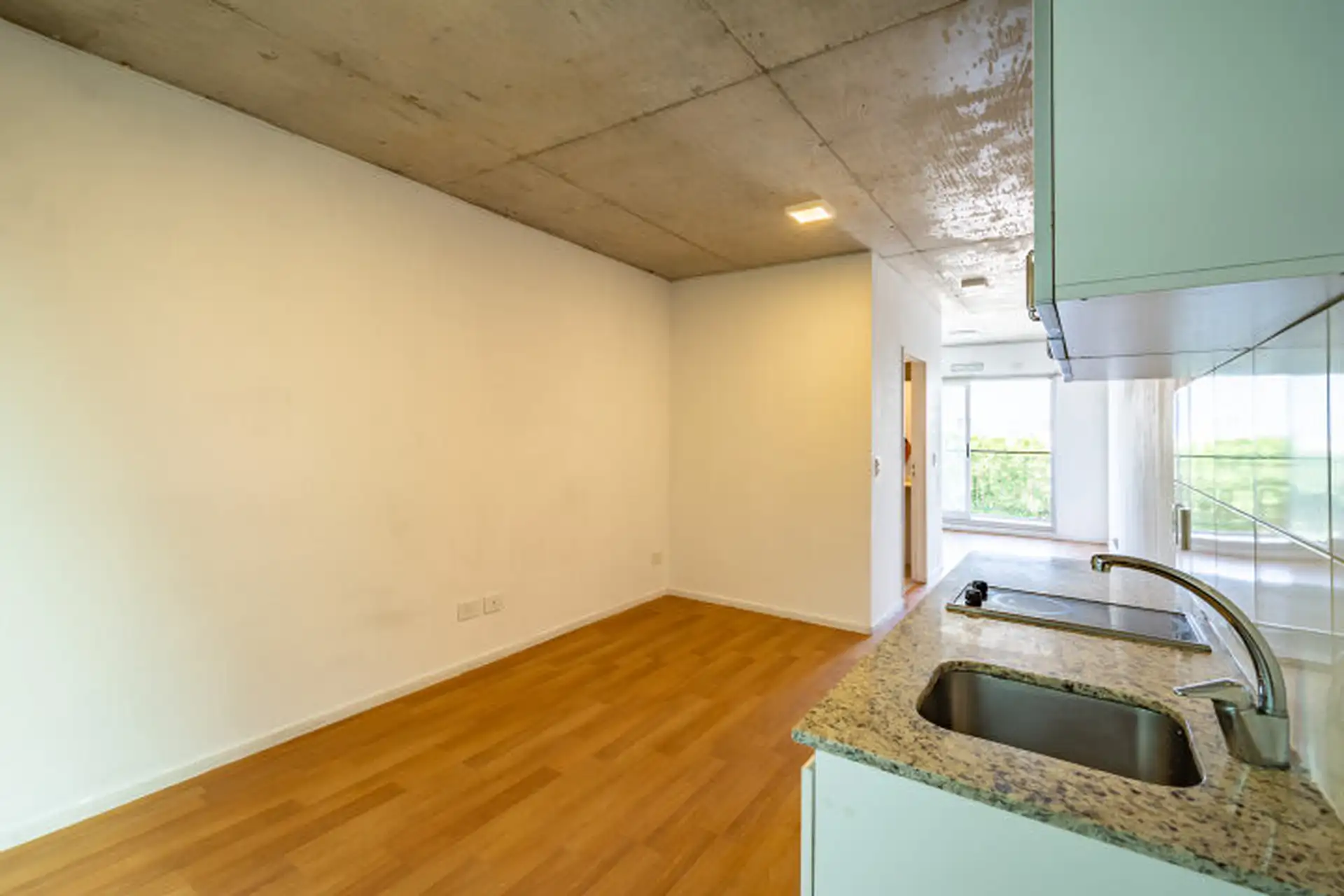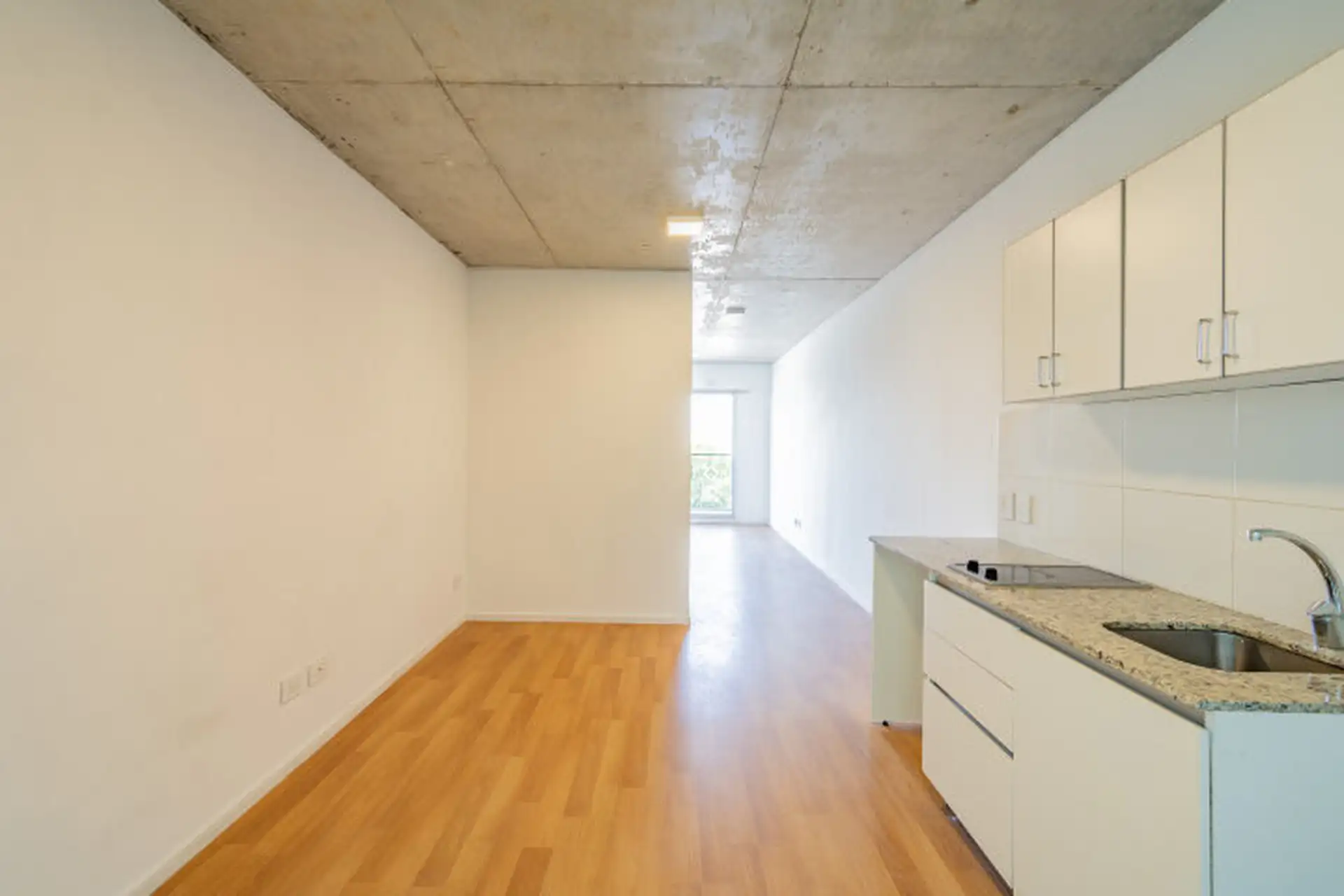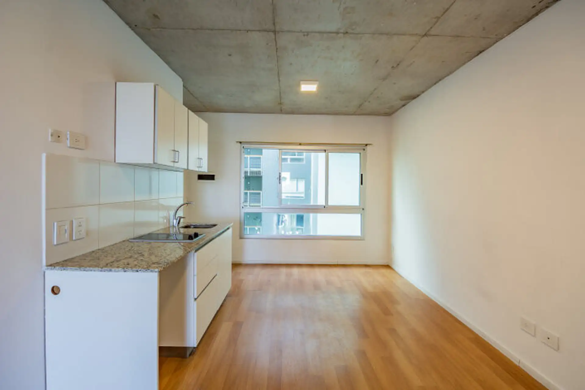Monoambiente en 8º piso con vista abierta en Chacarita, en el edificio Walden. Cuenta con balcón al frente con ventanal de piso a techo, cocina integrada con muebles bajo mesada y alacenas, mesada de granito y anafe eléctrico vitrocerámico. Incluye baño completo, pisos flotantes, espacio fijo de cochera en el subsuelo y amenities: gimnasio, SUM, laundry y seguridad con accesos controlados y cámaras.