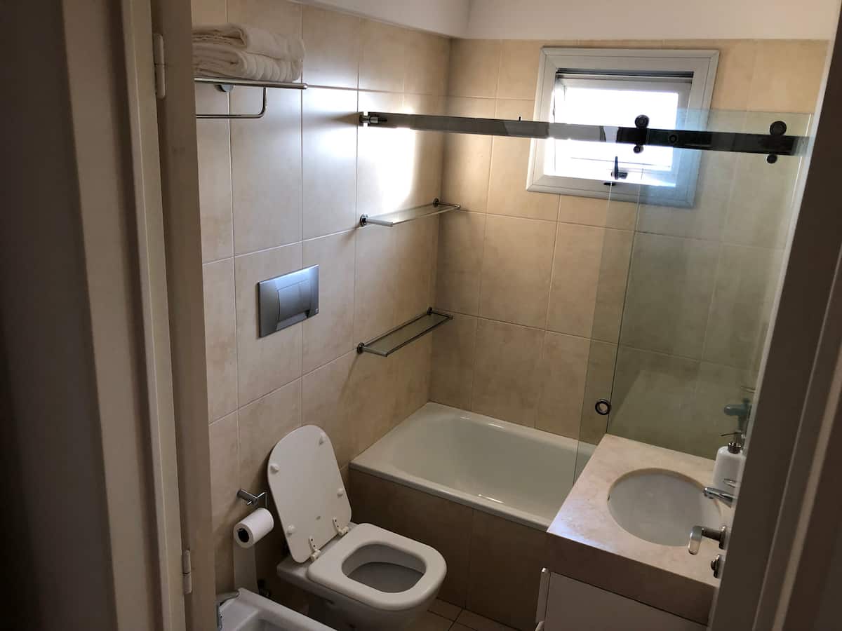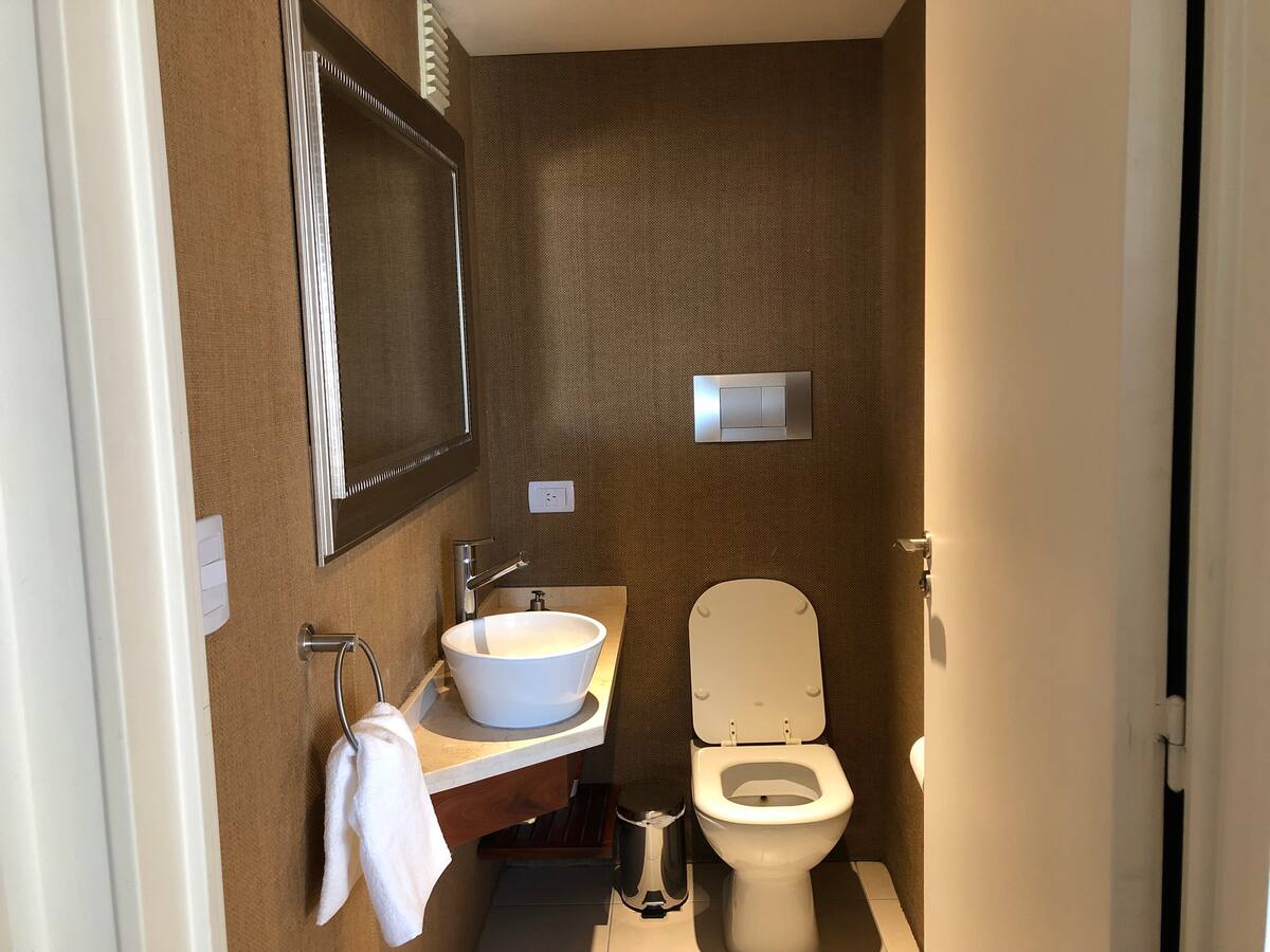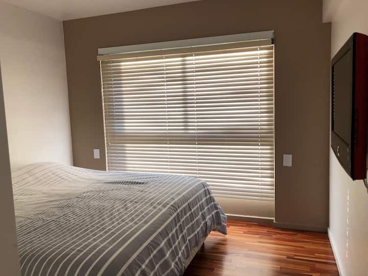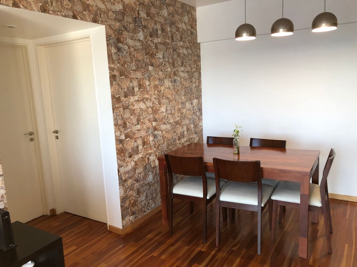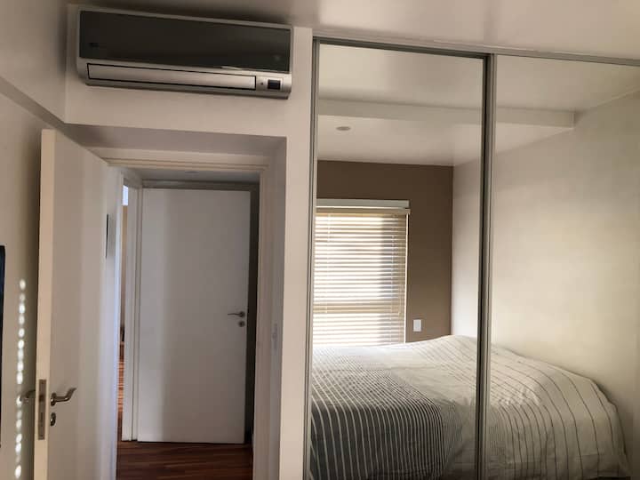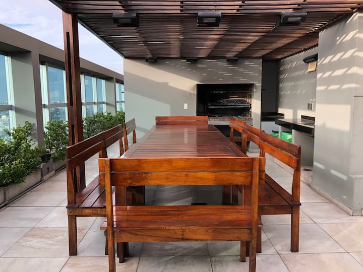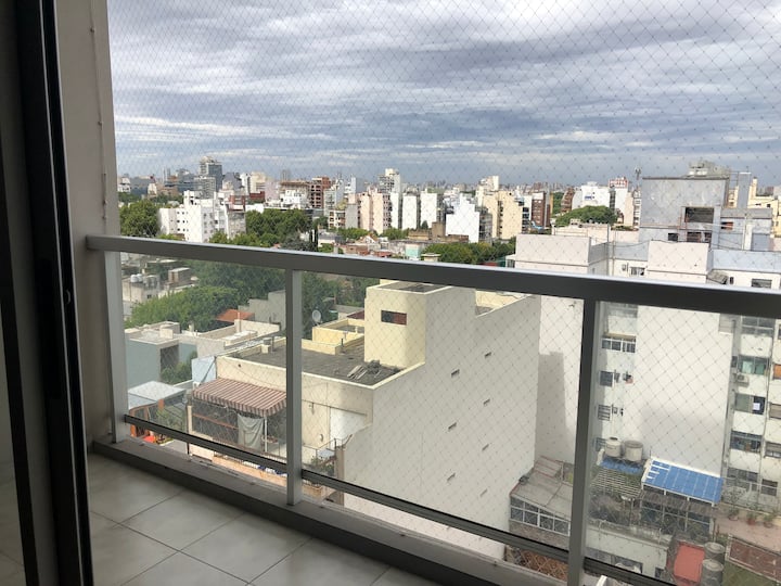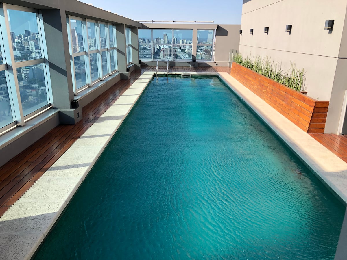 Departamento en Chacarita. Cuenta con 1 dormitorio, 2 baños (baño y toilette) y vista a la ciudad. Está amoblado para 2 personas e incluye cama King, posibilidad de uso del sofá como cama, WiFi y 2 Smart TV (42" y 32"). Tiene aire acondicionado frío/calor, calefacción por losa radiante y placard. El edificio ofrece pileta, gimnasio, SUM y parrilla; la parrilla y el SUM requieren reserva previa en la guardia. También cuenta con laundry; el servicio tiene un costo de 35 pesos argentinos y se paga