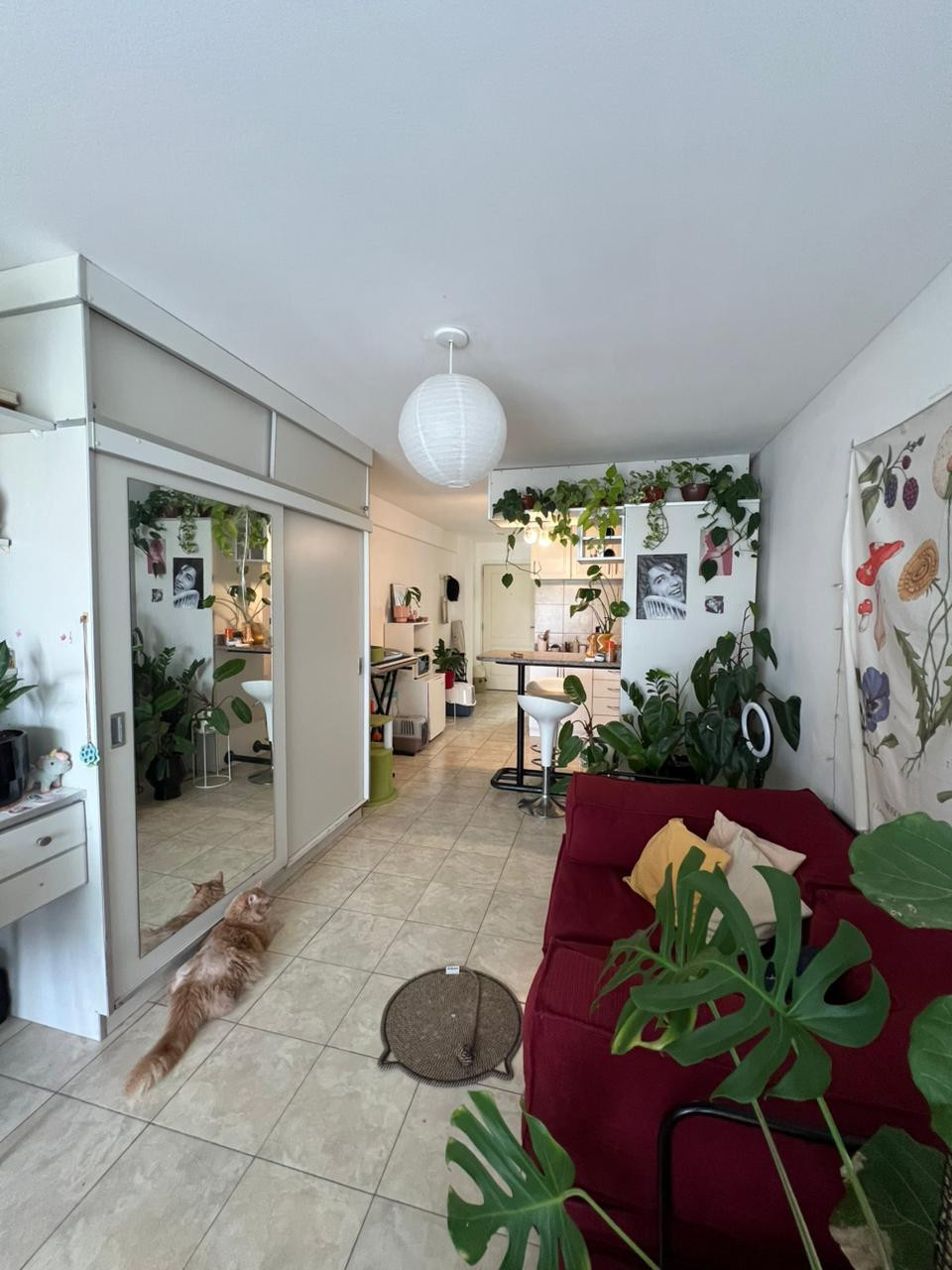 Apartamento de 1 ambiente divisível, de frente para a rua, totalmente mobiliado, com vista panorâmica e armário com portas de espelho. Cozinha separada com área de breakfast. O prédio tem piscina, solário e salão de festas (SUM) com cozinha e lavanderia. Fica em Chacarita, próximo ao Subte B (estação Plaza Italia) e às estações FF.CC Urquiza e San Martín, com linhas de ônibus e comércio na região.
