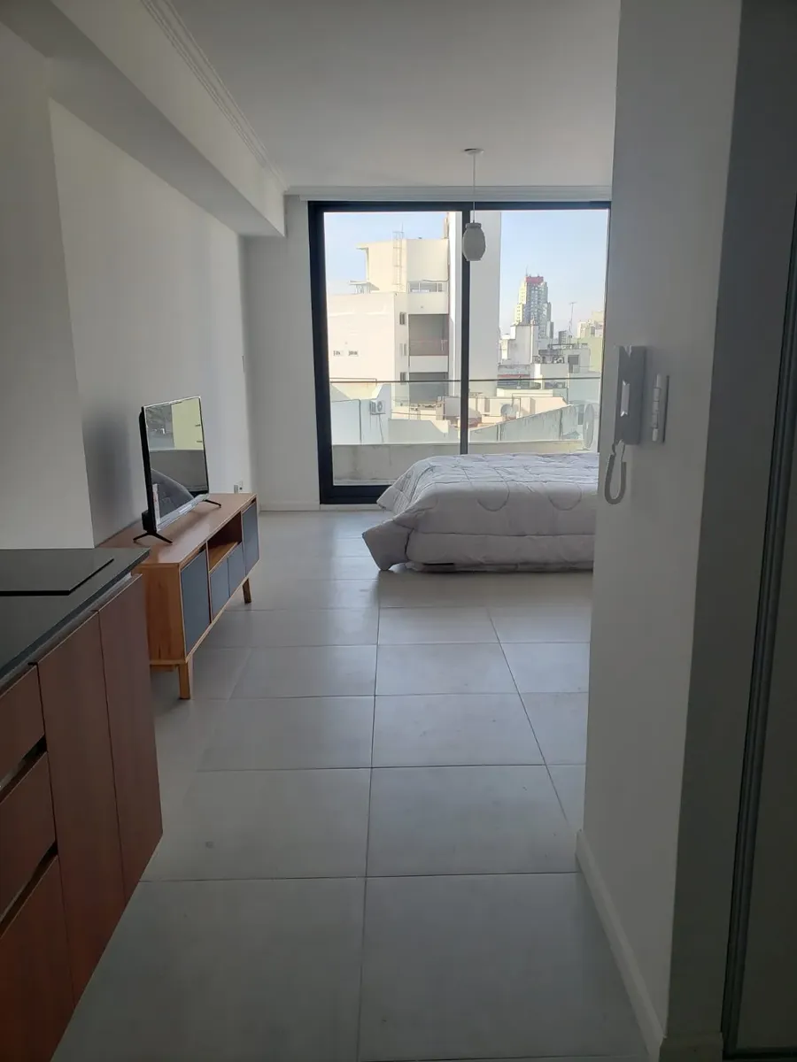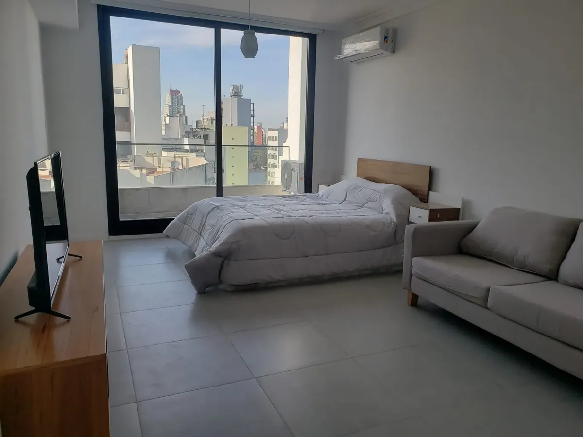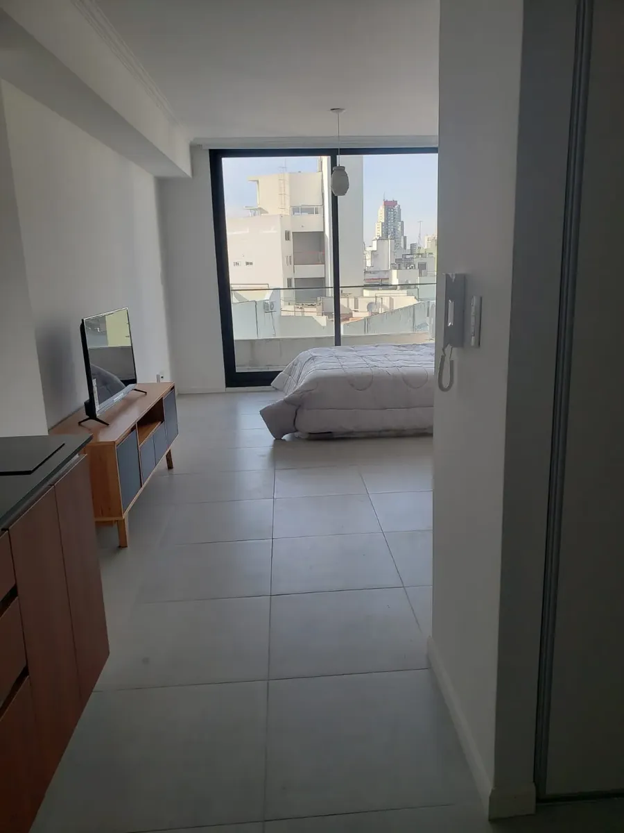Monoambiente de 35 m² en el 6° piso al contrafrente, amoblado. Cocina integrada con anafe eléctrico, hornito eléctrico, pava eléctrica y cafetera; aire acondicionado frío/calor. Incluye balcón con parrilla propia y placard. El edificio cuenta con laundry, SUM, pileta, gimnasio, terraza común, encargado y seguridad nocturna; contrato mínimo de 3 meses, depósito de 1 mes. Valor USD 600 mensuales + expensas (aprox. $190.000) + servicios (Edenor y wifi).