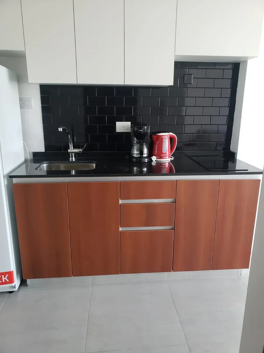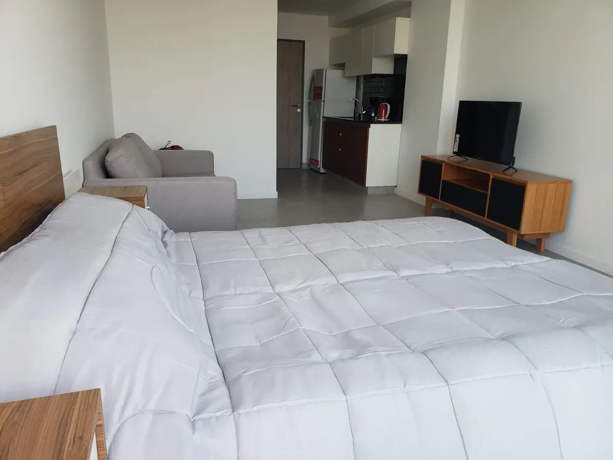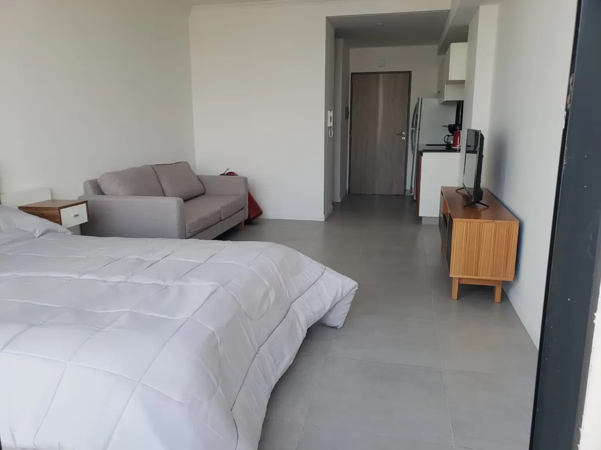 Monoambiente de 35 m² en el 6° piso al contrafrente, amoblado. Cocina integrada con anafe eléctrico, hornito eléctrico, pava eléctrica y cafetera; aire acondicionado frío/calor. Incluye balcón con parrilla propia y placard. El edificio cuenta con laundry, SUM, pileta, gimnasio, terraza común, encargado y seguridad nocturna; contrato mínimo de 3 meses, depósito de 1 mes. Valor USD 600 mensuales + expensas (aprox. $190.000) + servicios (Edenor y wifi).