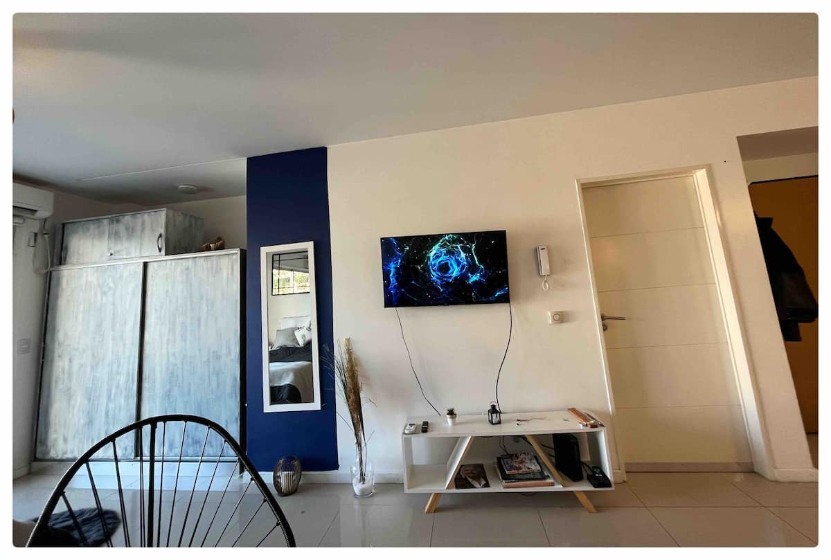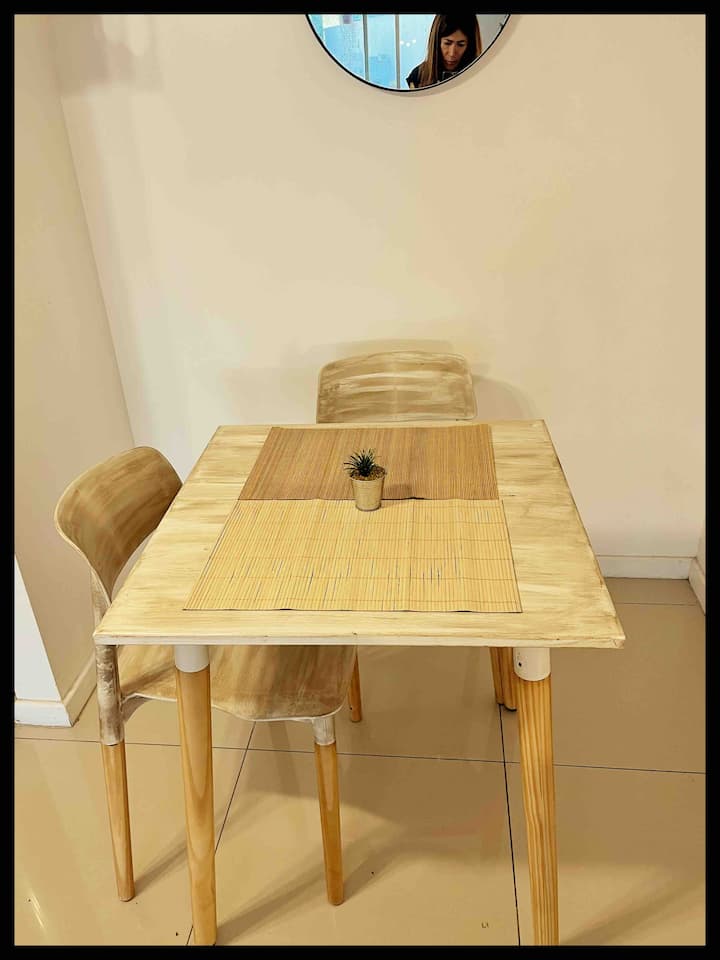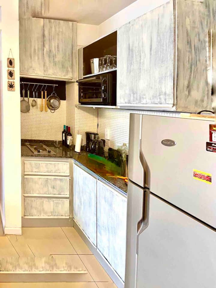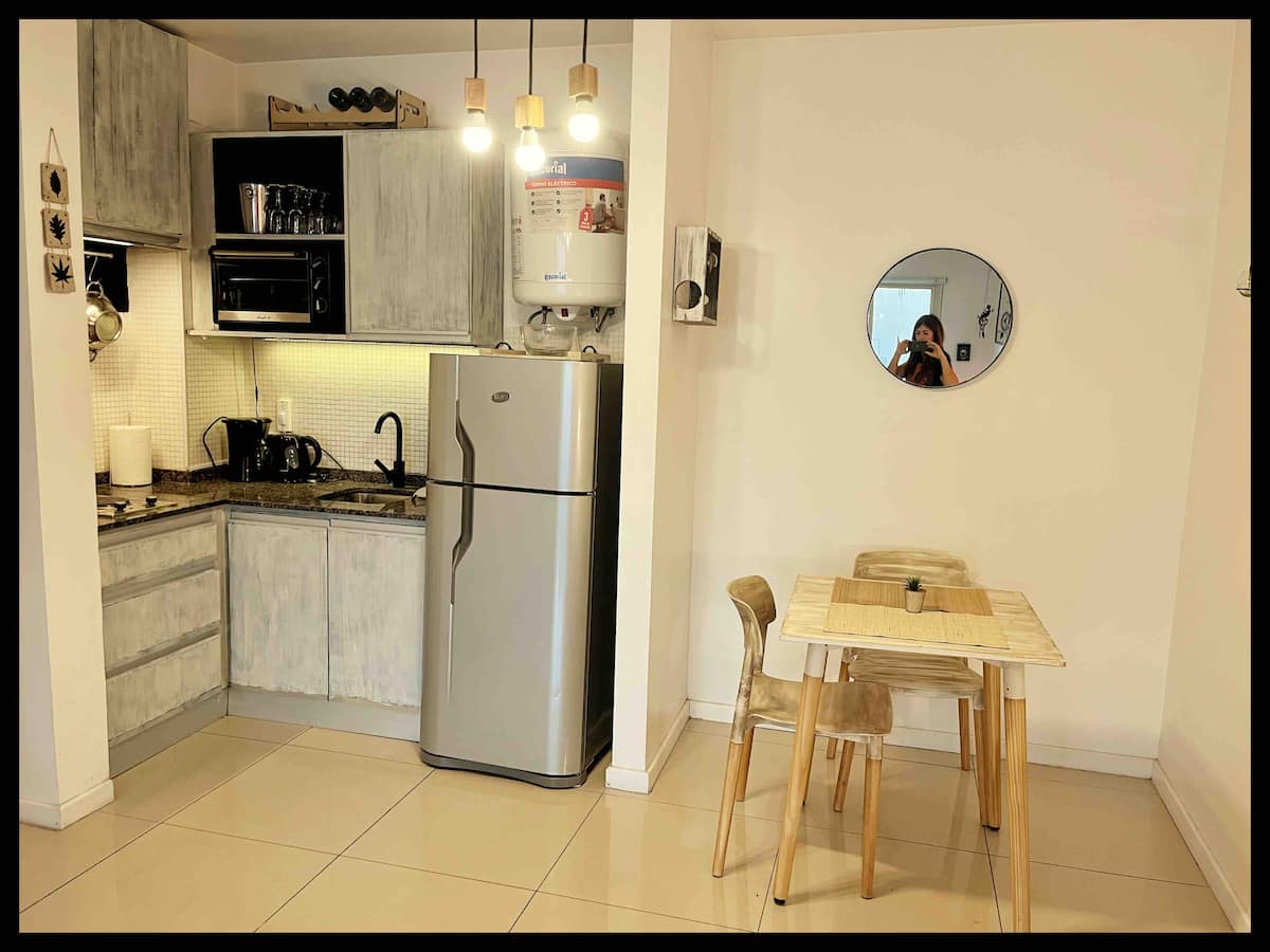 Monoambiente de 40 m² en el 11° piso de un edificio en Chacarita, con balcón al contrafrente y vista abierta. Cuenta con escritorio para home office, WiFi y Smart TV con Netflix y Youtube. Cocina con cocina eléctrica y horno, baño completo con vanitory y bañera, placard con cajonera y espacio de guardado. El edificio tiene terraza con solárium y parrilla, además de lavadero con 2 lavarropas y secarropa; en el acceso se compra el uso mediante fichas. El departamento funciona con electricidad y no