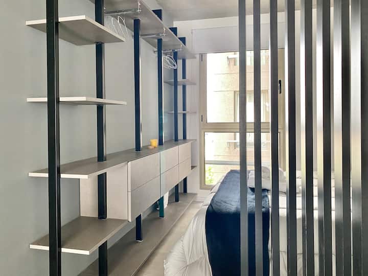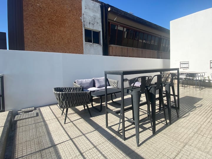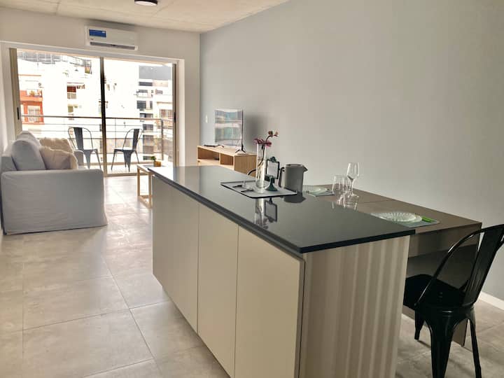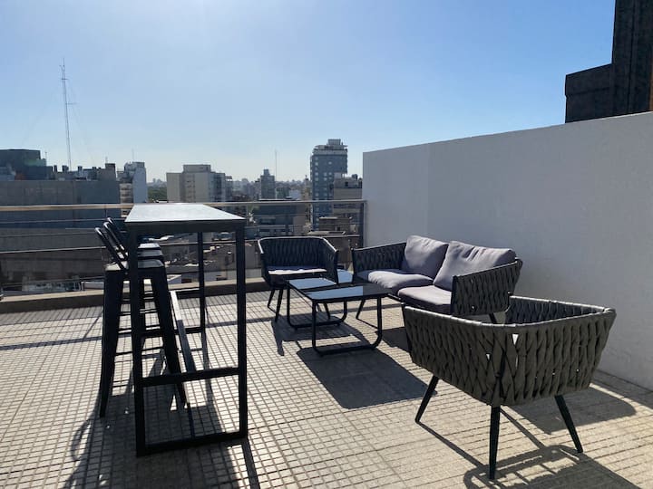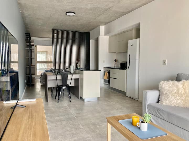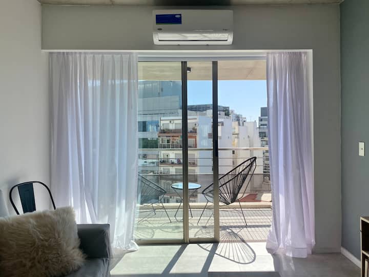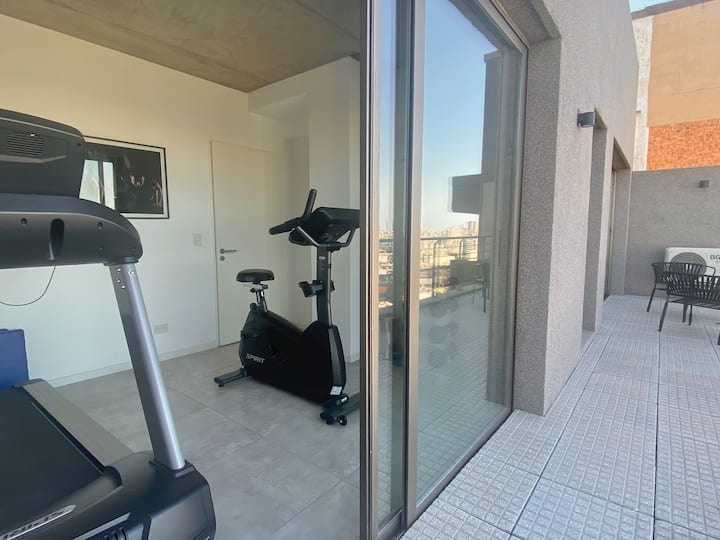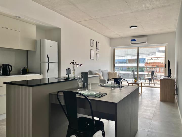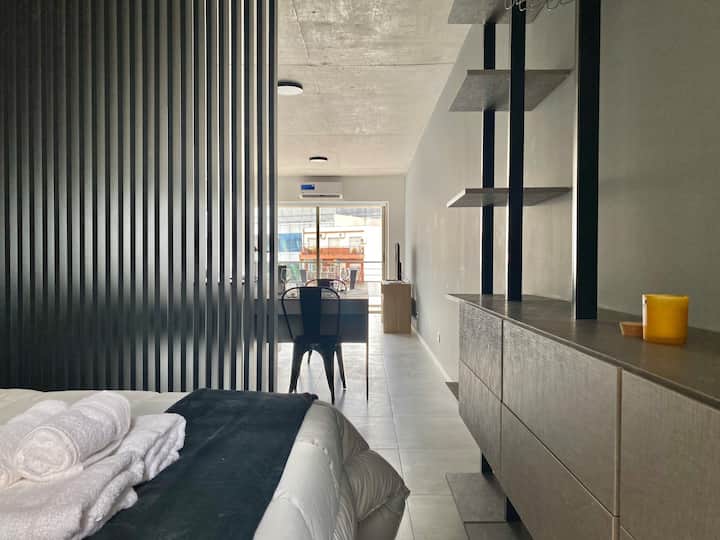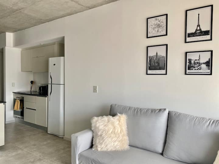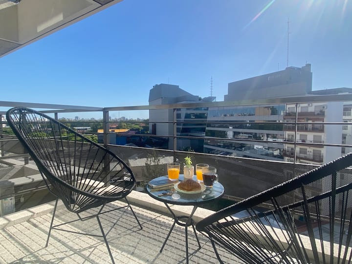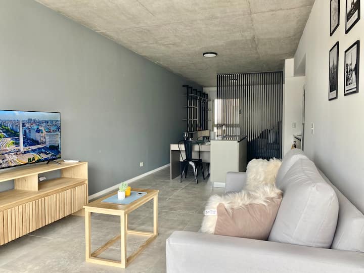 Departamento tipo estudio en Chacarita. Cuenta con espacios integrados y balcón exterior. Incluye coworking en el edificio y acceso a gimnasio y terraza con vista panorámica. Está a 3 cuadras de Movistar Arena y a 1 cuadra de una estación de subte.