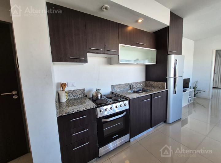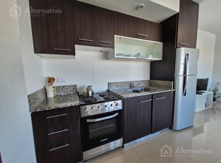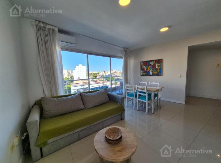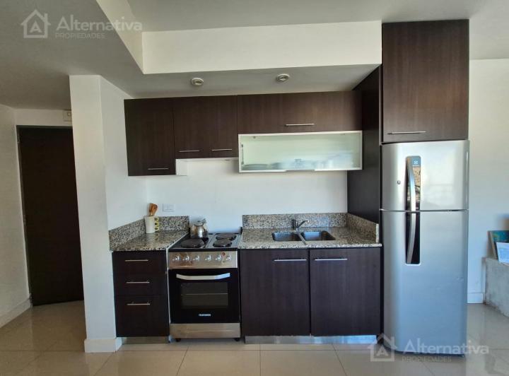 Departamento de 2 ambientes amoblado y equipado en Chacarita. Incluye living-comedor con espacio integrado, cocina integrada con electrodomésticos y vajilla, y baño completo. Tiene aire acondicionado en el living, placard y balcón; se entrega con sillón, cama, mesa, sillas y elementos necesarios para la estadía. El edificio cuenta con terraza, laundry, gimnasio, parrilla y SUM. El alquiler es por un mínimo de 1 mes y hasta 12 meses (renovable). El precio paquete incluye expensas y servicios, y s