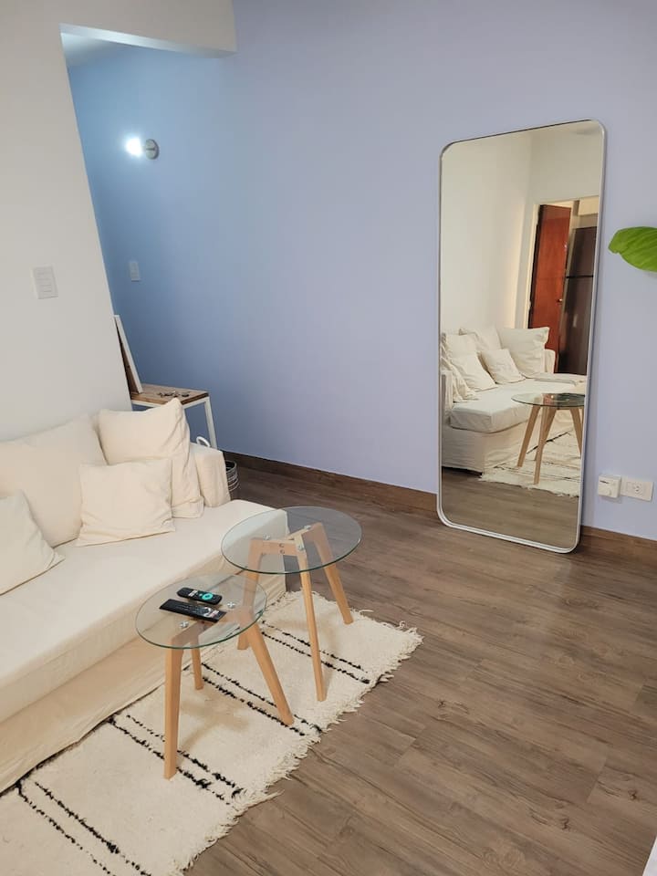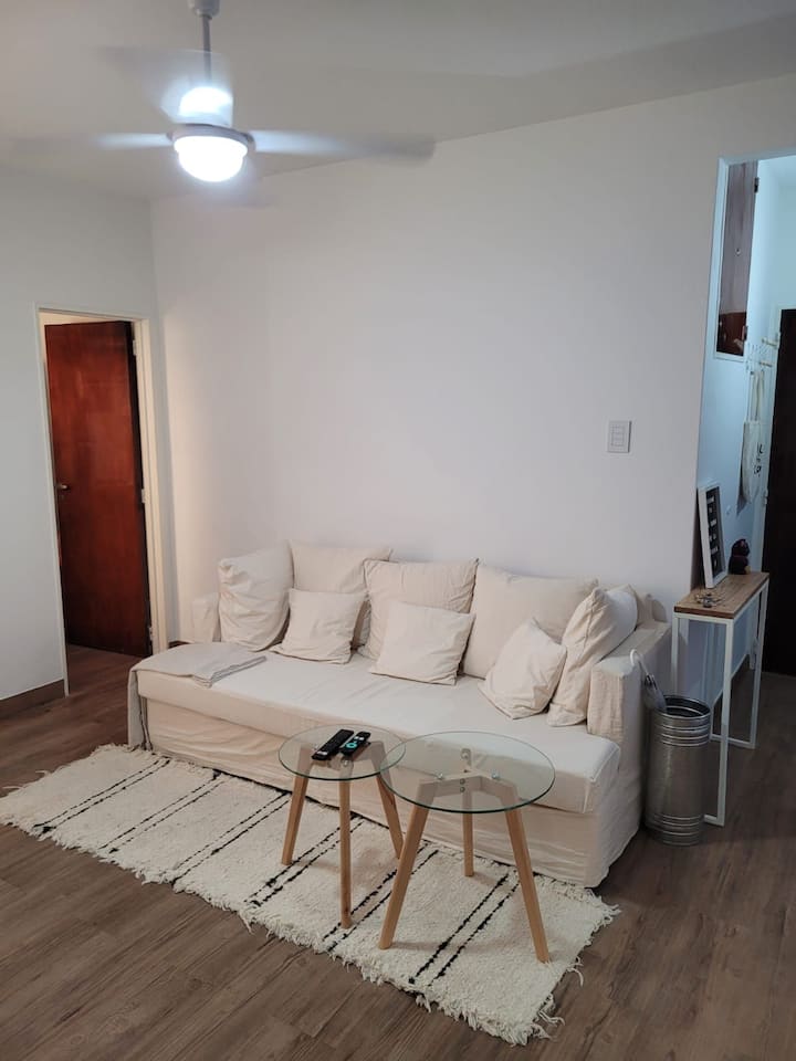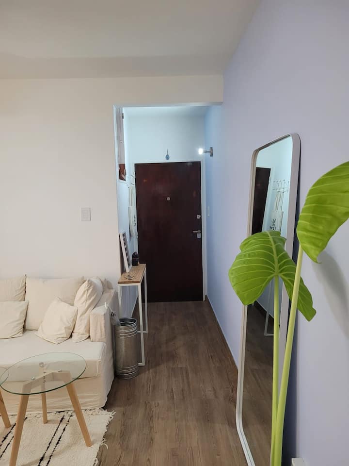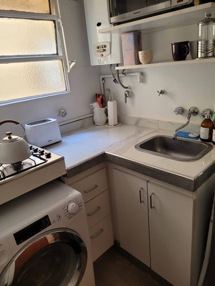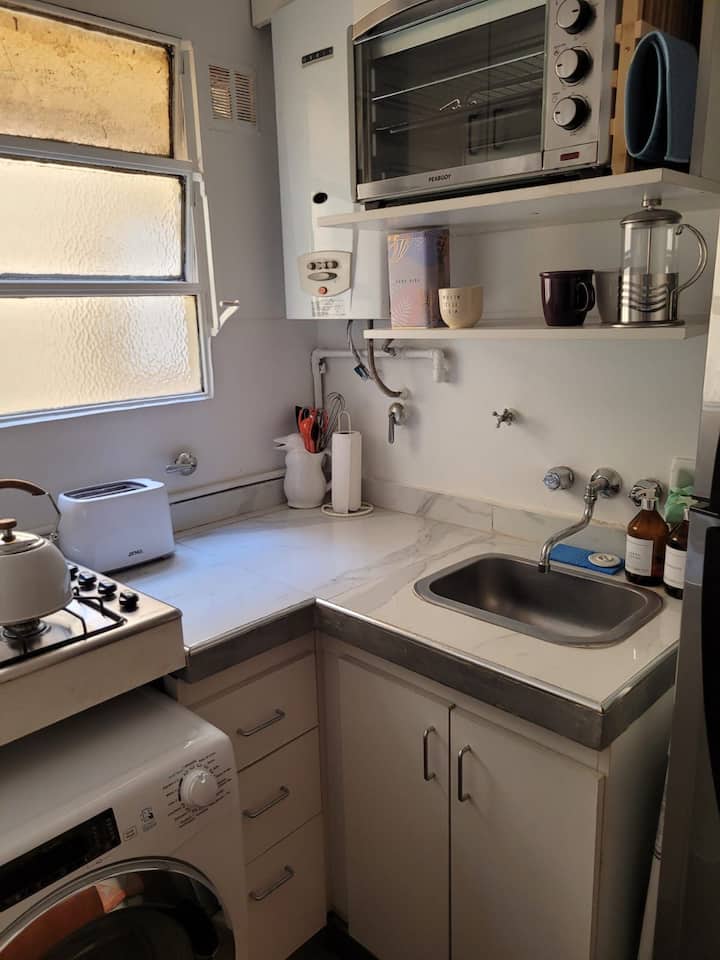 Departamento de 2 ambientes en Colegiales. El aviso indica que es silencioso y con buena iluminación. Está equipado con todas las comodidades mencionadas en la publicación.