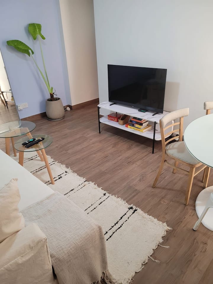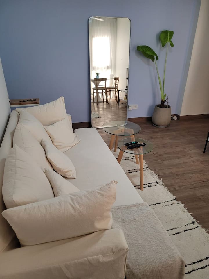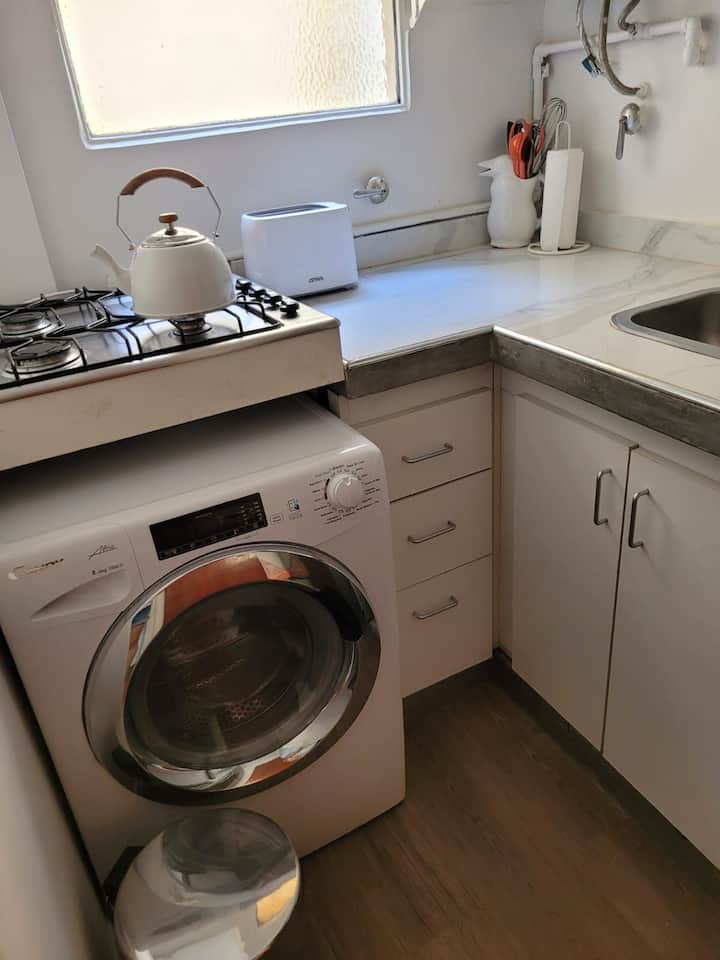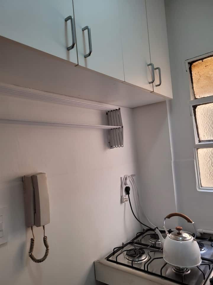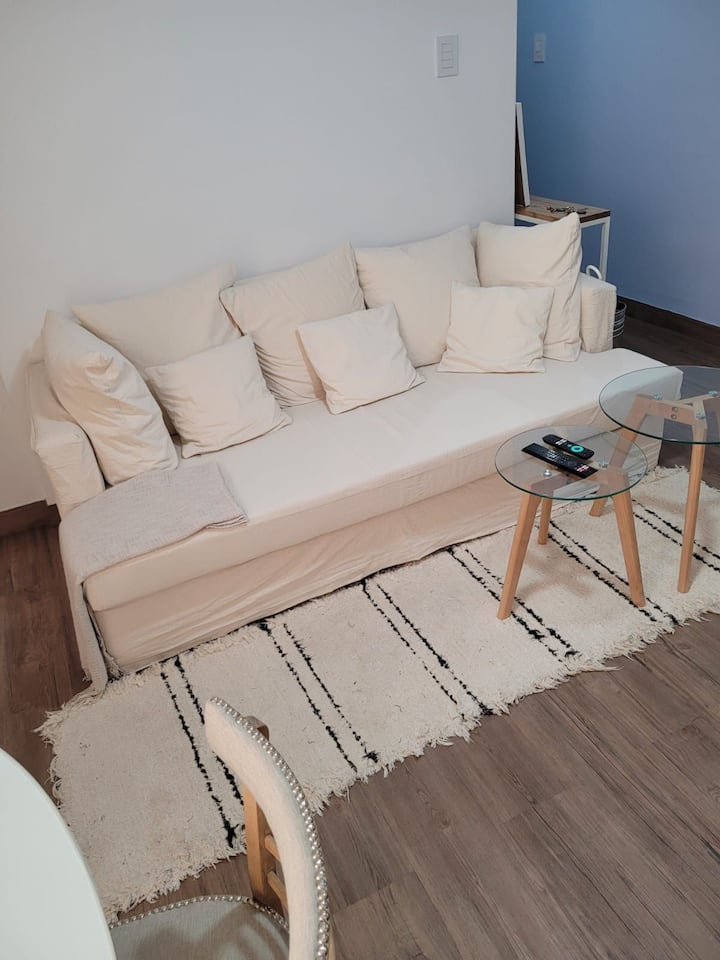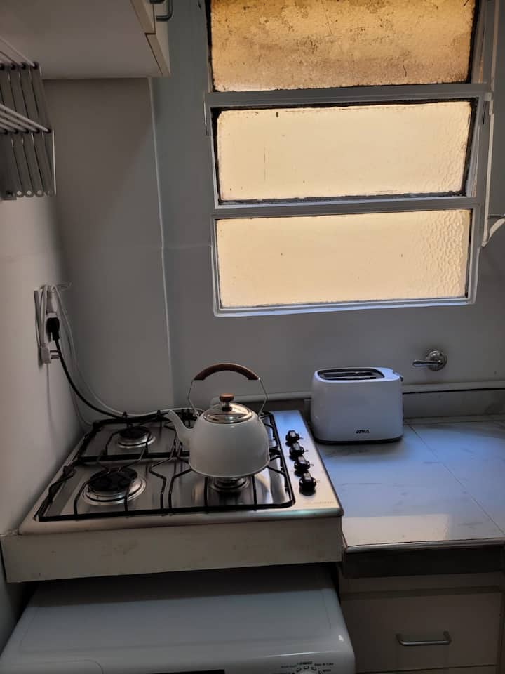 Departamento de 2 ambientes en Colegiales. El aviso indica que es silencioso y con buena iluminación. Está equipado con todas las comodidades mencionadas en la publicación.