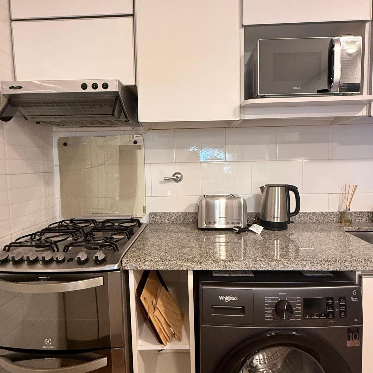 Departamento de 2 ambientes en Colegiales. Cuenta con 1 dormitorio, living comedor amplio con salida a balcón con vista, cocina integrada con isla y baño completo con bañera. Está totalmente equipado e incluye vajilla completa y electrodomésticos, lavadora automática y ropa blanca. La calefacción es por aire acondicionado frío-calor en todos los ambientes, con cerradura electrónica de ingreso y encargada en el edificio. El valor publicado incluye expensas, Aysa y ABL; no incluye energía eléctric