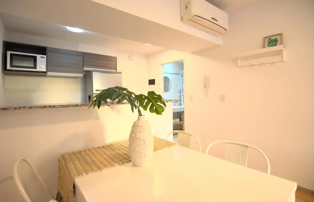 Departamento monoambiente en alquiler temporario en Colegiales, a 1 cuadra de Belgrano. Cuenta con balcón propio y está completamente equipado, con lavarropas, Internet y TV. El edificio dispone de pileta, parrilla y SUM; el alquiler incluye todos los gastos.