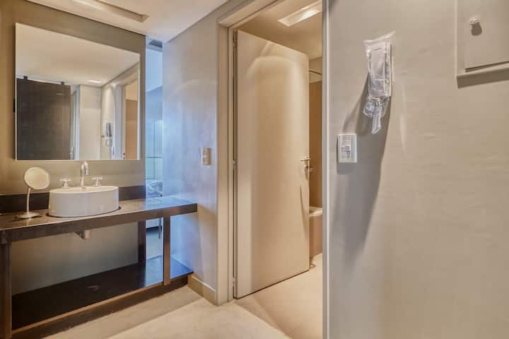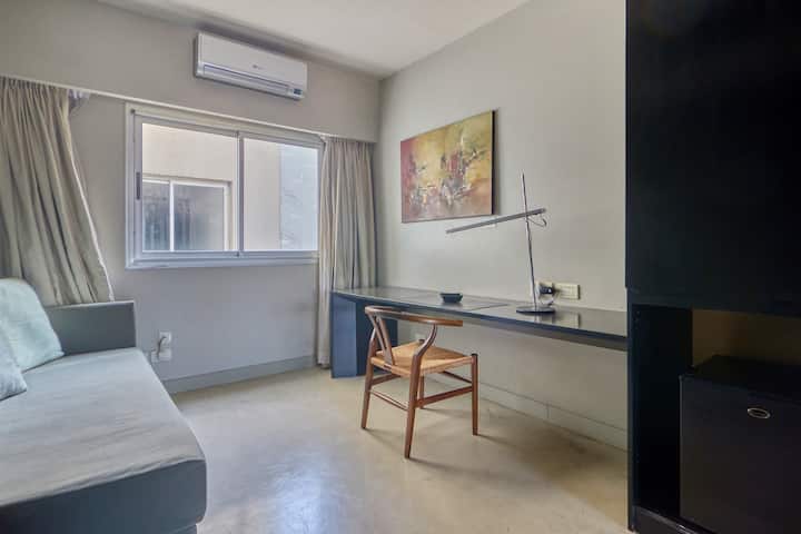 Departamento de 1 dormitorio. Está equipado con cocina a gas y 1 baño completo. Incluye un espacio de trabajo. Está ubicado en Palermo.