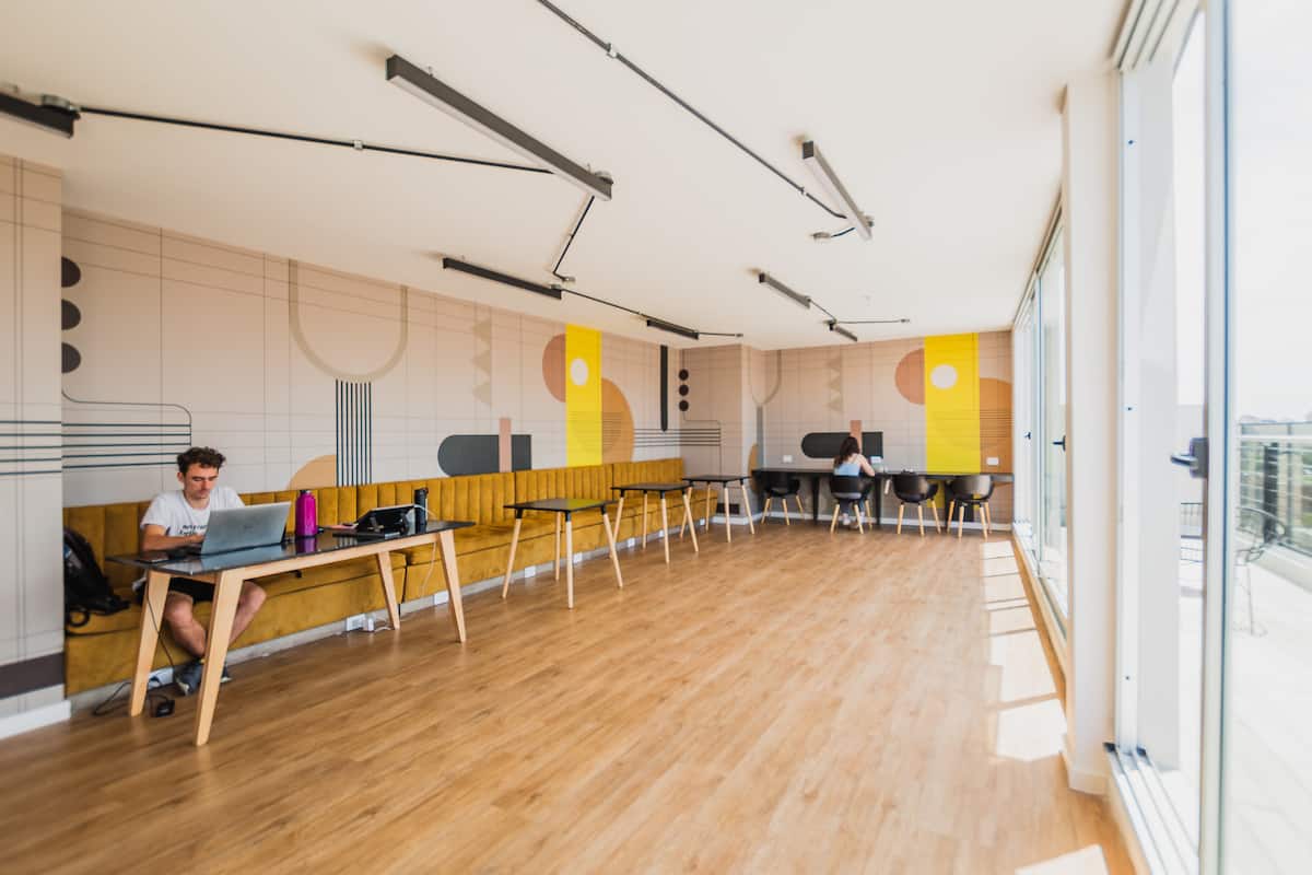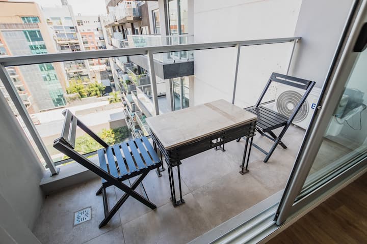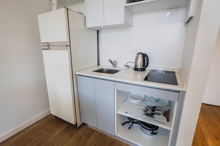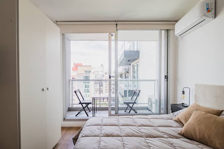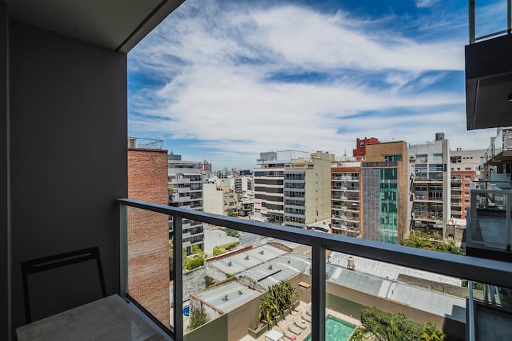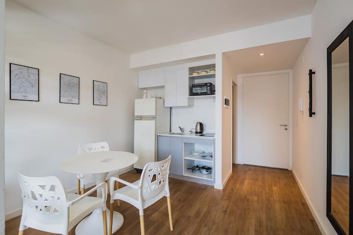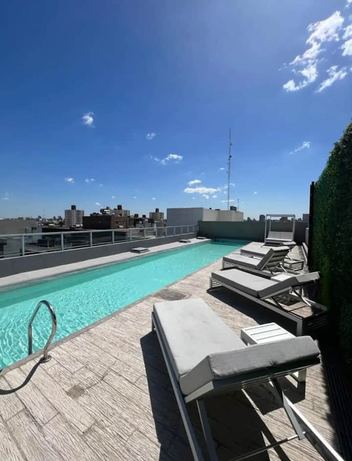 Monoambiente de 1 ambiente en Colegiales. El departamento cuenta con cocina equipada y baño. El edificio dispone de parrilla, SUM, pileta, gimnasio y área de trabajo, con seguridad 24 horas. El acceso a la pileta funciona durante la temporada de verano y hay laundry con costo adicional. El espacio de trabajo y el uso de parrillas requieren reserva previa.