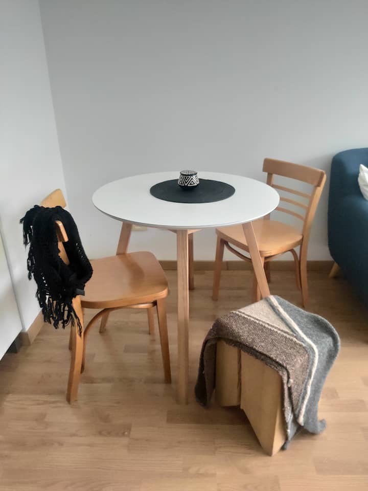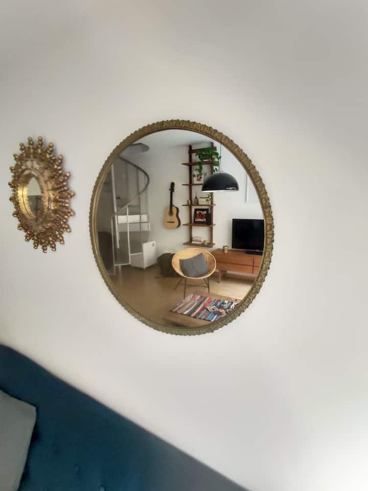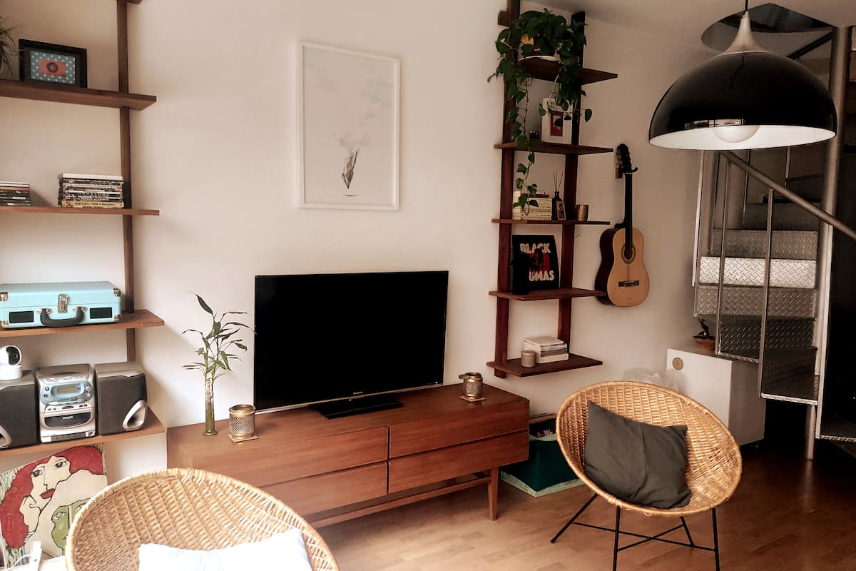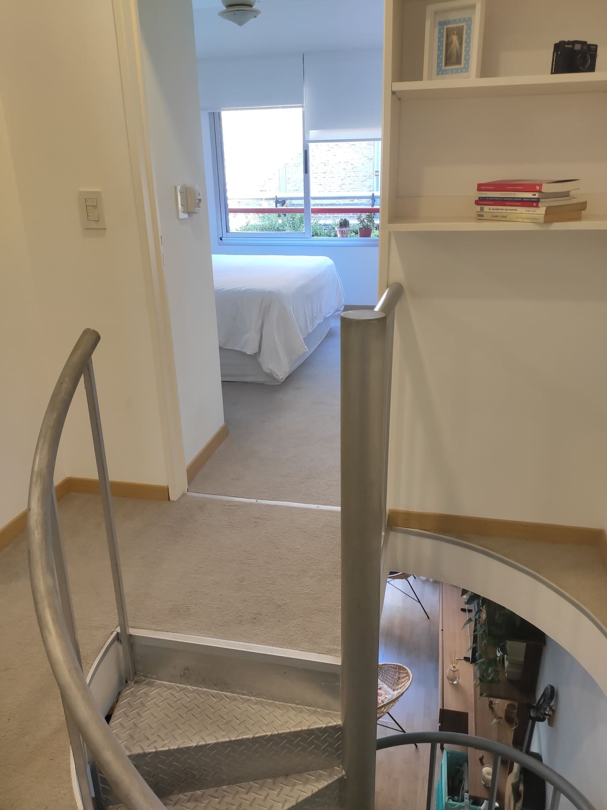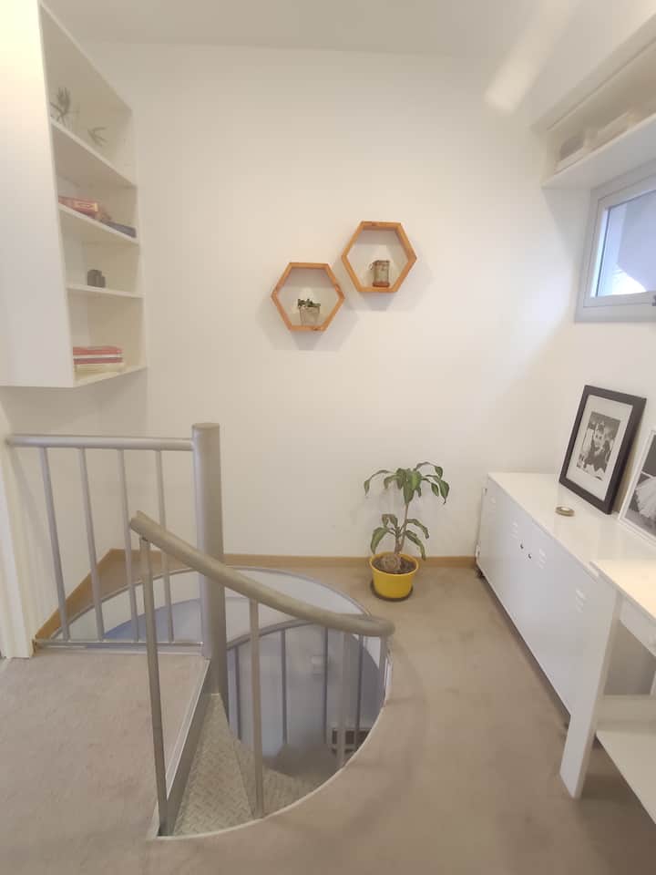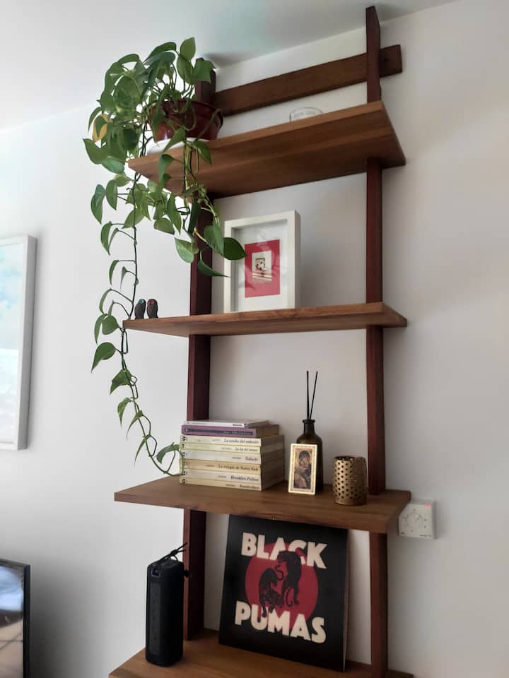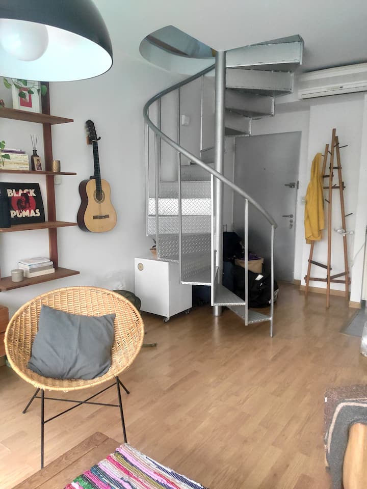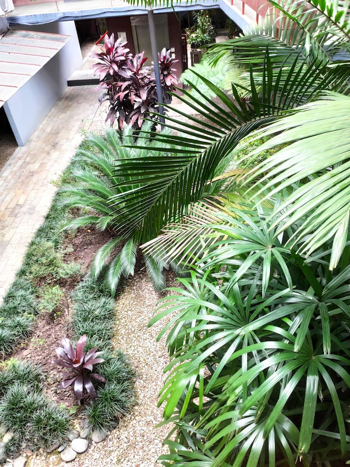 Duplex de 2 niveles de 43 m² en Colegiales. Se encuentra en el 1er piso y da al jardín del complejo, con buena iluminación y ambiente tranquilo. En la planta baja hay cocina integrada y living-comedor con ventana al jardín; una escalera interna lleva al dormitorio principal con vista al jardín, un área de descanso y baño. Incluye conexión a internet de 300 Mbps por WiFi o cable UTP, con sistemas de respaldo, y el edificio cuenta con jardín grande, lavandería, pileta y parrilla.