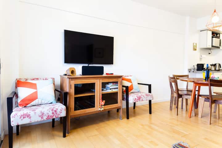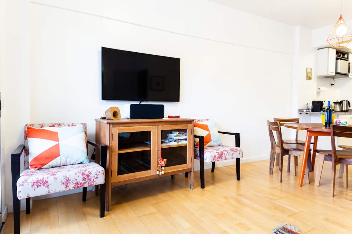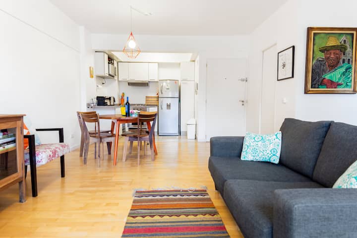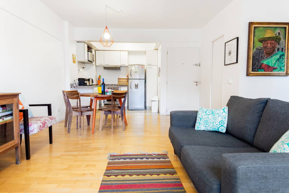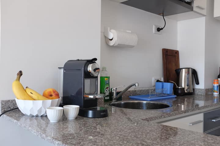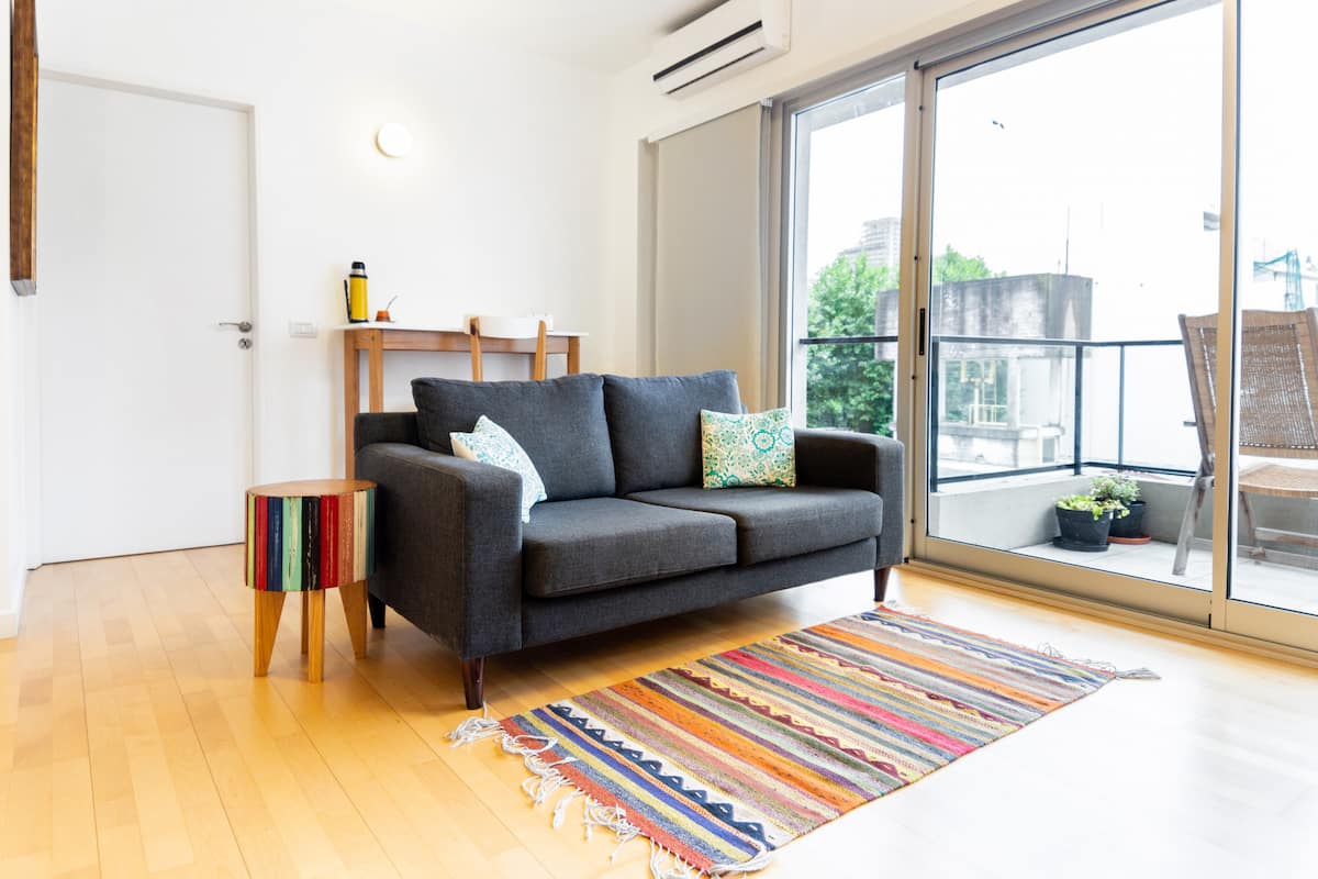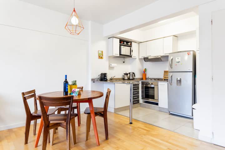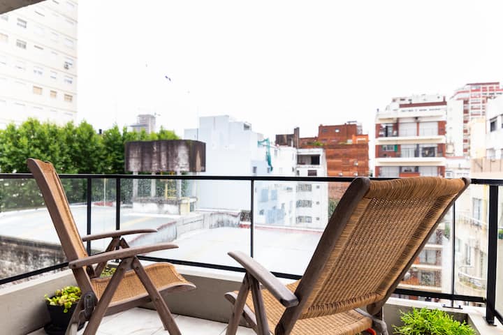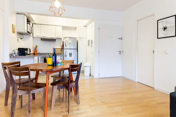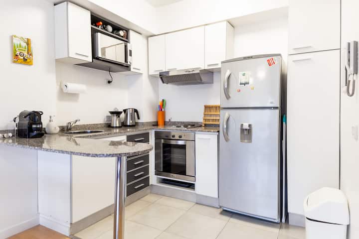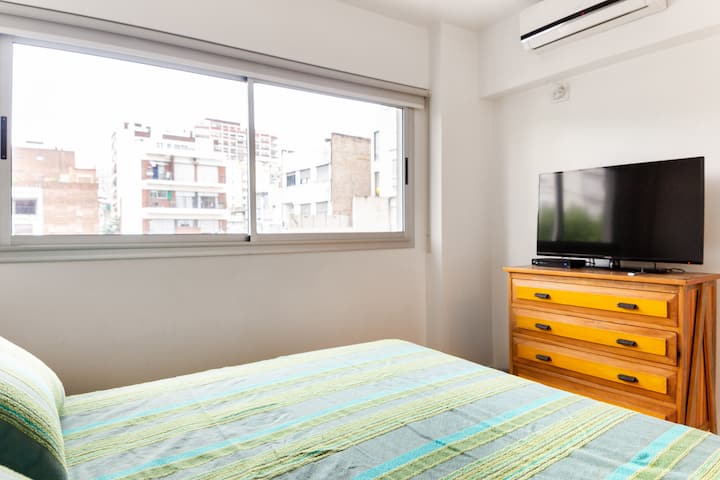 Departamento de 1 dormitorio de 52 m² en un edificio nuevo, con balcón privado. Cuenta con 1 baño completo y 1 toilette. Dispone de cocina equipada, 2 aires acondicionados split y calefacción por losa radiante. Incluye TV con cable en cada ambiente y WiFi privado de 100 Mbps.