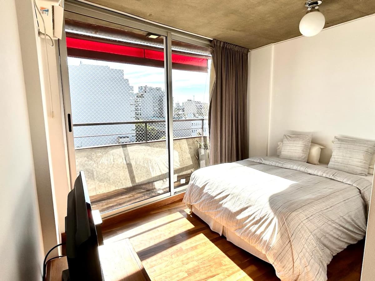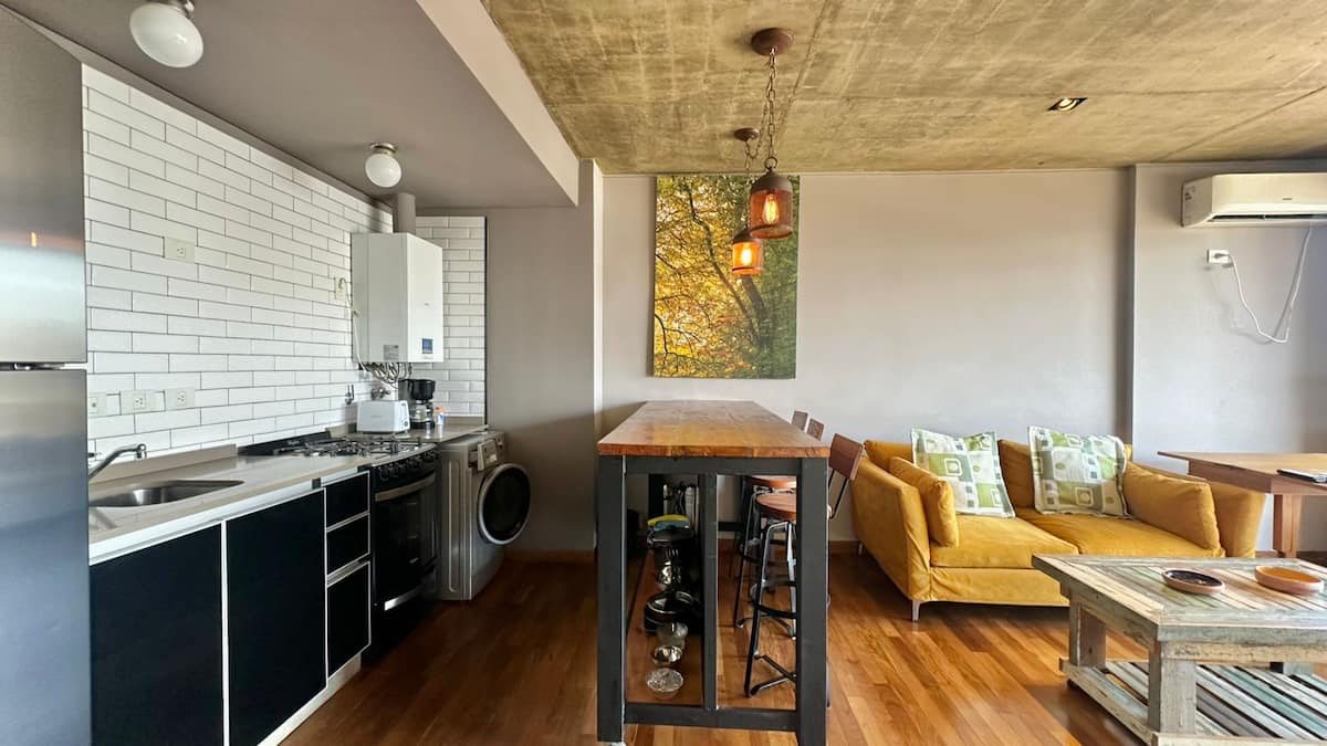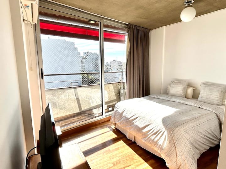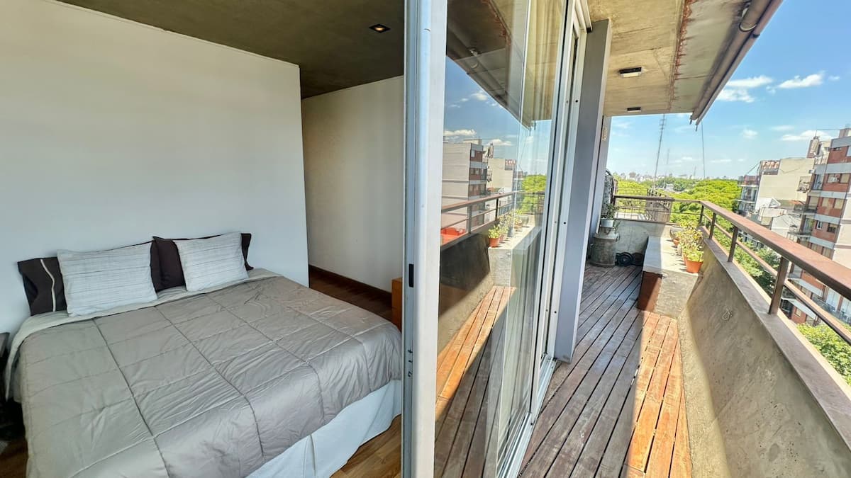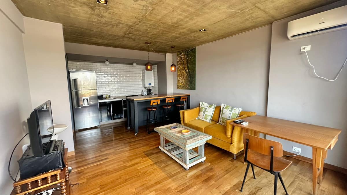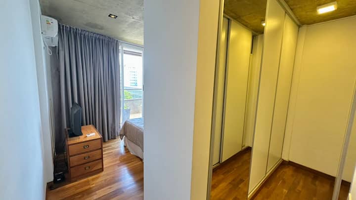 Departamento de 1 dormitorio en el edificio BE Newbery, con balcón. Incluye vestidor, 2 Smart TVs y cocina equipada, con cocina a gas y horno, heladera y lavarropas. El edificio cuenta con piscina en la terraza, SUM, gimnasio, parrilla, laundry y seguridad 24/7, además de Wi-Fi y TV por cable; también se informan agua, electricidad y gas con tope de consumo incluidos. Tiene calefacción por piso radiante y A/C frío-calor.