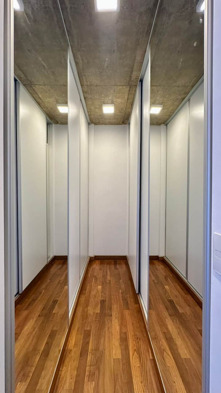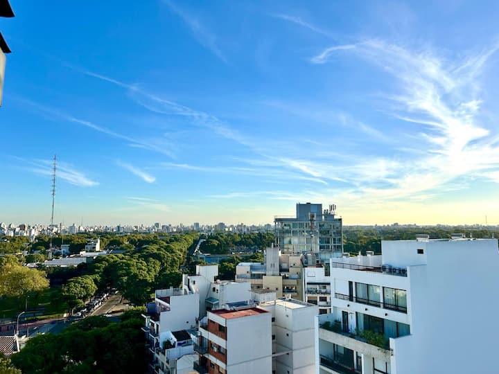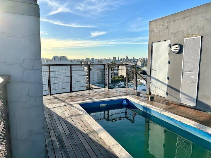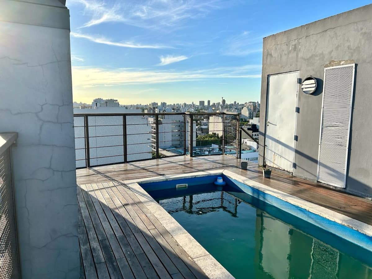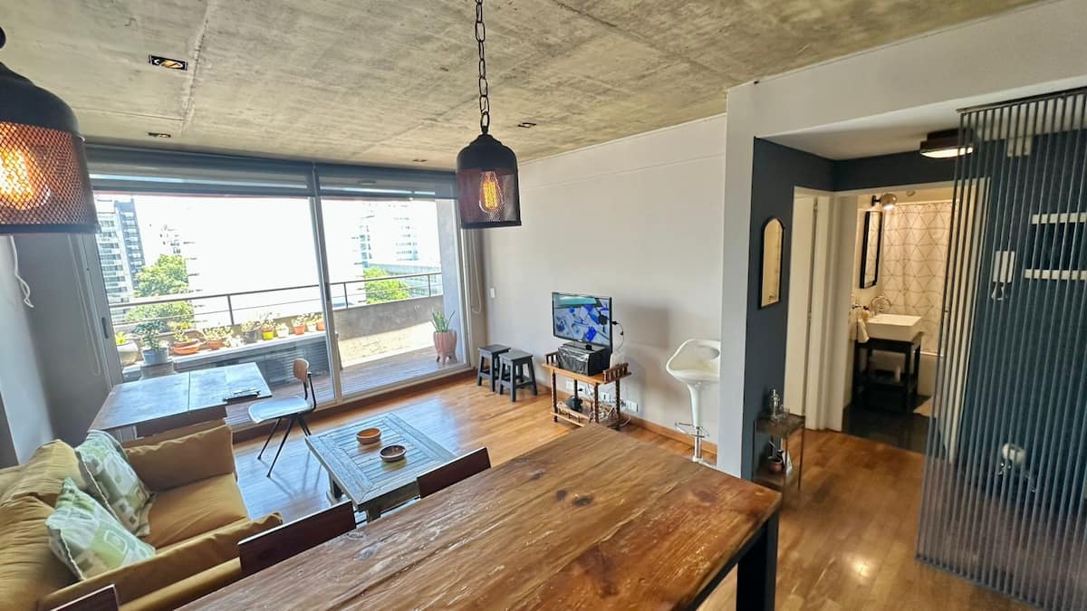 Departamento de 1 dormitorio en el edificio BE Newbery, con balcón. Incluye vestidor, 2 Smart TVs y cocina equipada, con cocina a gas y horno, heladera y lavarropas. El edificio cuenta con piscina en la terraza, SUM, gimnasio, parrilla, laundry y seguridad 24/7, además de Wi-Fi y TV por cable; también se informan agua, electricidad y gas con tope de consumo incluidos. Tiene calefacción por piso radiante y A/C frío-calor.