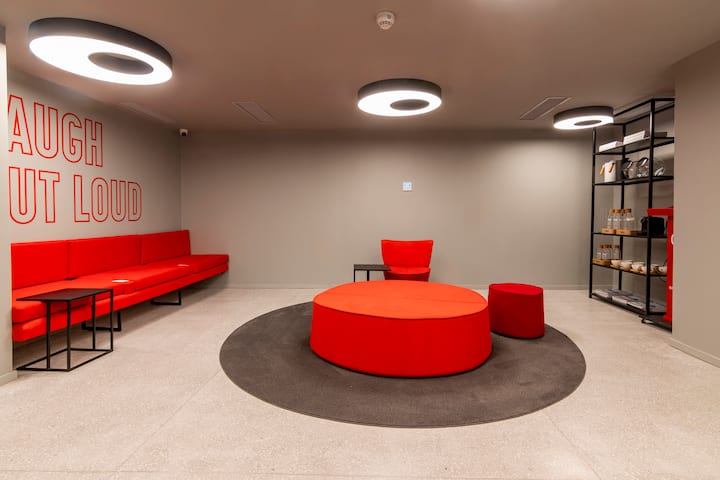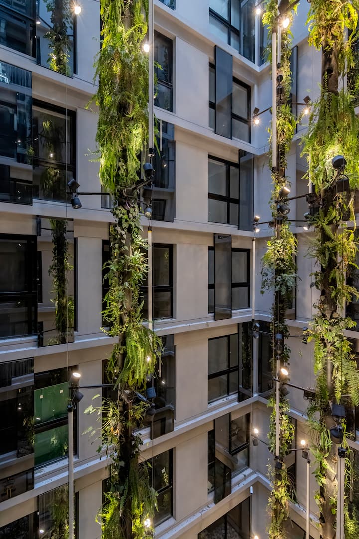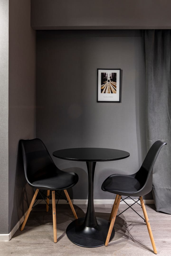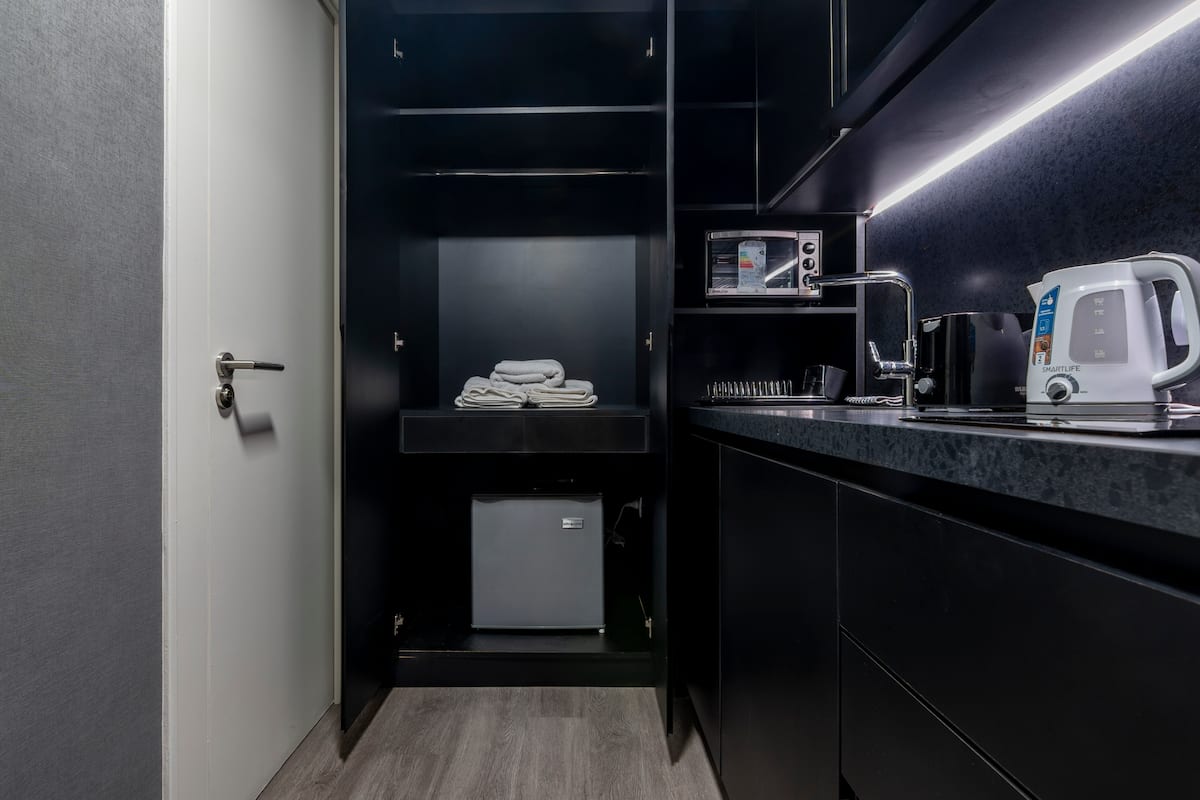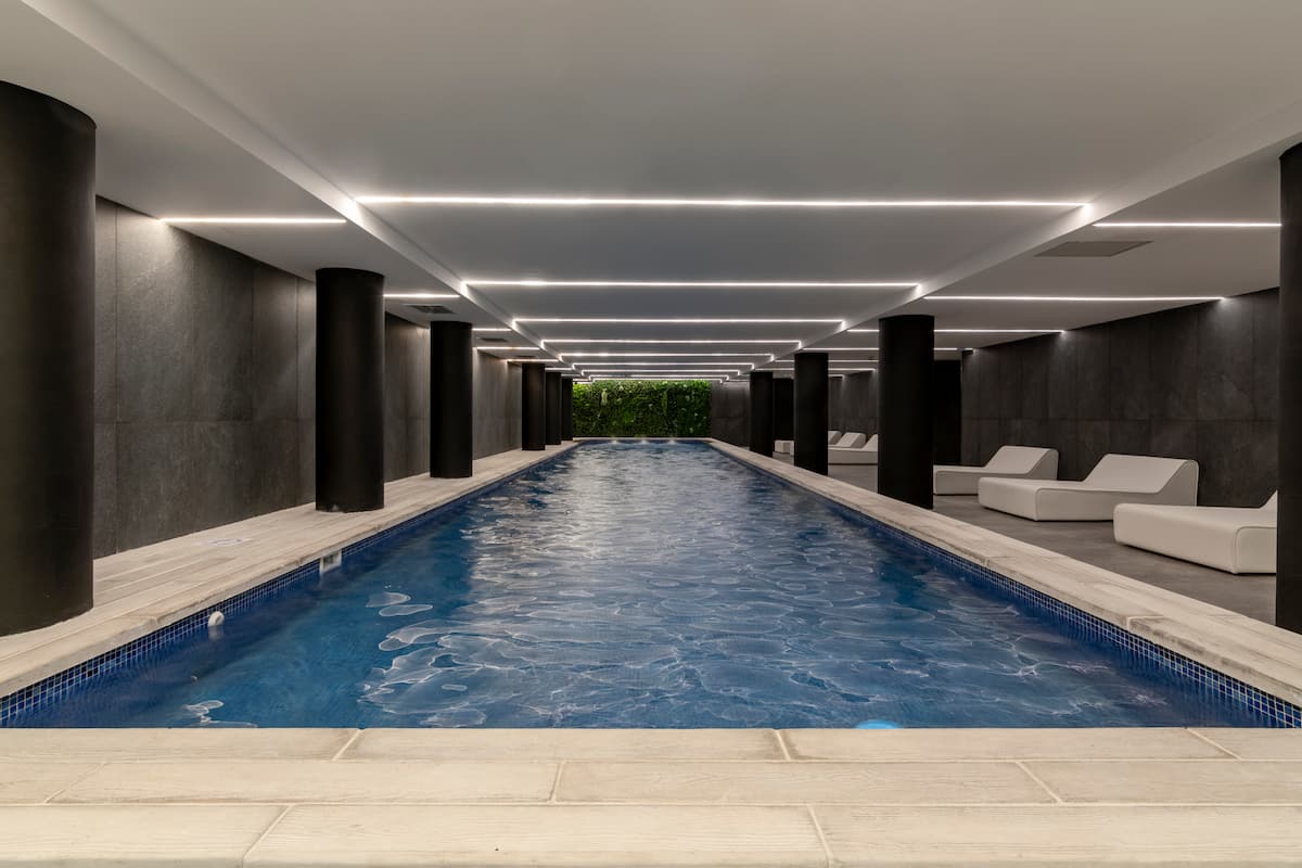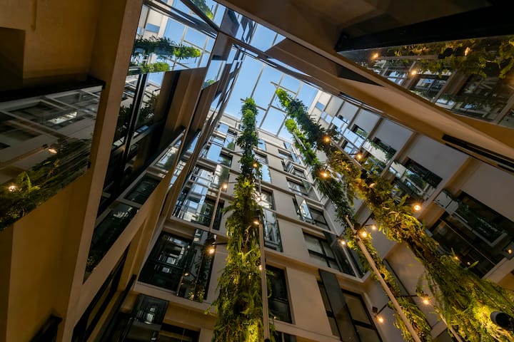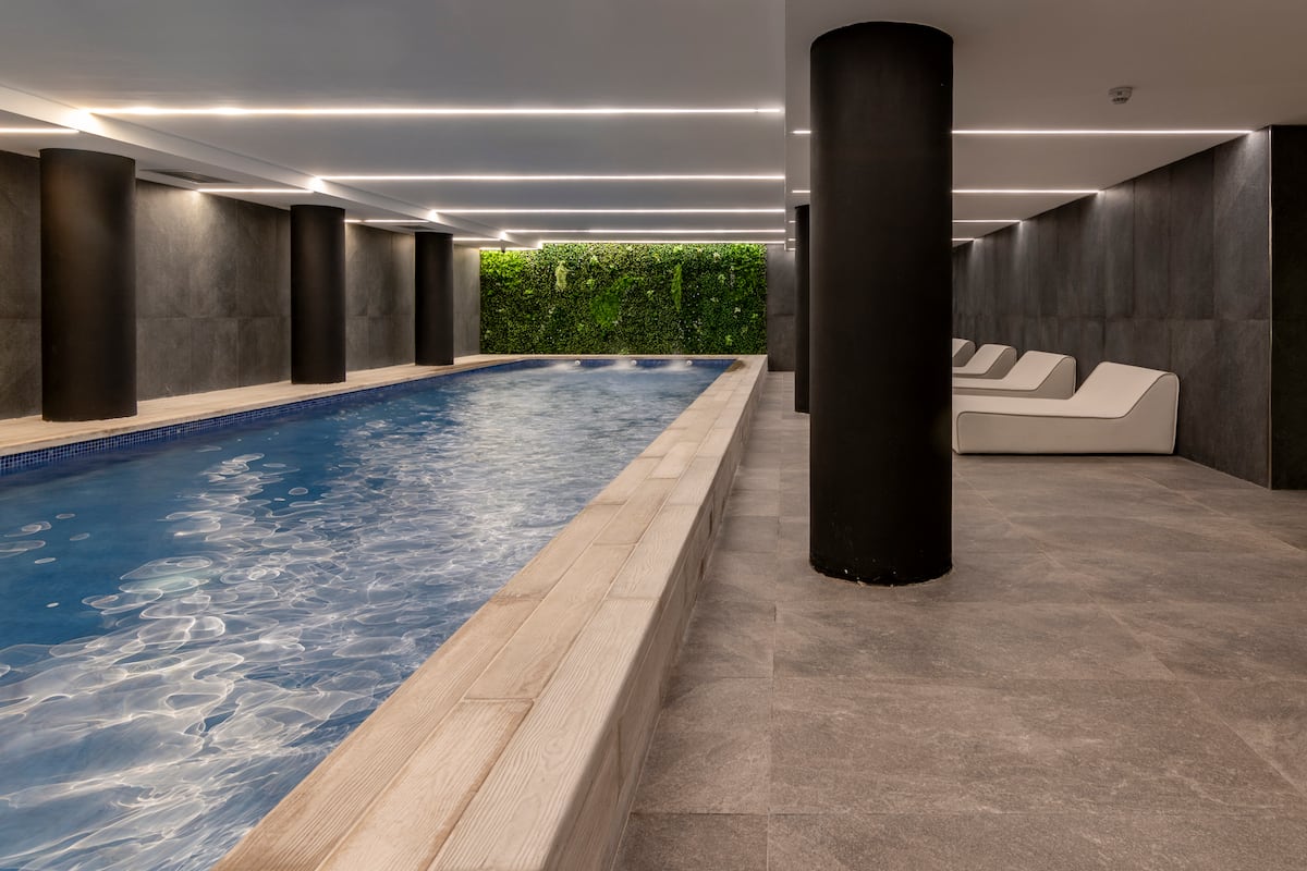 Departamento tipo monoambiente en Colegiales. Incluye TV, Wi‑Fi, cerradura digital, toallas y ropa de cama, además de cafetera, tostadora, pava eléctrica y minibar. Cuenta con horno eléctrico. El edificio dispone de seguridad 24 horas, gimnasio (500 m²), pileta climatizada y pileta al aire libre, solárium, parrillas, SUM, espacio de masajes y espacio de yoga.