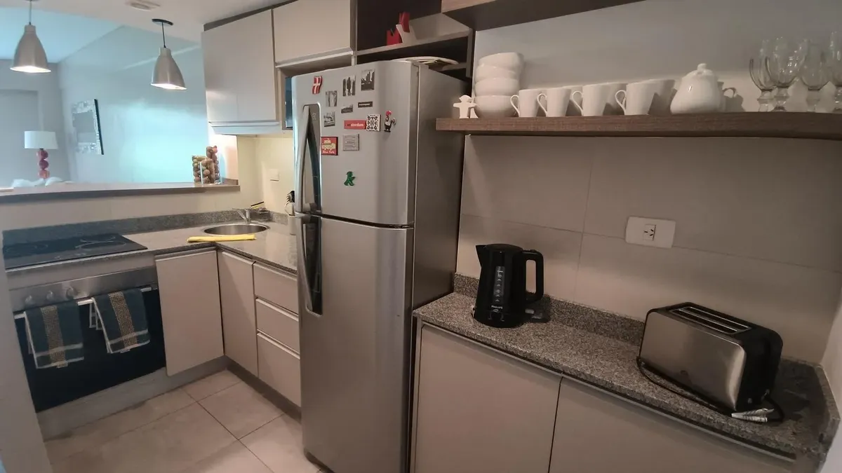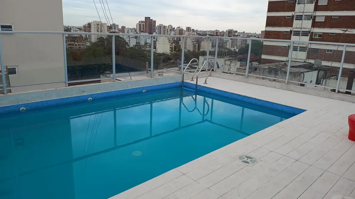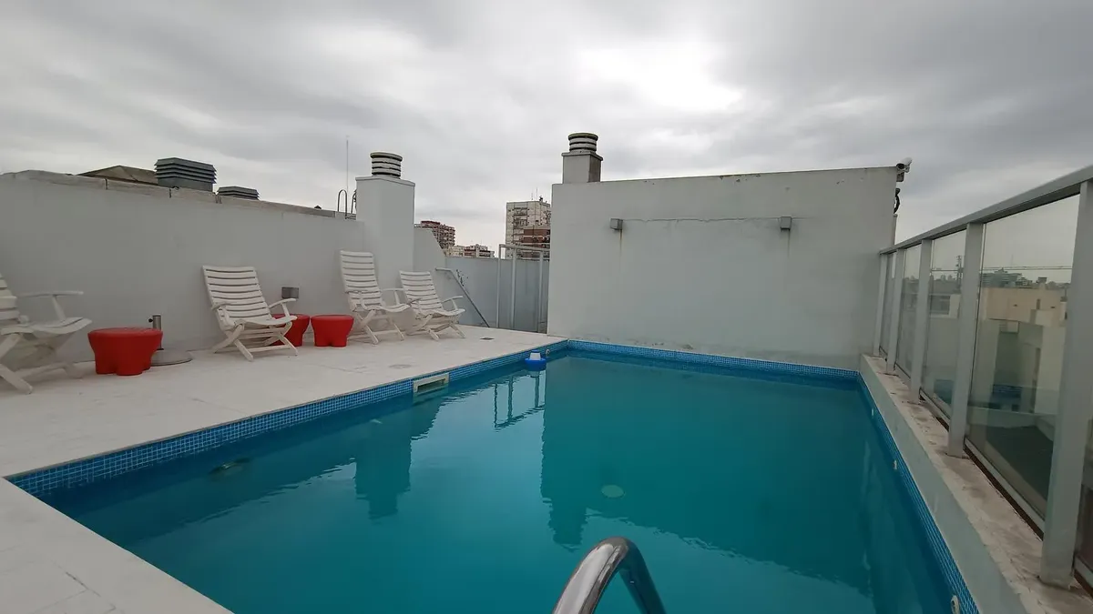 Departamento de 2 ambientes amoblado, con balcón al frente y al contrafrente. Living comedor al frente con salida a balcón; cocina americana equipada; toilette de recepción. Dormitorio en suite con placard espejado y salida a un segundo balcón al contrafrente. El edificio cuenta con pileta, solarium, SUM con parrilla y laundry. El alquiler incluye expensas y ABL, con WiFi y TV; la luz no está incluida. No se aceptan mascotas. Contrato mínimo de 6 meses, 1 mes de depósito en garantía, ingresos co