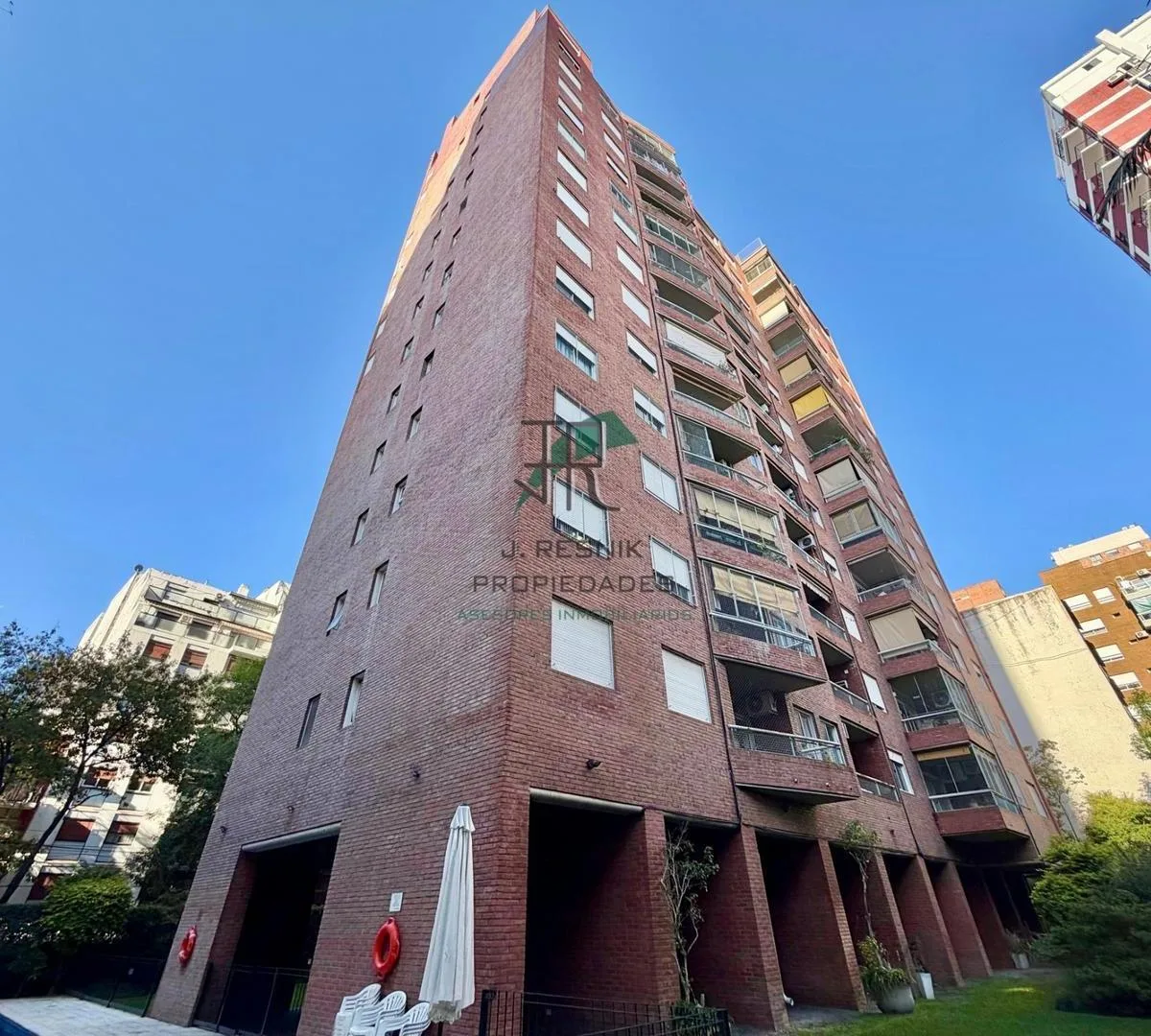 Departamento de 2 ambientes de 1 dormitorio en un piso 13, con balcón y excelente vista. Incluye cocina separada con lavadero, baño completo con bañera y cochera fija cubierta. El edificio cuenta con seguridad 24 horas, 2 piscinas, jardín de uso común y sala de juegos.