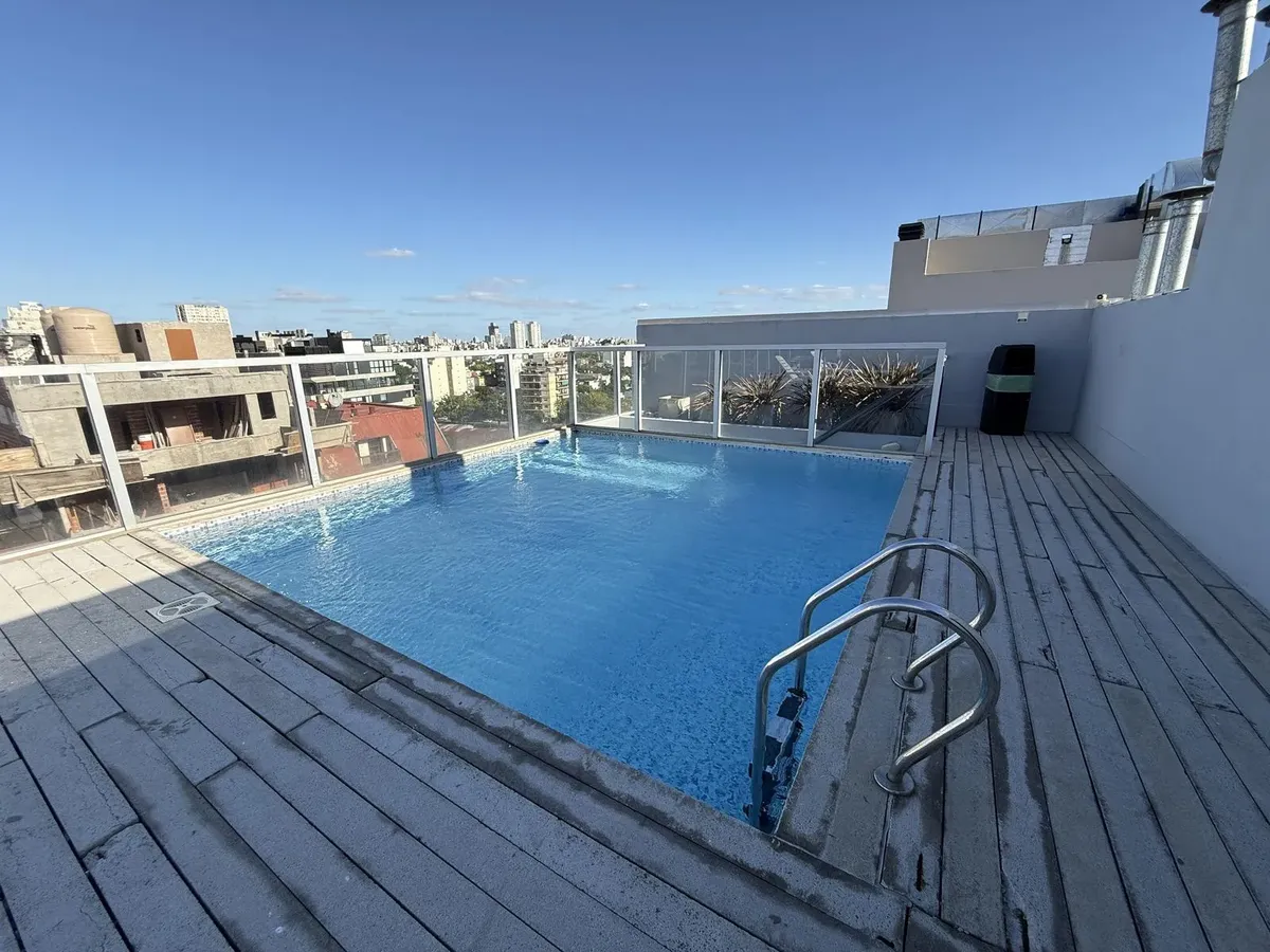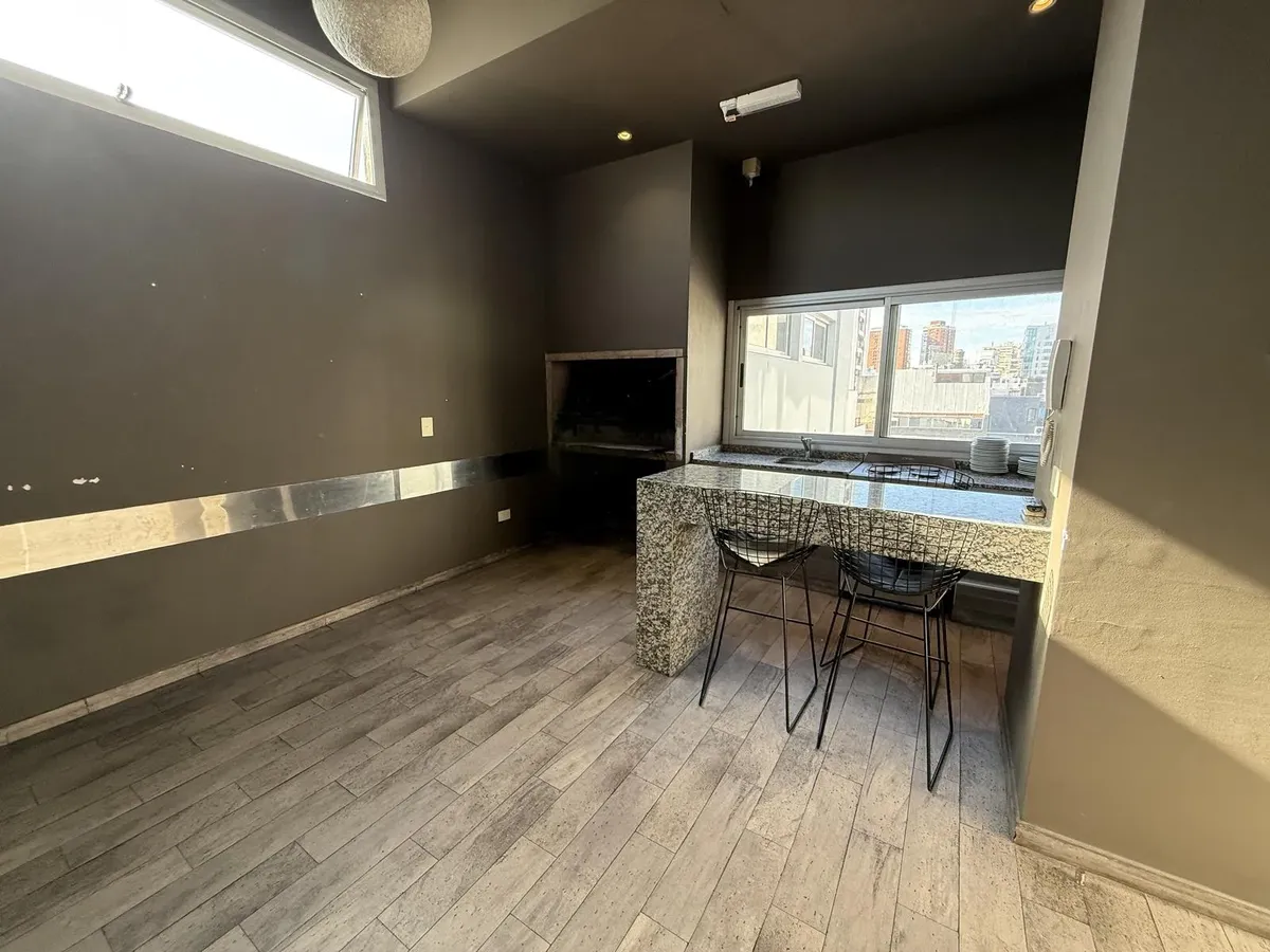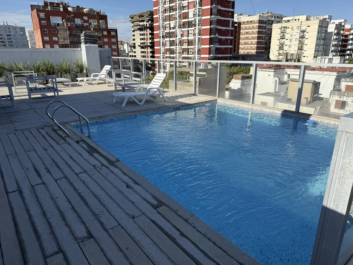 Departamento de 2 ambientes de 50,8 m² totales en un 2do piso, con balcón y vista abierta al contrafrente (pulmón de manzana). Cocina separada con lavadero incorporado, 1 dormitorio con placard y 1 baño completo. Tiene aire acondicionado en living comedor y dormitorio. El edificio, de 9 años de antigüedad, cuenta con piscina, solárium y SUM con parrilla. Incluye baulera. Contrato por 2 años con ajustes trimestrales por ICL, mes de adelanto y mes de depósito, garantía propietaria, Finaer o Garant
