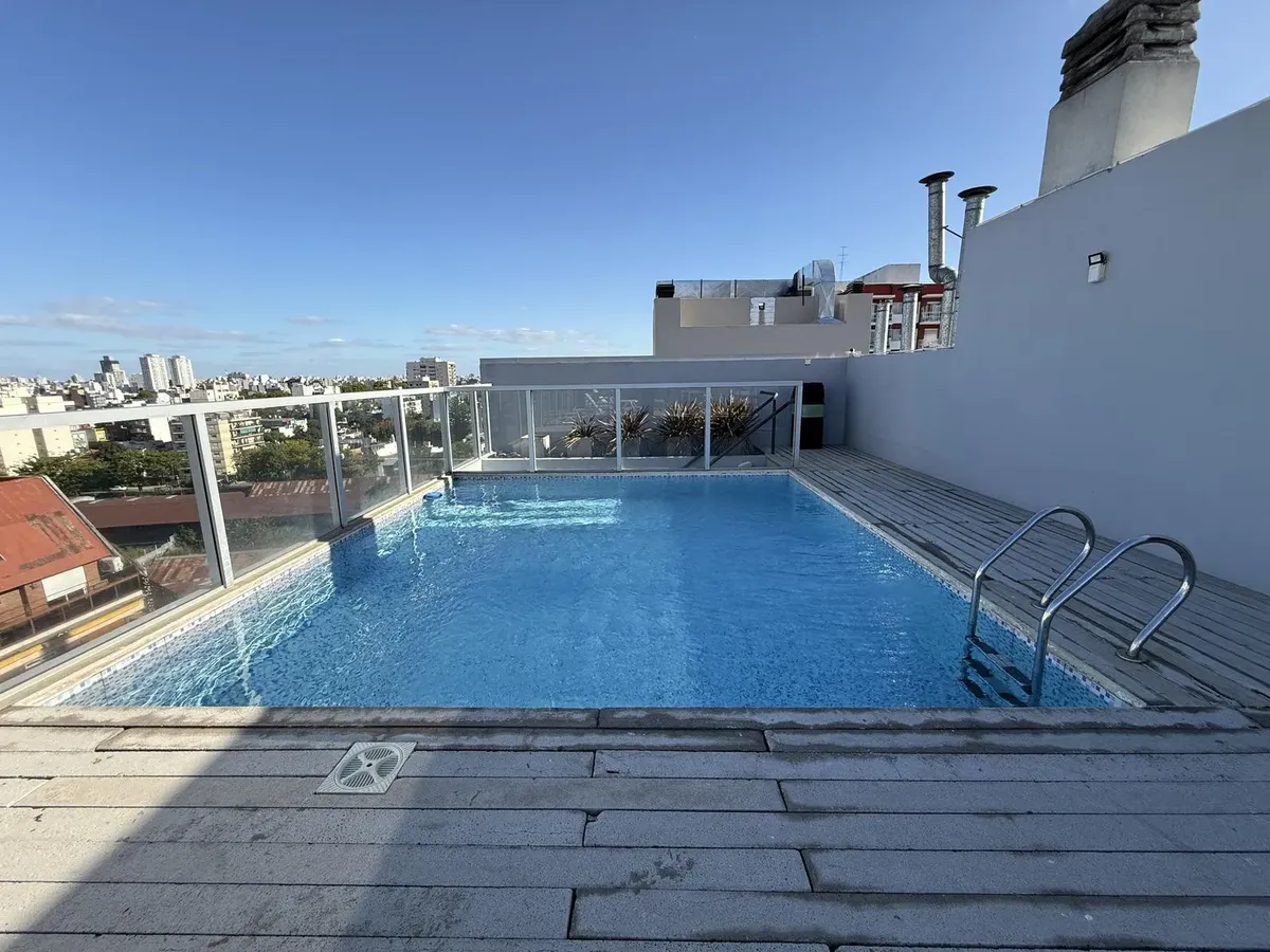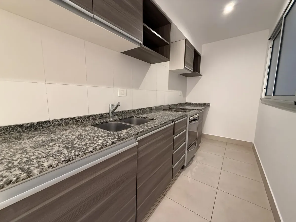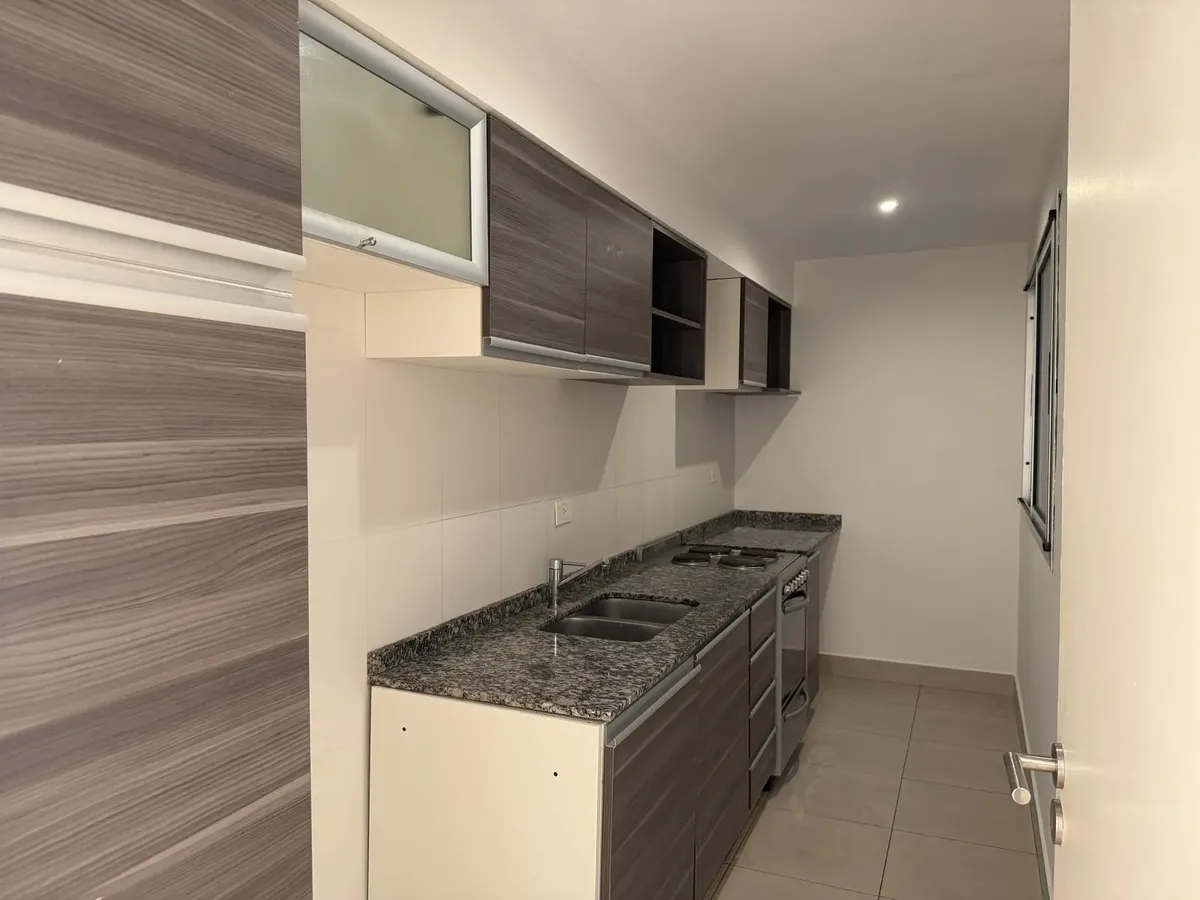 Departamento de 2 ambientes de 50,8 m² totales en un 2do piso, con balcón y vista abierta al contrafrente (pulmón de manzana). Cocina separada con lavadero incorporado, 1 dormitorio con placard y 1 baño completo. Tiene aire acondicionado en living comedor y dormitorio. El edificio, de 9 años de antigüedad, cuenta con piscina, solárium y SUM con parrilla. Incluye baulera. Contrato por 2 años con ajustes trimestrales por ICL, mes de adelanto y mes de depósito, garantía propietaria, Finaer o Garant