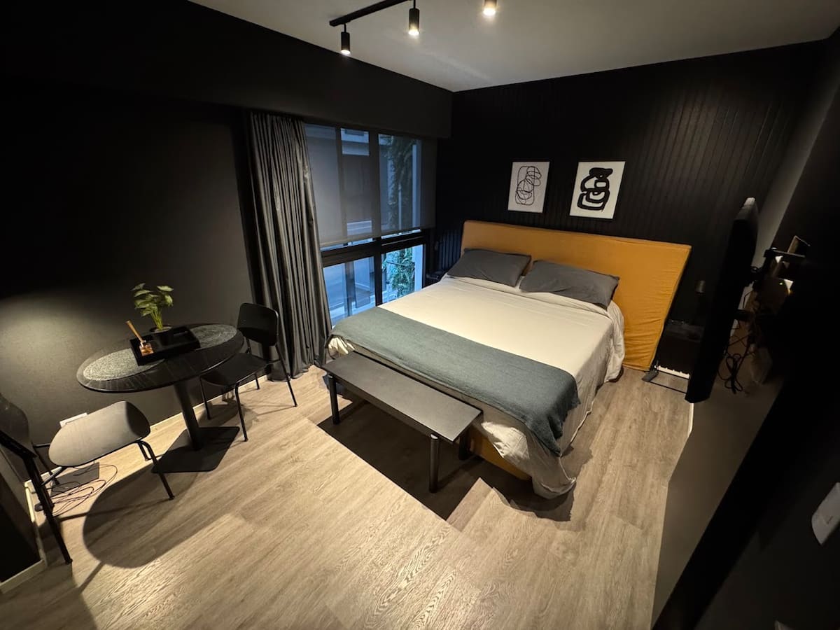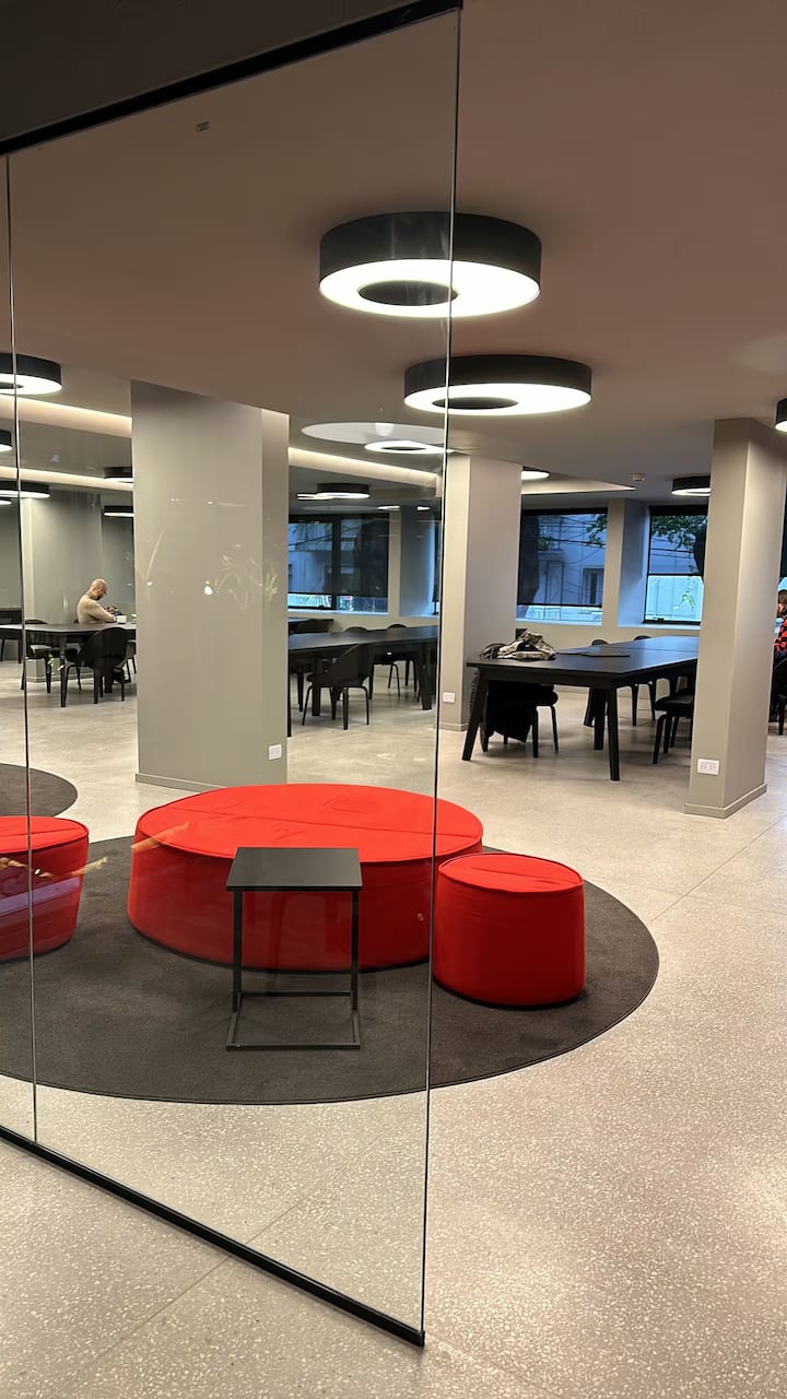 Monoambiente en el edificio Quo Zapata, en Palermo, en el límite con Colegiales. Incluye acceso con cerradura electrónica y seguridad 24 h. El edificio cuenta con gimnasio de 600 m² con vestuarios, pileta climatizada y terraza con pileta exterior y área de relax, además de un espacio de coworking de 300 m². Está cerca del Subte D (estación Olleros) y de la estación Mitre, y a minutos de River Plate, Movistar Arena y el Aeropuerto Jorge Newbery.