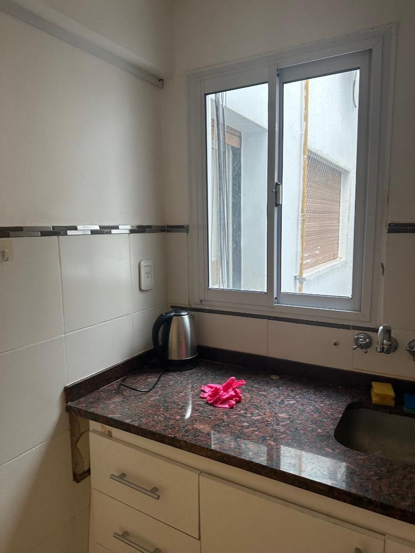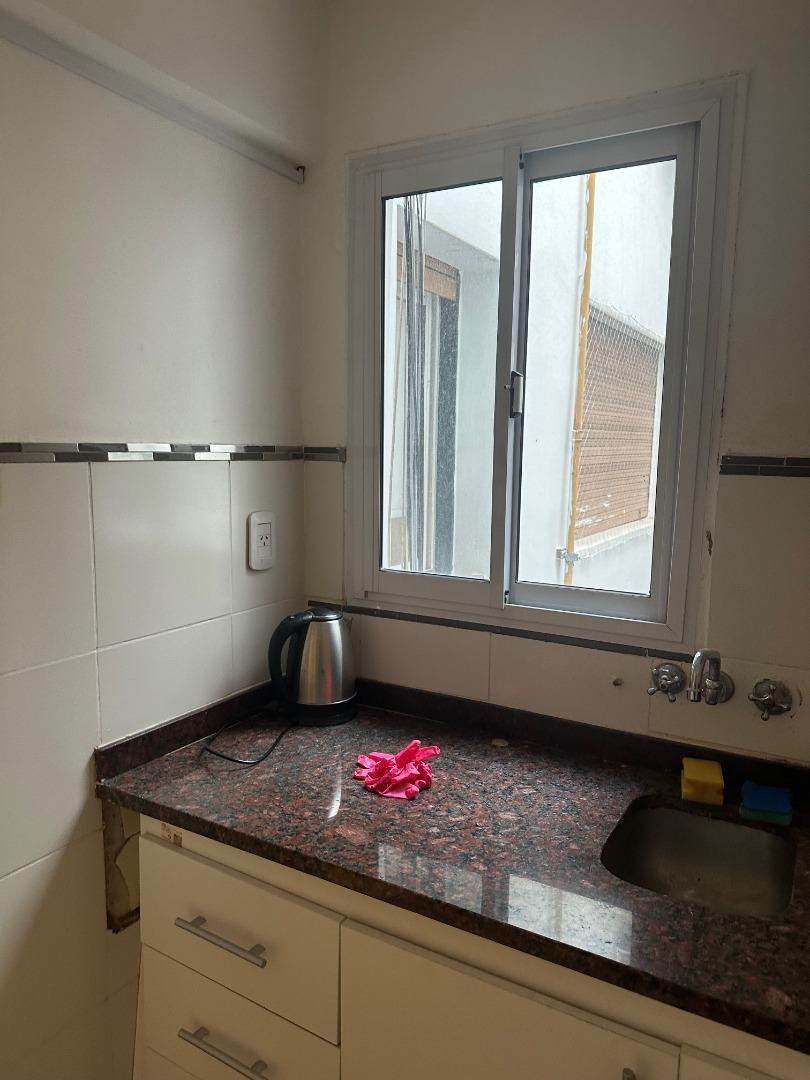 Departamento monoambiente en alquiler en Colegiales, en 5to piso. Cuenta con ventana, termotanque nuevo y luminarias nuevas. La cocina tiene mesada de mármol y alacenas nuevas; el baño tiene vanitory nuevo y mampara. Incluye un mueble biblioteca fijo que puede dividir el ambiente. No se alquila para vivienda; se alquila con garantía propietaria o seguro de caución. Depósito: 1 mes; impuestos y agua a cargo del inquilino.