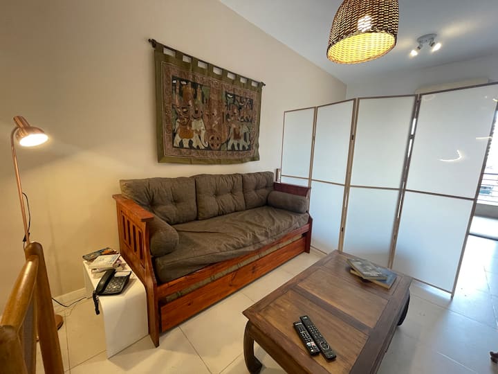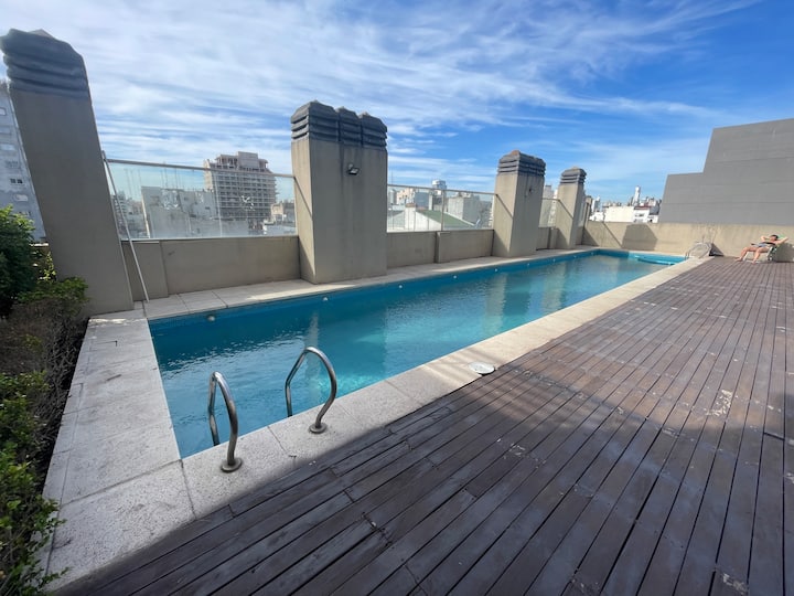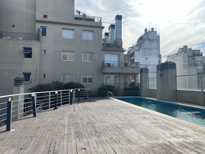 Monoambiente de 1 ambiente en Constitución con balcón. El edificio cuenta con pileta, gimnasio y parrilla.