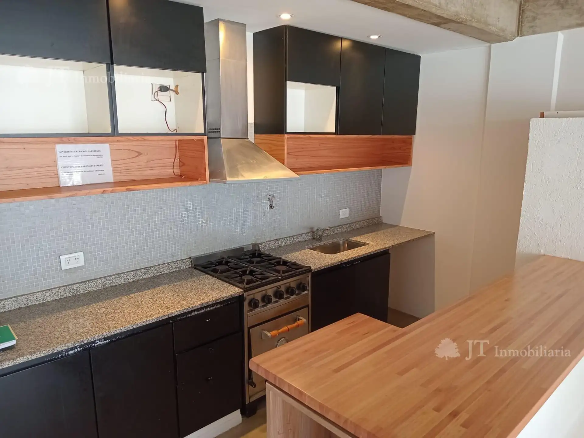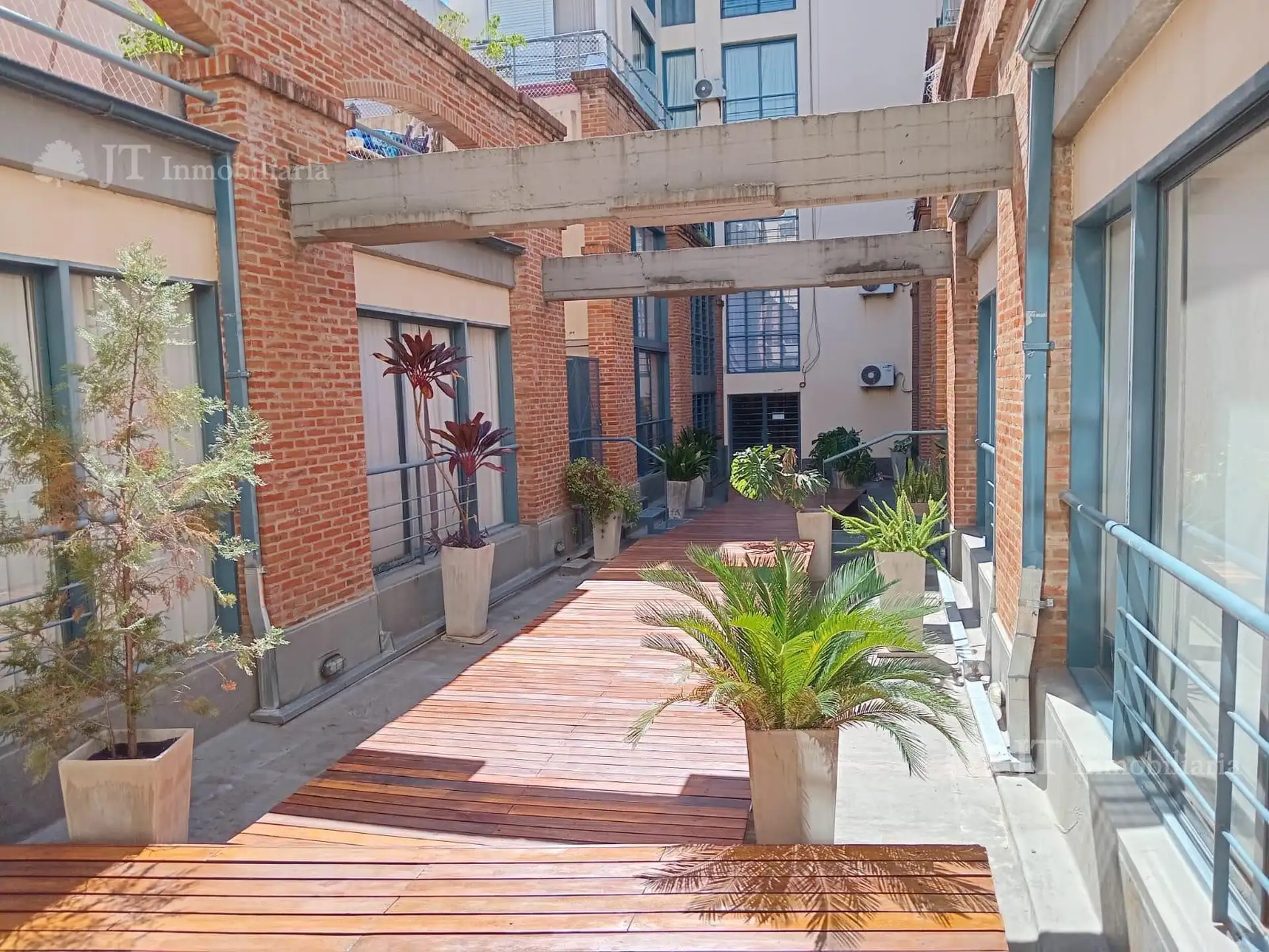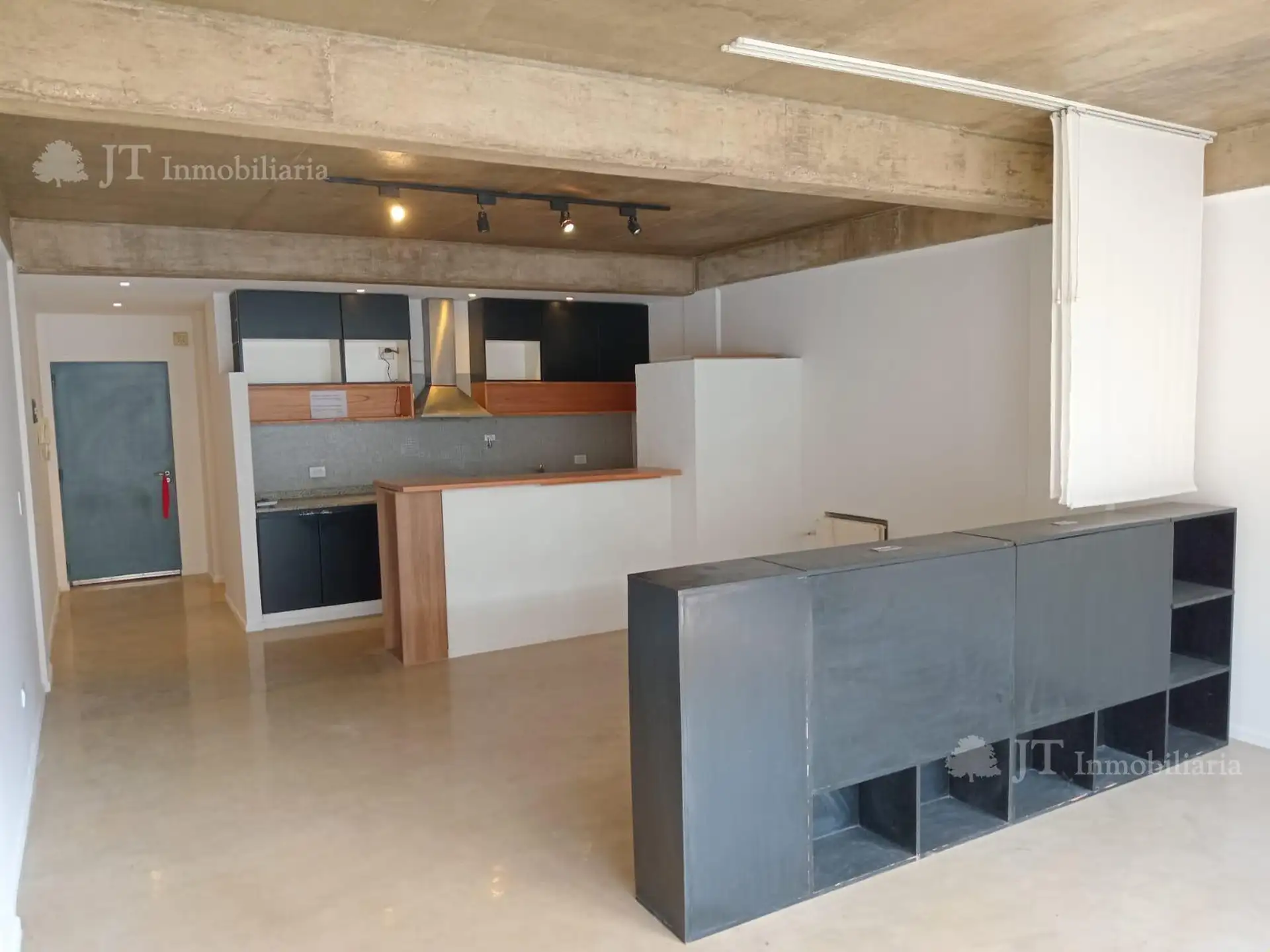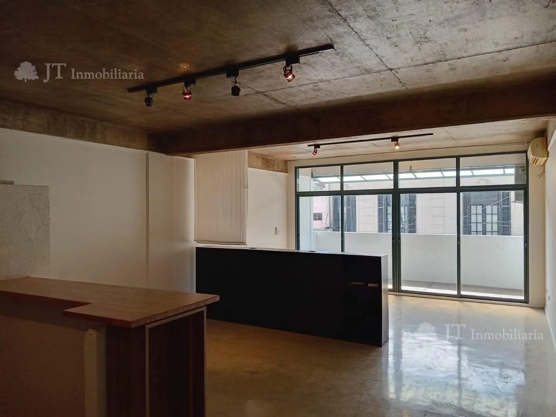 Departamento de 2 ambientes tipo loft al frente, con balcón. Cuenta con hall de acceso, cocina americana con barra, horno y campana de acero inoxidable, recepción o living y área de dormitorio con salida directa al balcón. El baño es compartimentado con bacha en el antebaño. Pisos de microcemento alisado. El edificio tiene patio jardín y ascensor Maldatec. Está cerca de UADE y UAI, a pasos de Av. 9 de Julio y de paradas de colectivos; a pocas cuadras de los subtes C y E.