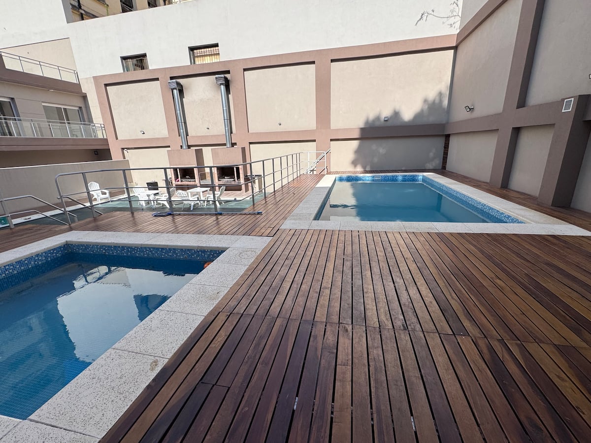 Departamento en San Telmo, con acceso autónomo mediante código QR y cerradura digital. El edificio cuenta con pileta, solárium, gimnasio, parrilla y SUM. El departamento tiene ropa de cama, secador de pelo, plancha y artículos de tocador.