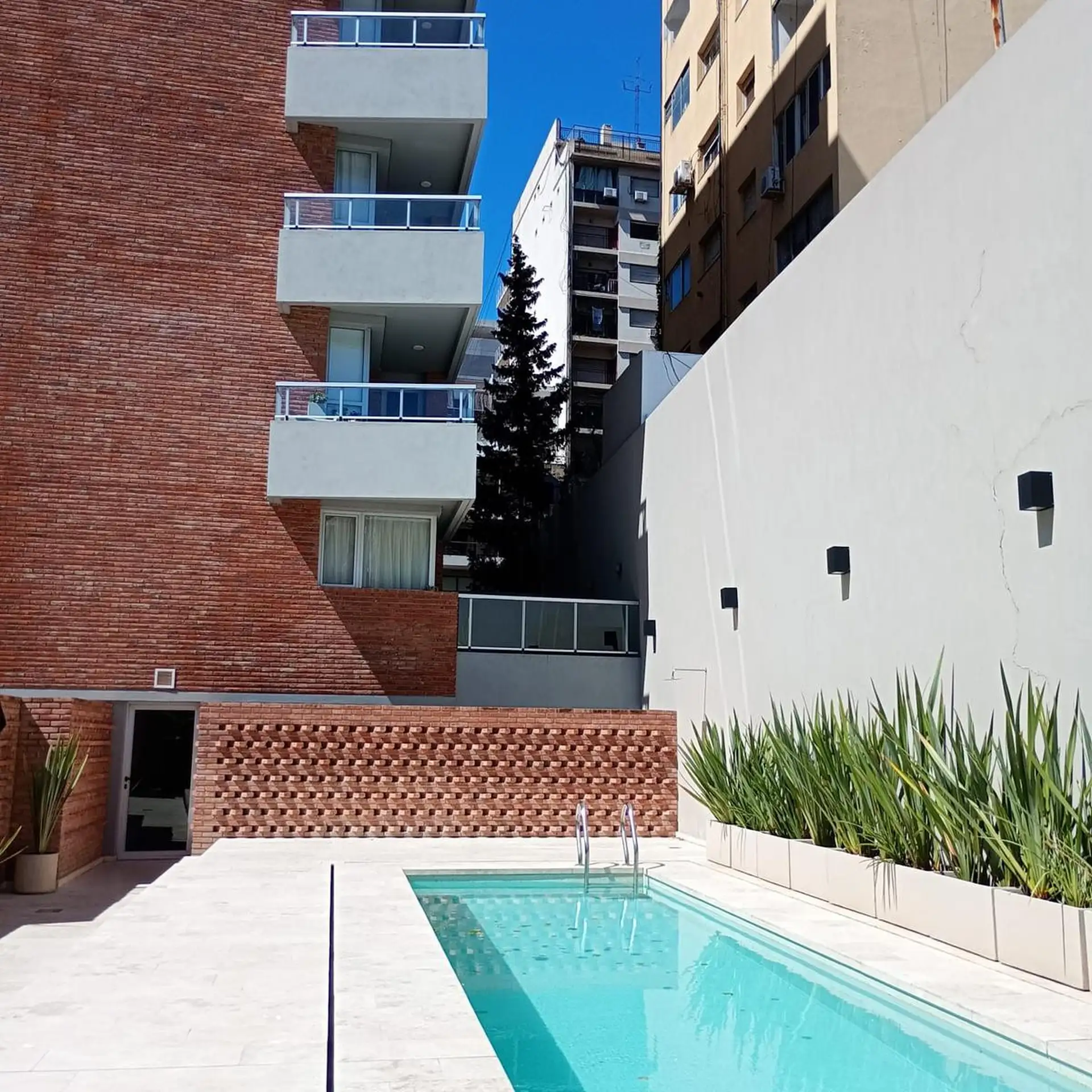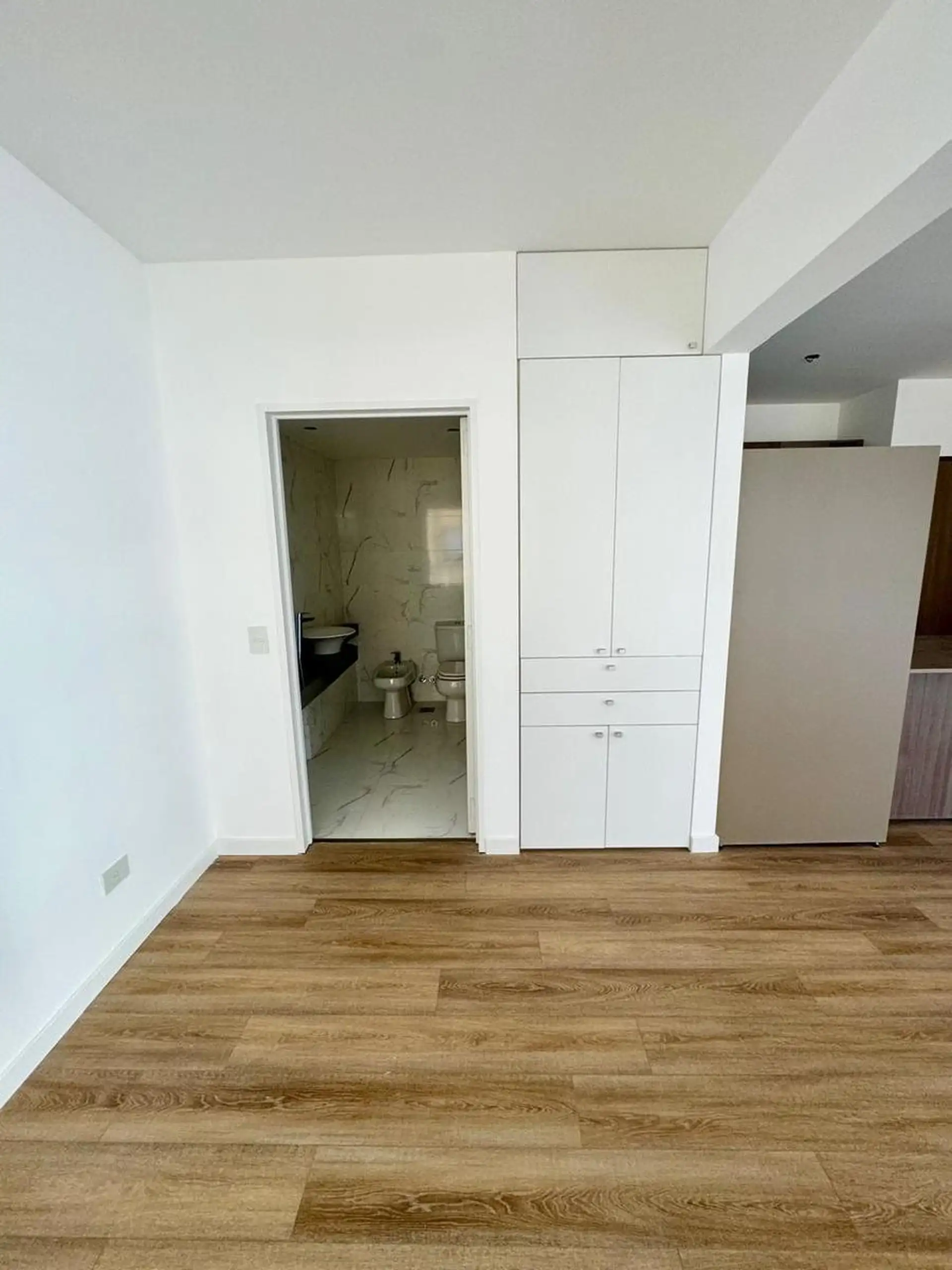 Departamento monoambiente a estrenar en Monserrat. Cuenta con cocina completa con alacena y bajo mesada, espacio para heladera y lavarropas, y placard empotrado. El ambiente tiene grandes ventanales y un baño con ducha. El edificio dispone de SUM, laundry con lavadora y secadora, pileta con jardín y quincho con parrilla.