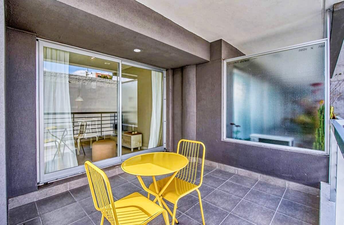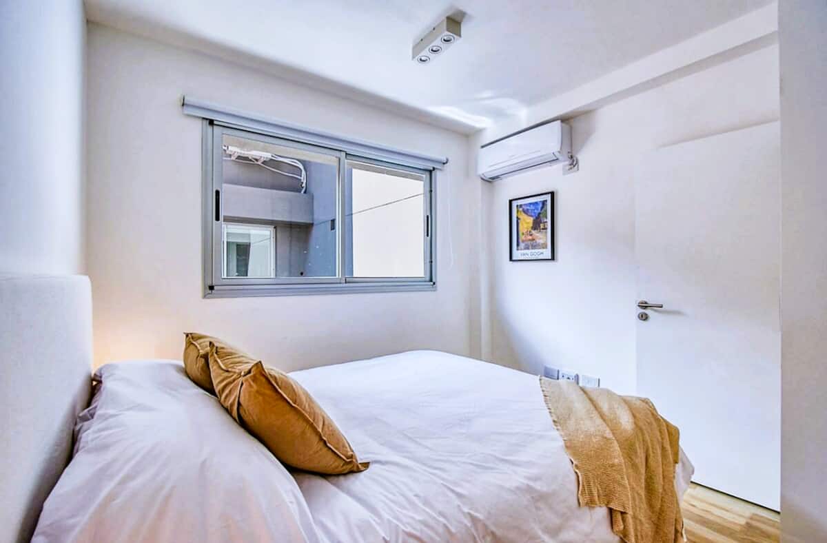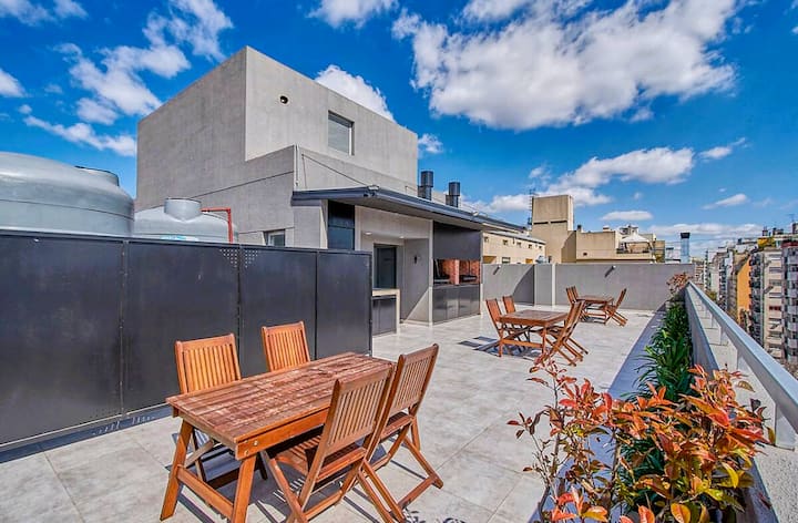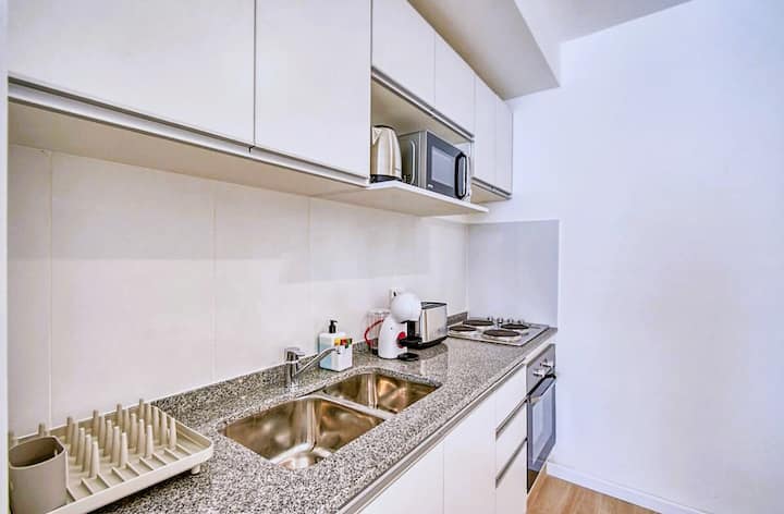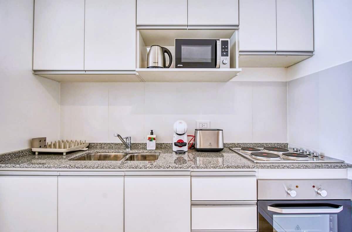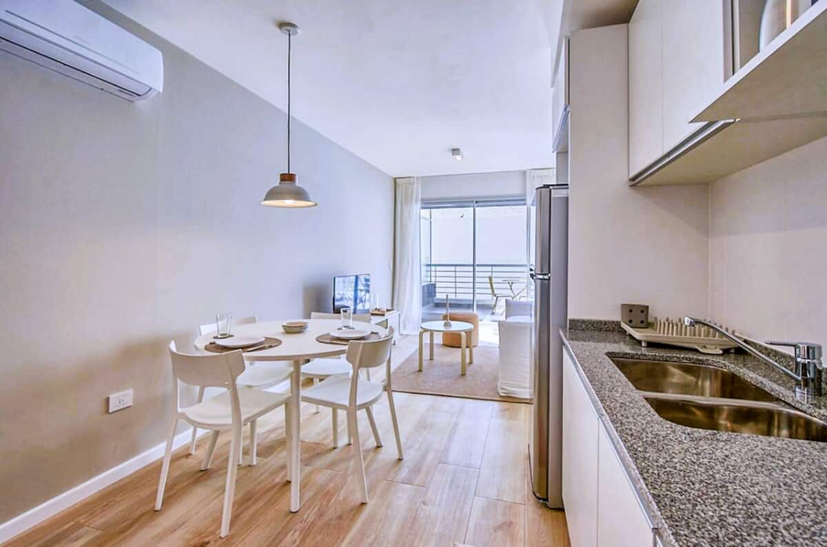 Departamento de 2 ambientes en Presidente Luis Sáenz Peña, en Monserrat, con balcón amplio. Cuenta con dormitorio privado, living con sofá, cocina totalmente equipada y baño completo. Incluye aire acondicionado, WiFi y TV. El edificio dispone de pileta, parrillas, gimnasio compartido y laundry, con ascensor y calefacción. El ingreso y egreso se realiza en horarios establecidos por la reserva; el estacionamiento en la vía pública es gratuito y el edificio no cuenta con cochera propia.