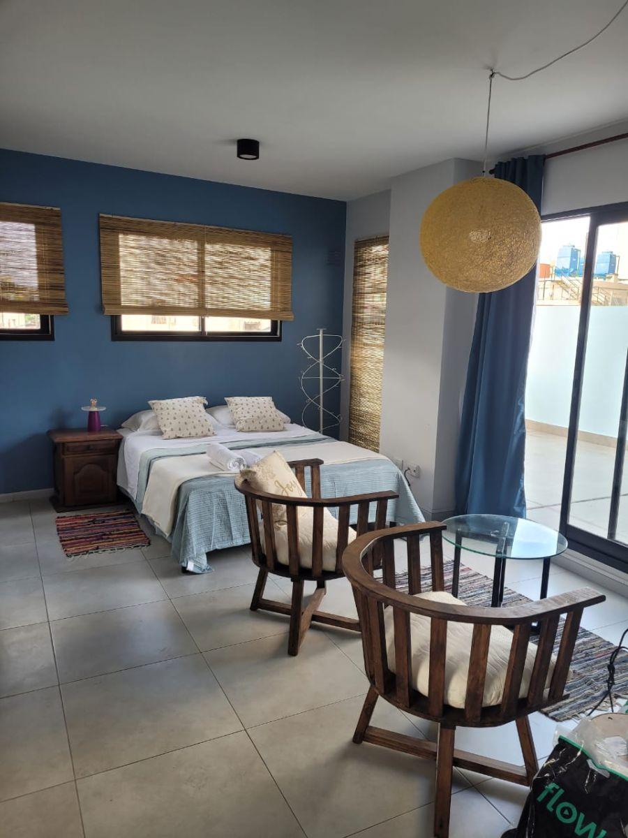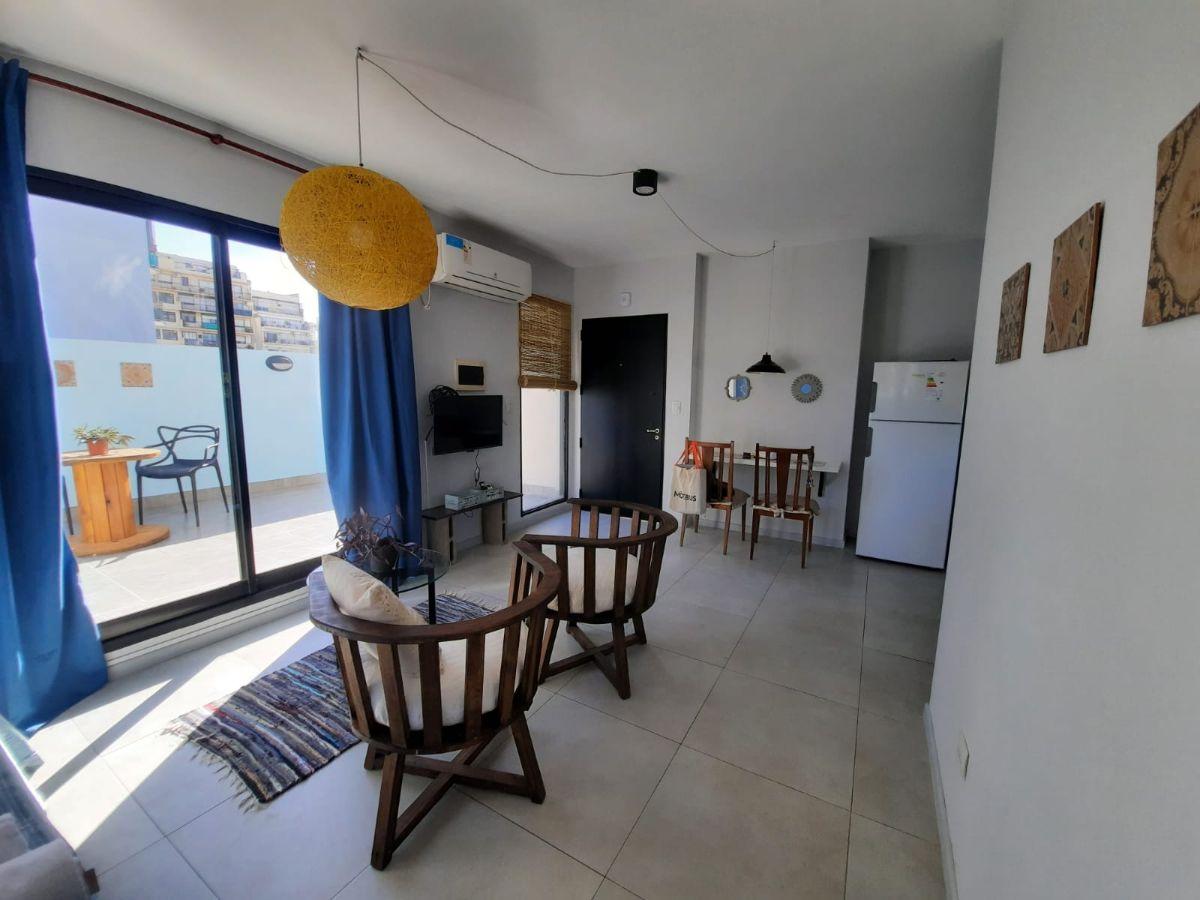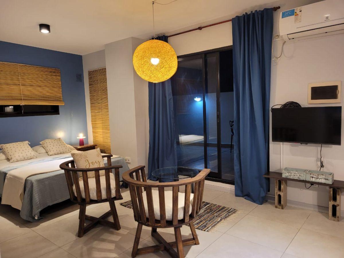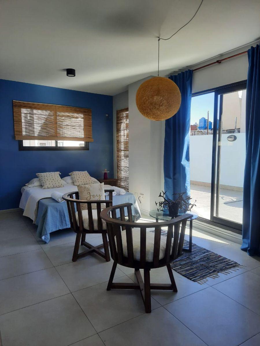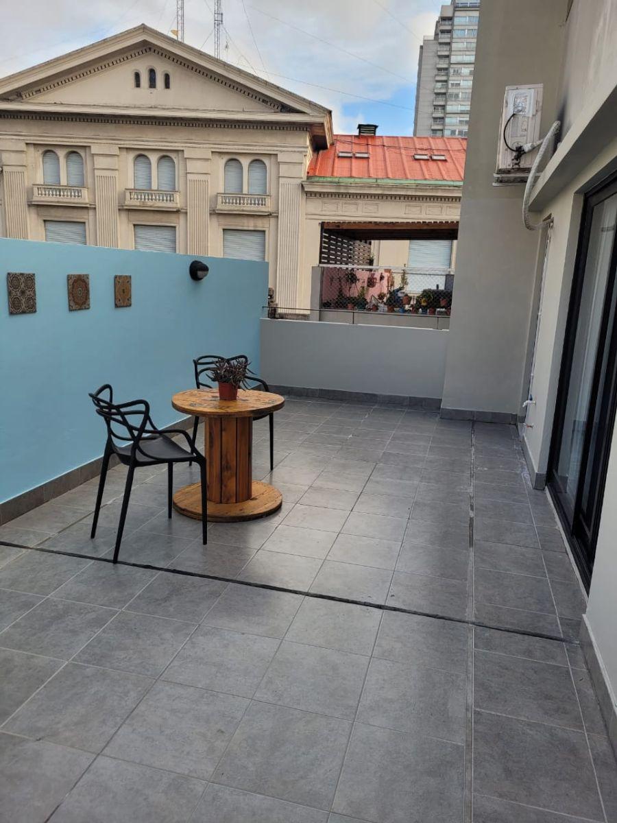 Monoambiente equipado de 5º piso, con patio privado. Incluye sommier Queen Size, TV por cable, WiFi y aire acondicionado frío/calor. Baño completo. El precio incluye expensas e internet y cable; disponible a partir del 17 de marzo.