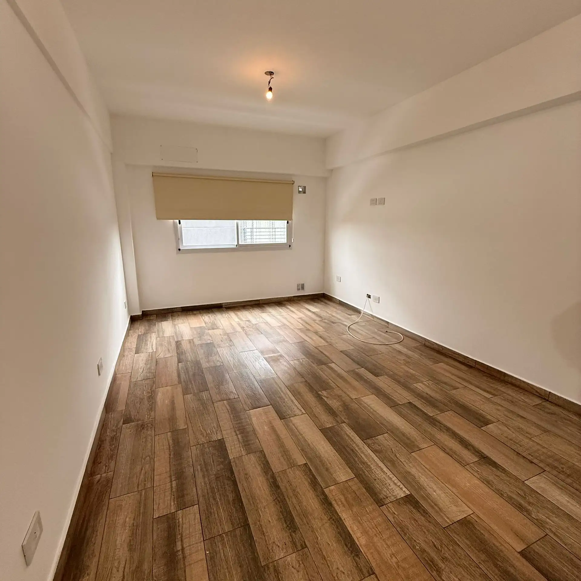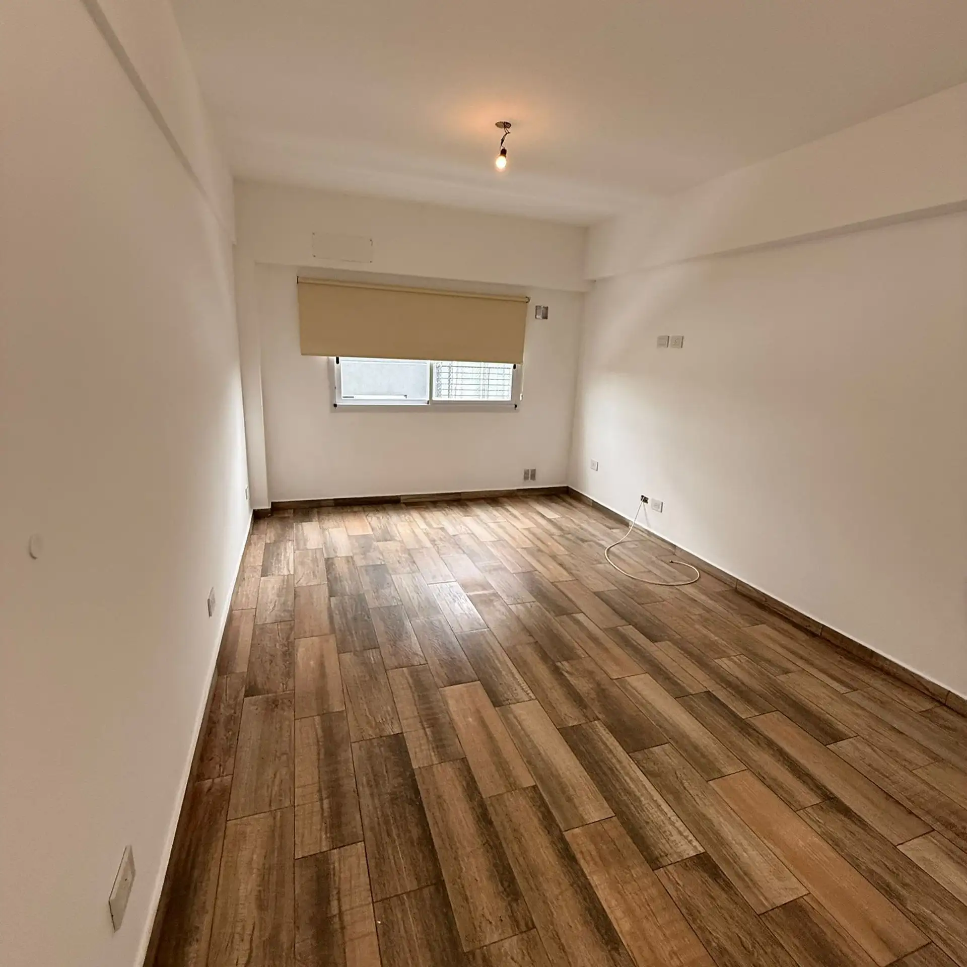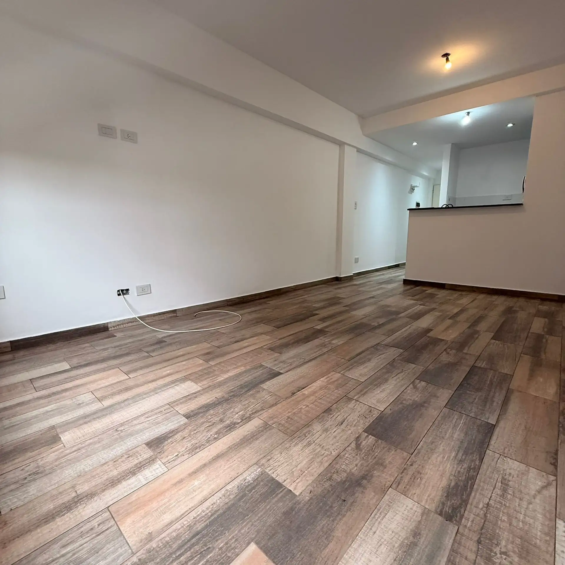 Departamento monoambiente en 4° piso. Incluye cocina con bajo mesada y artefacto de cocina, termotanque eléctrico e instalación para lavarropas. Cuenta con baño completo con bañera y ambiente con piso de porcelanato símil madera, cortina roller y preinstalación para aire acondicionado.