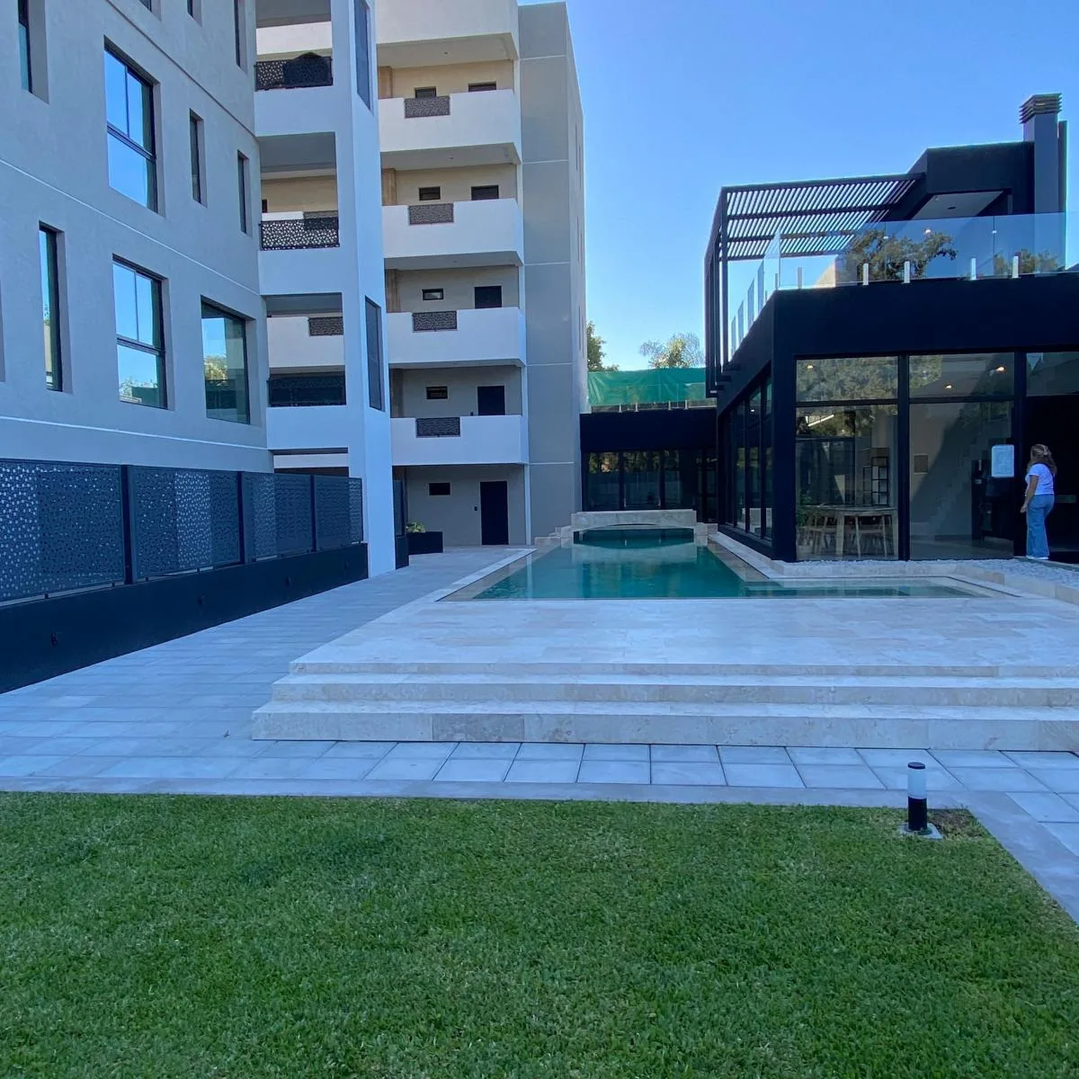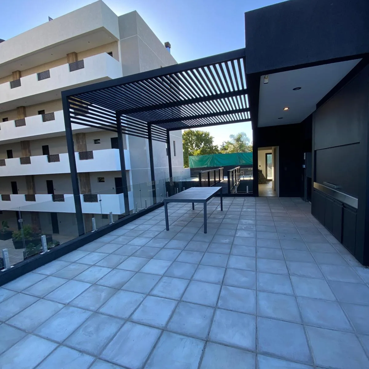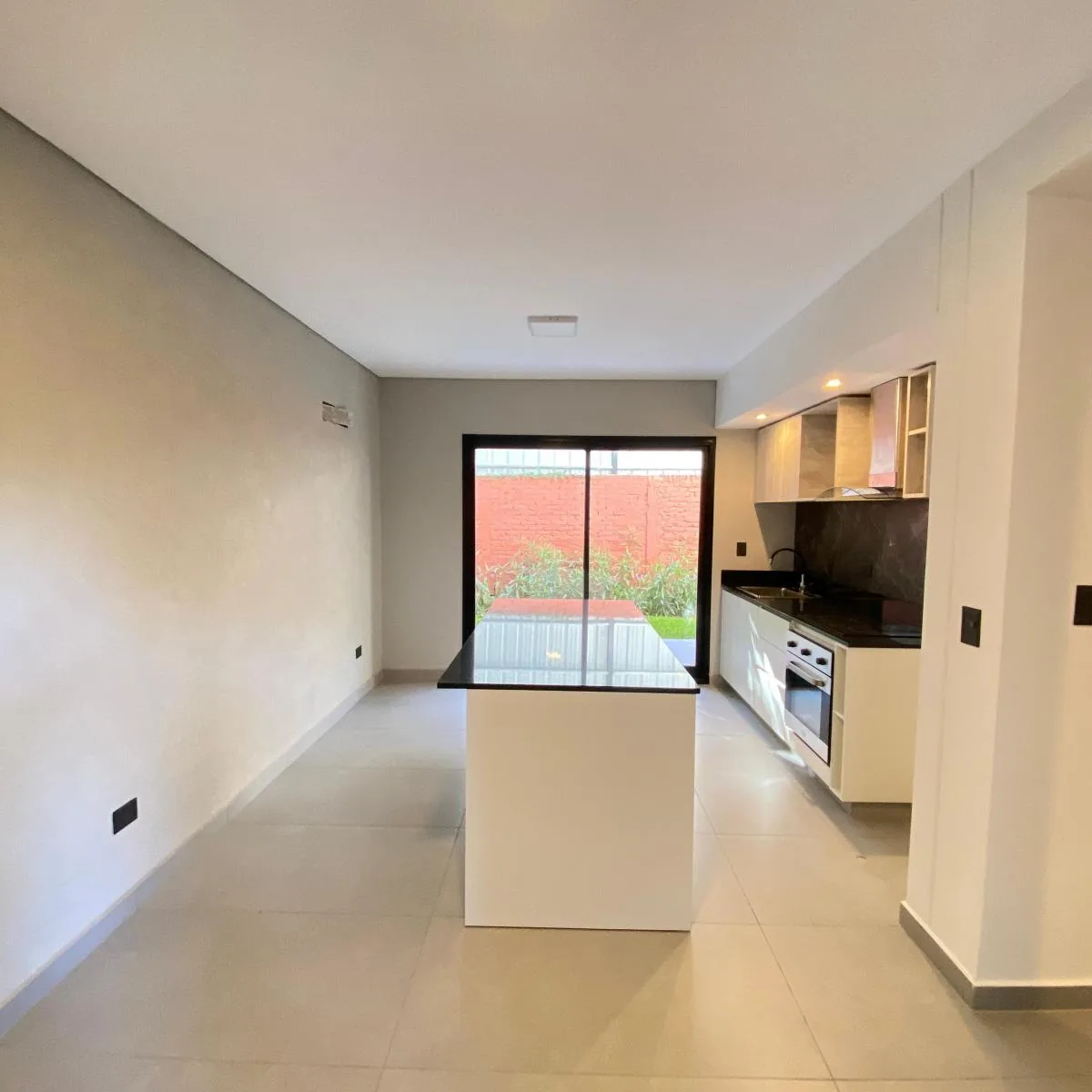 Departamento de 2 ambientes a estrenar con 44 m² cubiertos, 8 m² semicubiertos y jardín propio de 20 m². Living comedor con cocina integrada, amueblada con bajo mesada y alacena, mesada de mármol y espacio para heladera y lavarropas, con barra desayunadora. Dormitorio con placard y salida al jardín, baño completo con bañera, patio con parrilla y cochera propia. El complejo Cactus Residences cuenta con piscina, solárium, SUM, gimnasio, seguridad, sauna y jacuzzi, fogón y quincho con parrilla.