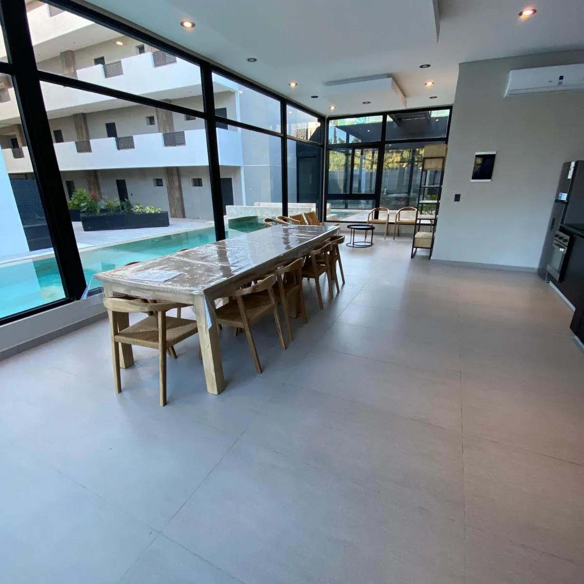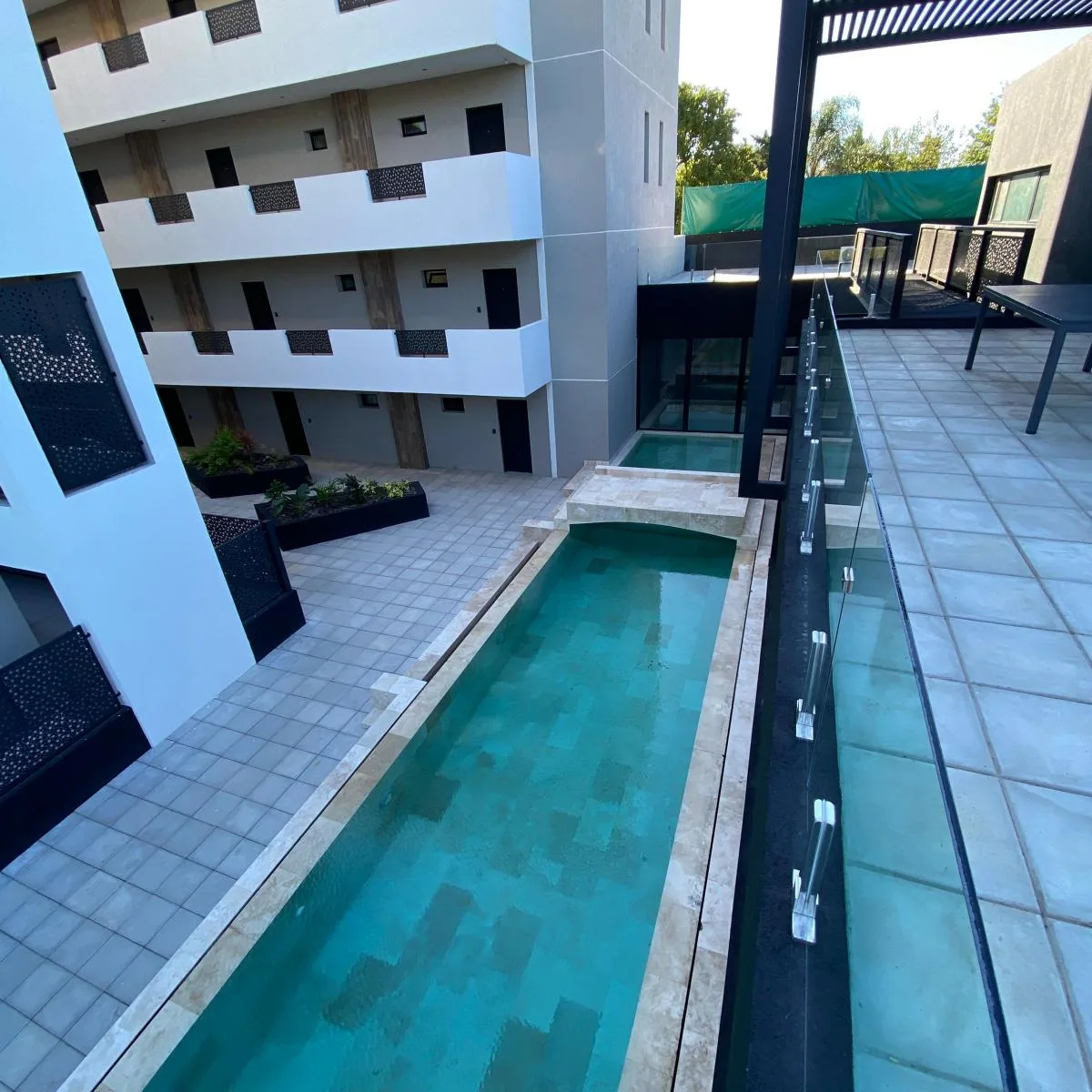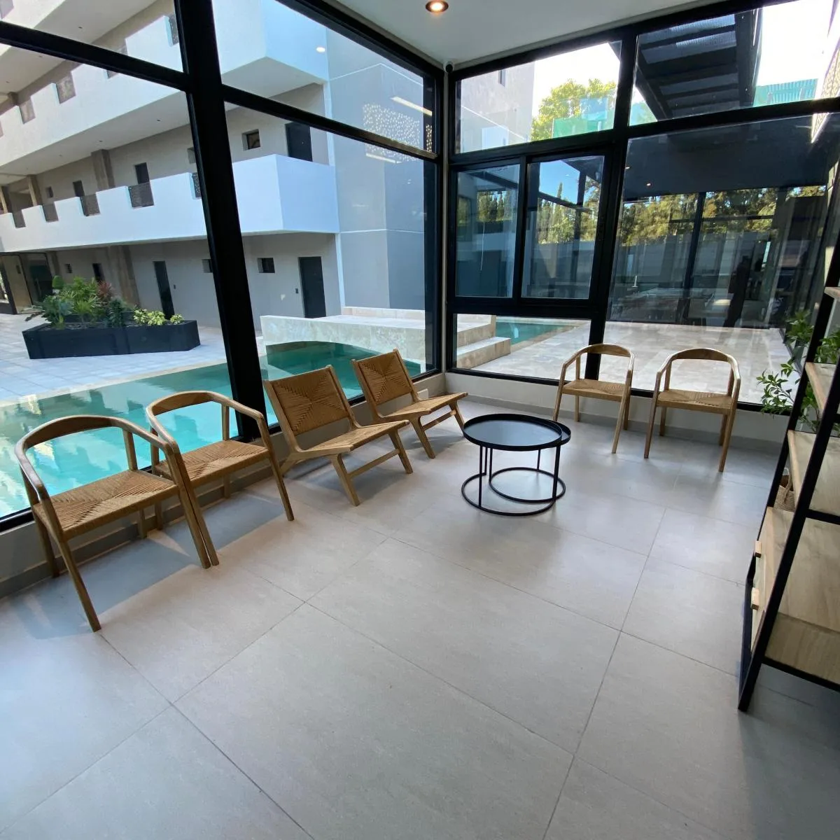 Departamento de 2 ambientes a estrenar con 44 m² cubiertos, 8 m² semicubiertos y jardín propio de 20 m². Living comedor con cocina integrada, amueblada con bajo mesada y alacena, mesada de mármol y espacio para heladera y lavarropas, con barra desayunadora. Dormitorio con placard y salida al jardín, baño completo con bañera, patio con parrilla y cochera propia. El complejo Cactus Residences cuenta con piscina, solárium, SUM, gimnasio, seguridad, sauna y jacuzzi, fogón y quincho con parrilla.